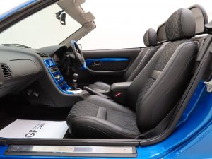 Just 1,430 limited edition MGF Trophy 160 cars were produced for the worldwide market and this example is one of the 804 UK examples. Finished in Trophy Blue, (Code JFV), one of four colours available, the other options being Trophy Yellow, Anthracite and Solar Red. The recently ceramic coated paint finish is virtually perfect having covered just 11,888 miles with strict garage storage by the two owners from new. The original black woven acrylic fabric hood and rear screen is in exceptional condition with just a couple of very faint scuff marks. All panels and shut lines are straight and even the boot lid is flush rather than so often raised due to the incorrect fitting of the tonneau cover. The detailed underside will please those wanting to display on the show circuit. All trim is unmarked and the Trophy 160 rear badge is proudly displayed. This example will satisfy the most fastidious fanatic and is without doubt one of the best surviving examples anywhere in the world.