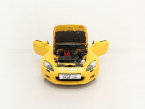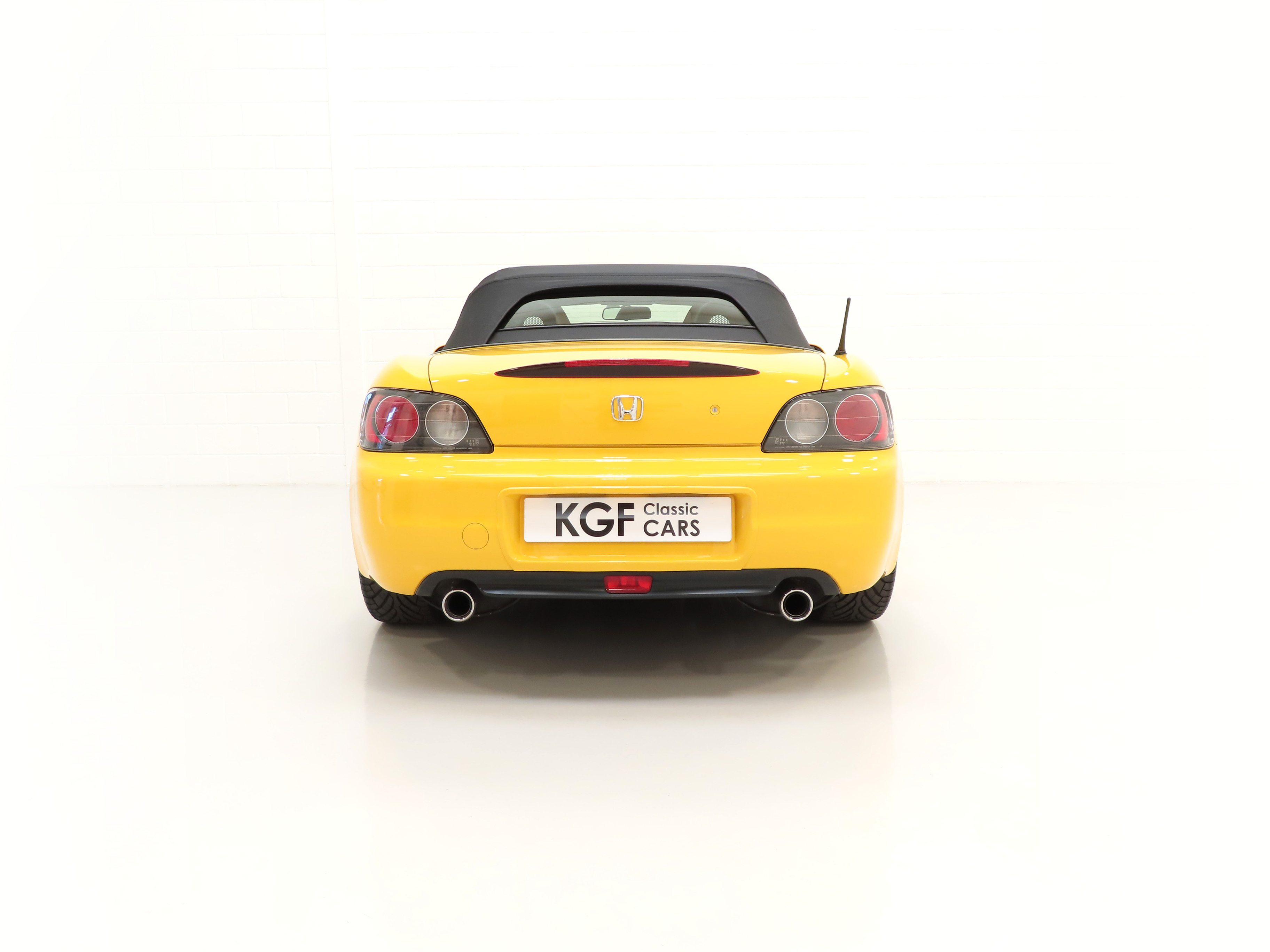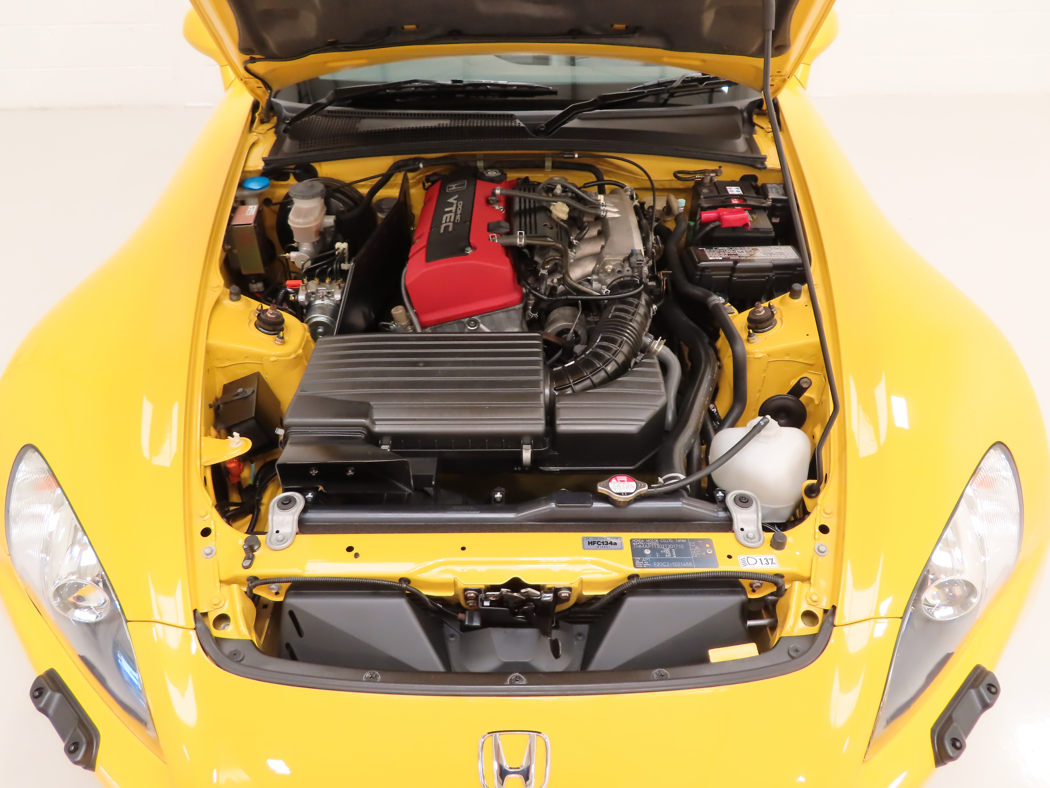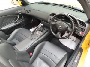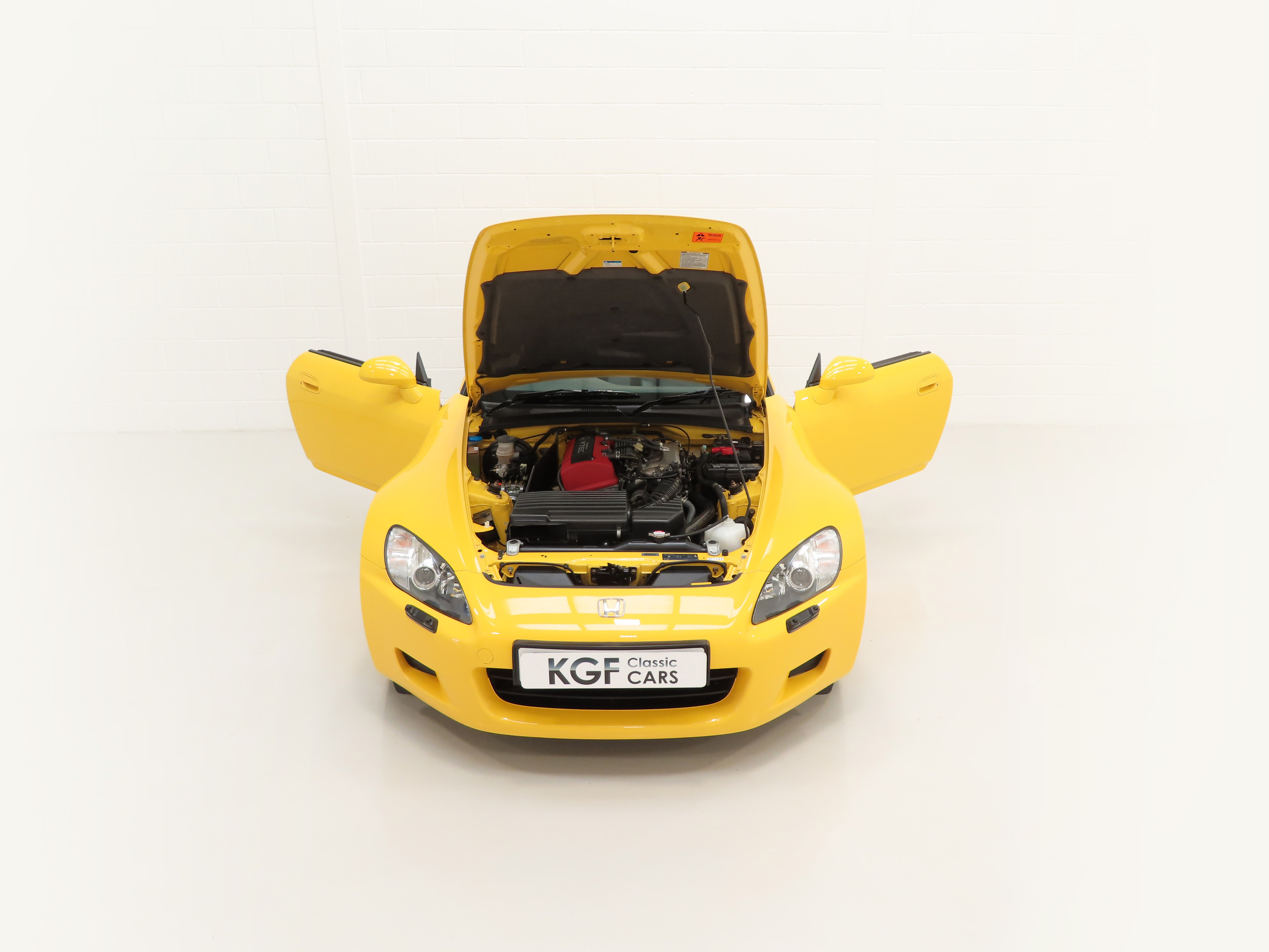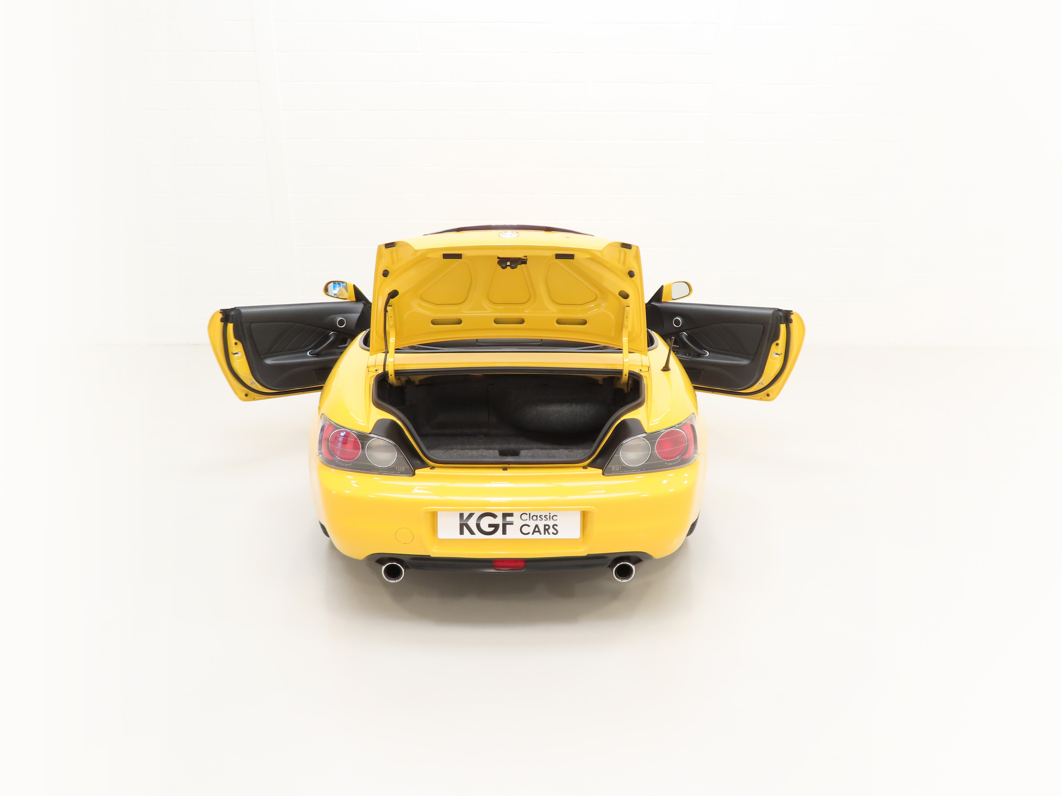 Finished in probably the most desirable colour, Spa Yellow Pearl, (Code Y52P), the vibrant paintwork boasts an amazing finish and looks simply incredible. Thanks to mainly fair-weather use and polished care, a brilliant shine will please show exhibitionists and all lightweight panels are beautifully straight with only a few miniscule marks and touched in scratches, one to the bonnet. The GT hard top protects the original Black hood in amazing condition with one tiny mark and has a heated glass screen. The HID headlights are clear with no discoloration. Honda main dealer number plates and UK S2000 Owners Club screen sticker remain fitted. All wheel-arch apertures are clean and the underside has a light coating of waxyol to preserve factory originality. This example is worthy of the Honda racing heritage and one of the finest available.