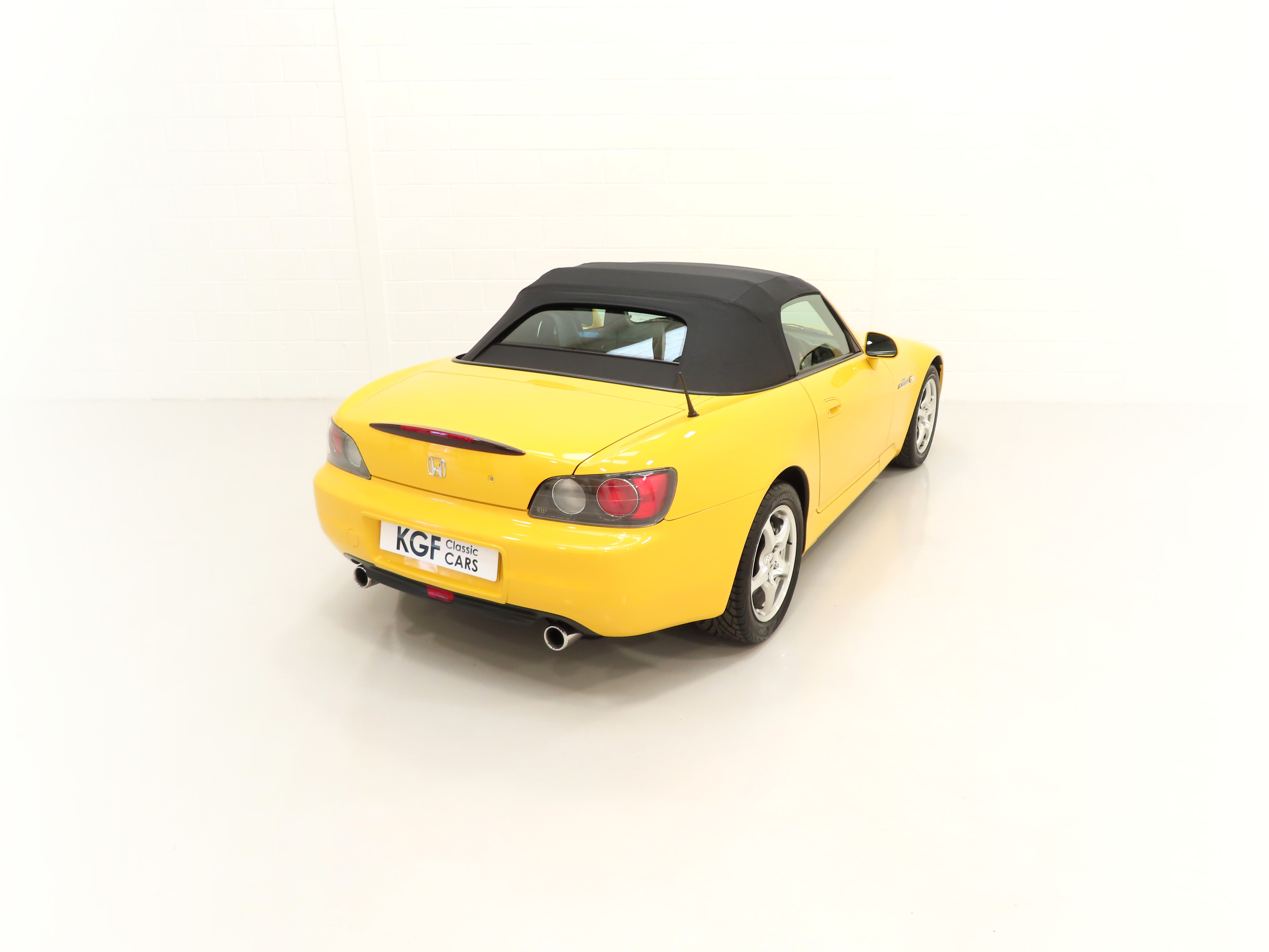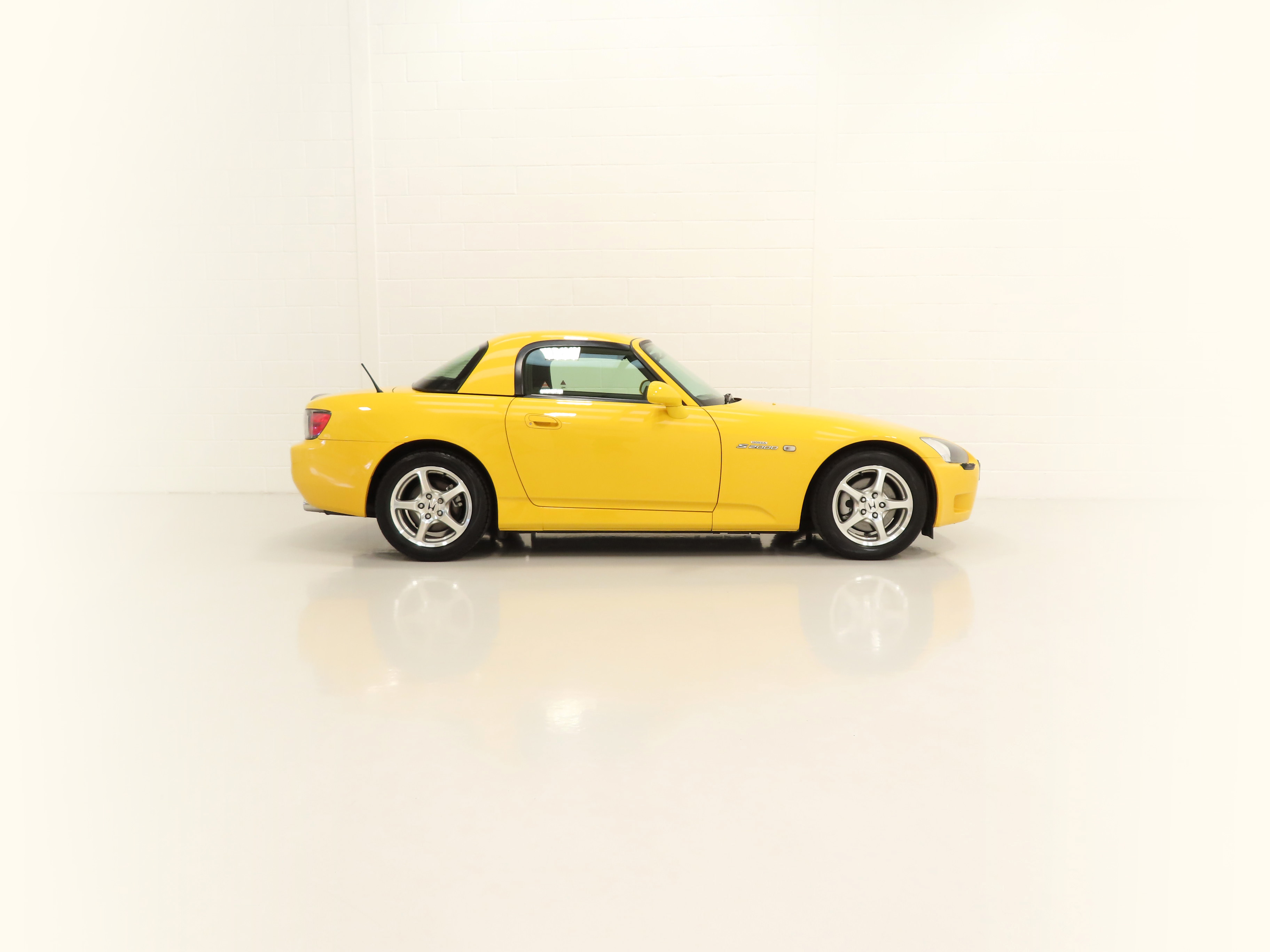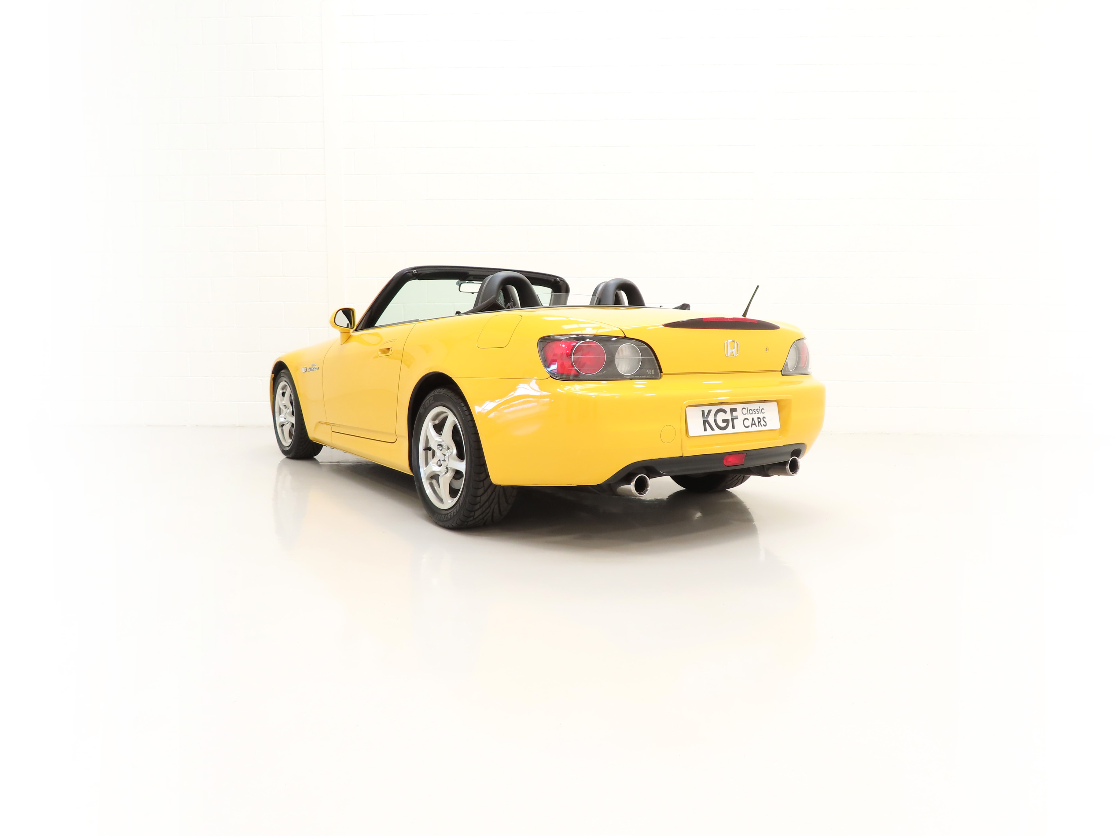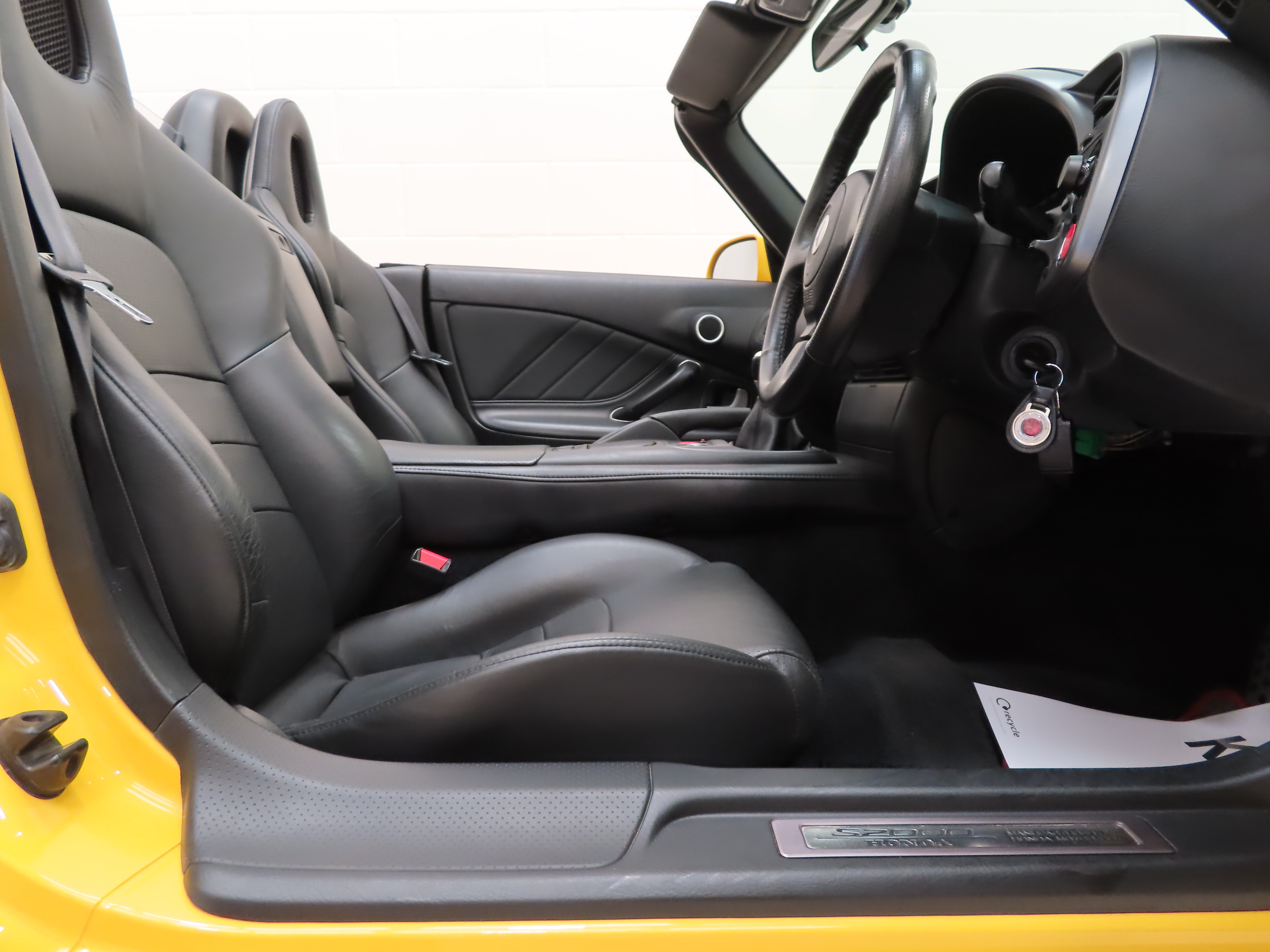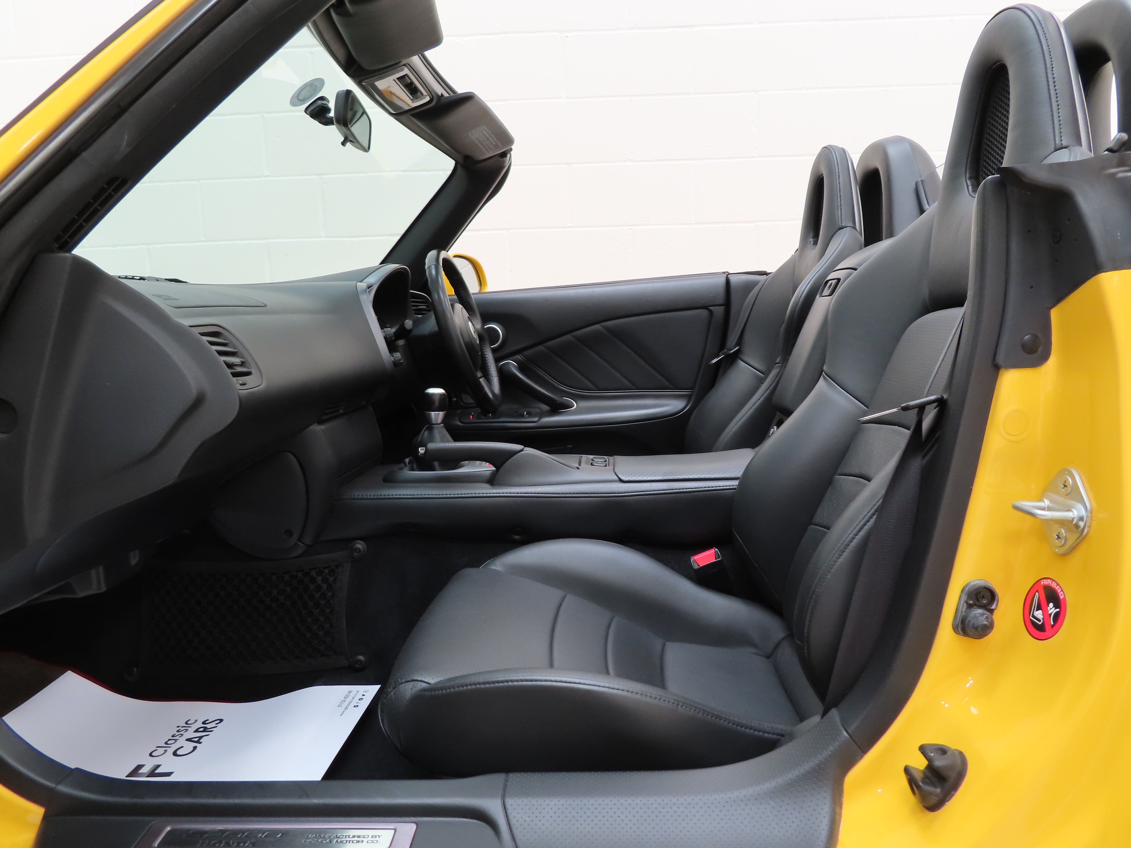 Finished in probably the most desirable colour, Spa Yellow Pearl, (Code Y52P), the vibrant paintwork boasts an amazing finish and looks simply incredible. Thanks to mainly fair-weather use and polished care, a brilliant shine will please show exhibitionists and all lightweight panels are beautifully straight with only a few miniscule marks and touched in scratches, one to the bonnet. The GT hard top protects the original Black hood in amazing condition with one tiny mark and has a heated glass screen. The HID headlights are clear with no discoloration. Honda main dealer number plates and UK S2000 Owners Club screen sticker remain fitted. All wheel-arch apertures are clean and the underside has a light coating of waxyol to preserve factory originality. This example is worthy of the Honda racing heritage and one of the finest available.