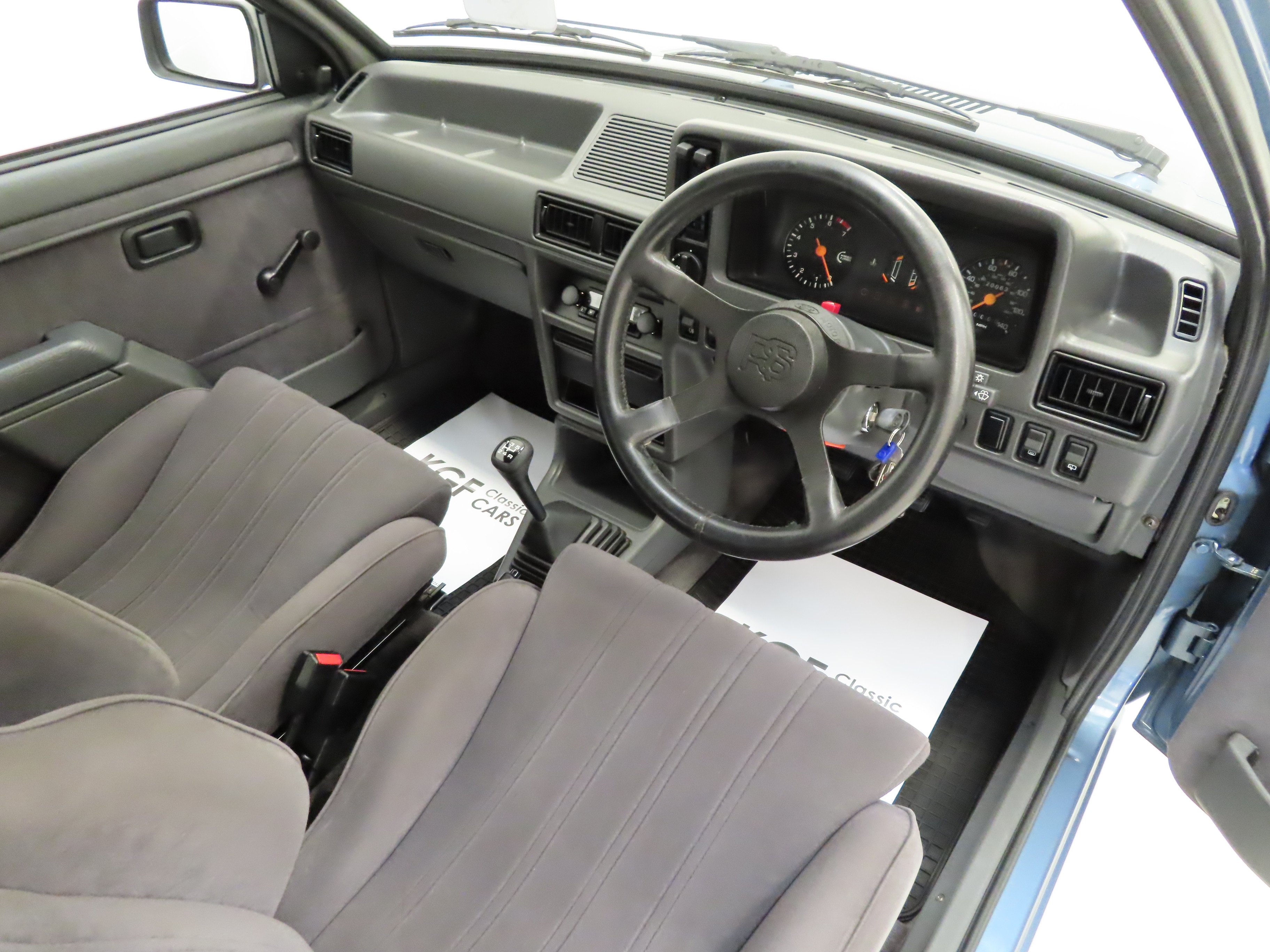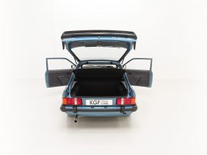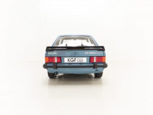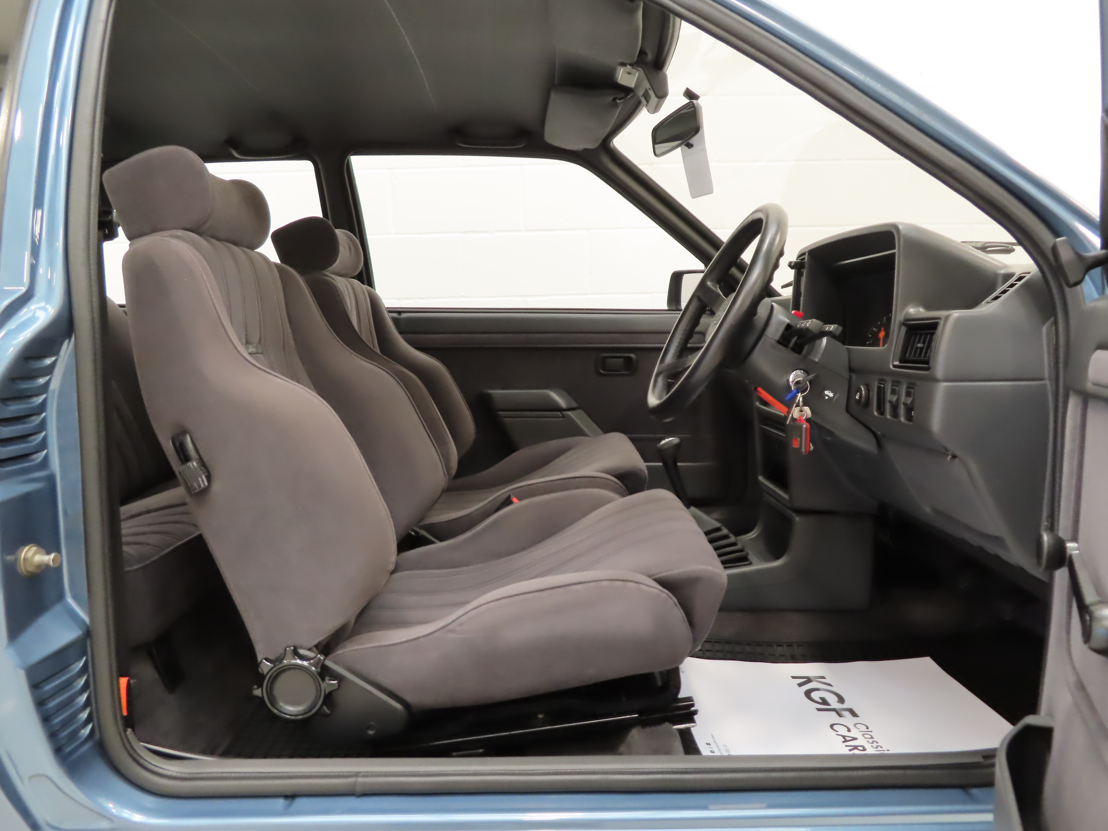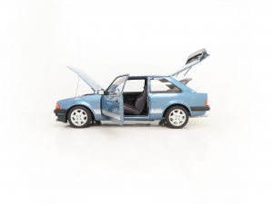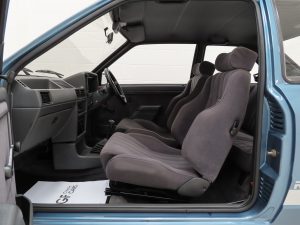 This RS1600i is finished in rare Caspian Blue, (Code 3 3), and has a faultless uniform shine across every factory fitted and date stamped panel. The distinctive decals are perfect and the original rear spoiler is straight with no distortion issues and the front spoiler displays clearly the Motorsport logo and part number. The correct stance is instantly recognisable as this example still sits on the special Koni shock absorbers only fitted to the RS1600i lowering the car by 23mm. All components are exactly as it left the Ford factory and the underside is fully detailed. Such is the quality of this example it achieved Std. RS1600i 1st Place at the RS Owners Club National Day with its first outing. A very rare and desirable example of the first front wheel drive Ford ever to wear the RS badge!