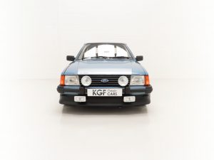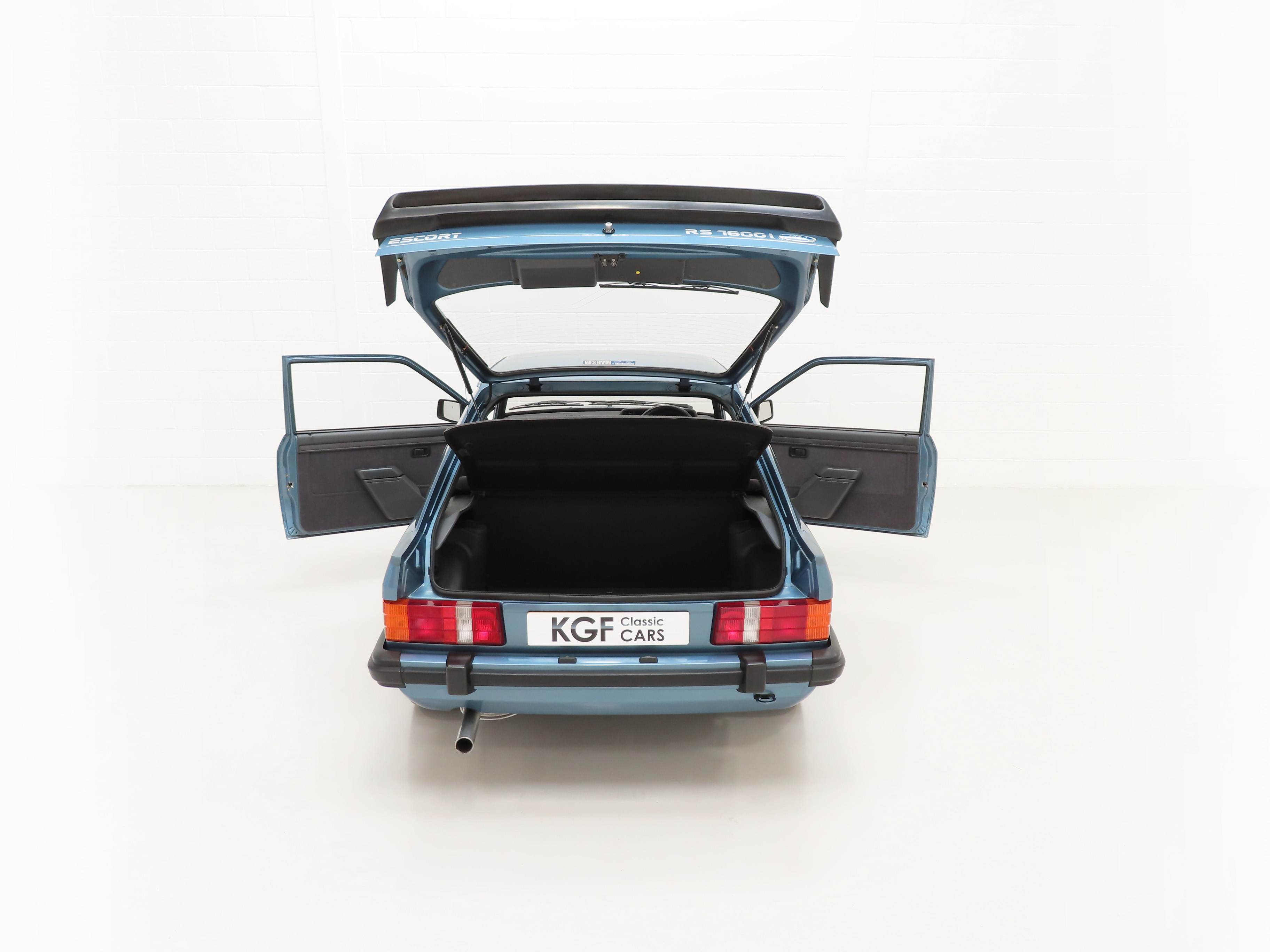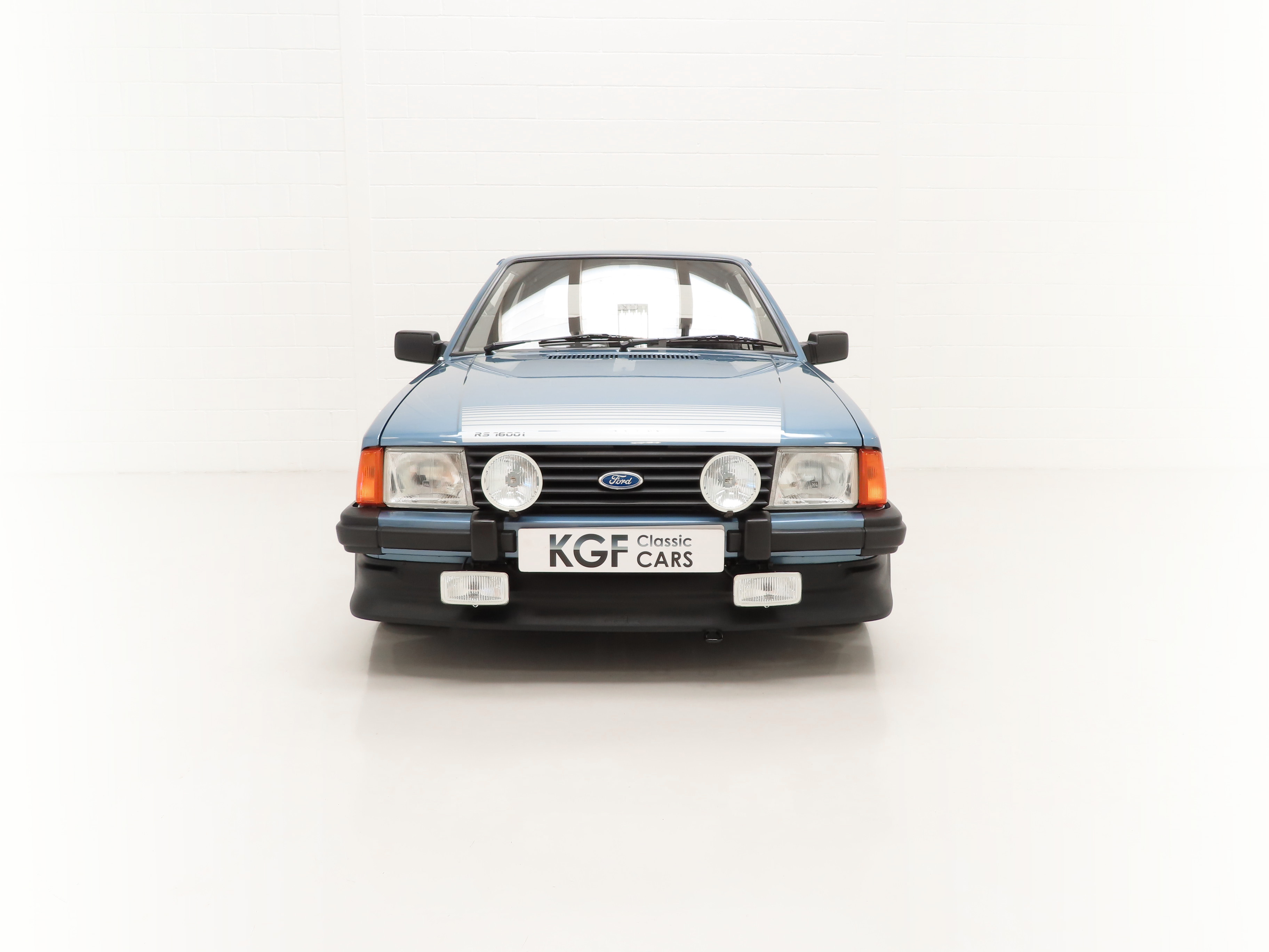 Introduced in September 1981, this stunning example was built in the final month of production in July 1983 and is one of 2,600 UK examples and just one of 290 in Caspian Blue. (Source: RS Owners Club). Registered new on the 31st August 1983 by Ford Rallye Sport Dealer, Nesham of Teeside, as a dealer car before transfer of ownership less than one month after on the 19th September 1983 to long-term custodian, Norman Settle. Mr Settle remained the first private owner for 31 years until June 2014. The car was his absolute pride and joy, garaged, cherished and purely used for Sunday best dry outings. The only other registered keeper is Mr Bryan Fallow. The car made the front cover of the November/December 2016 Rallye News, the exclusive magazine for RS Owners and took Std. RS1600i 1st Place at the RS Owners Club National Day in 2019, its first and only competitive entry. A full complement of handbooks are contained within the blue Nesham of Teeside A5 folder. This example will please the most discerning collector wanting one of the very best examples in existence.