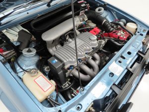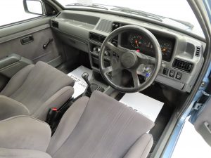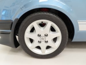Sensational cast alloy wheels are unmarked and are still shod with the manufacturer supplied Dunlop SP Sport Super D4 195/50 VR15 tyres. The matching spare has never been used. Massive tread and not cracked but replacement is advised due to age. Diagonally split hydraulic circuits with tandem master cylinder, vacuum servo assistance and 9.4” ventilated discs up front bring the car to an adequate halt but fall short in comparison to modern standards.