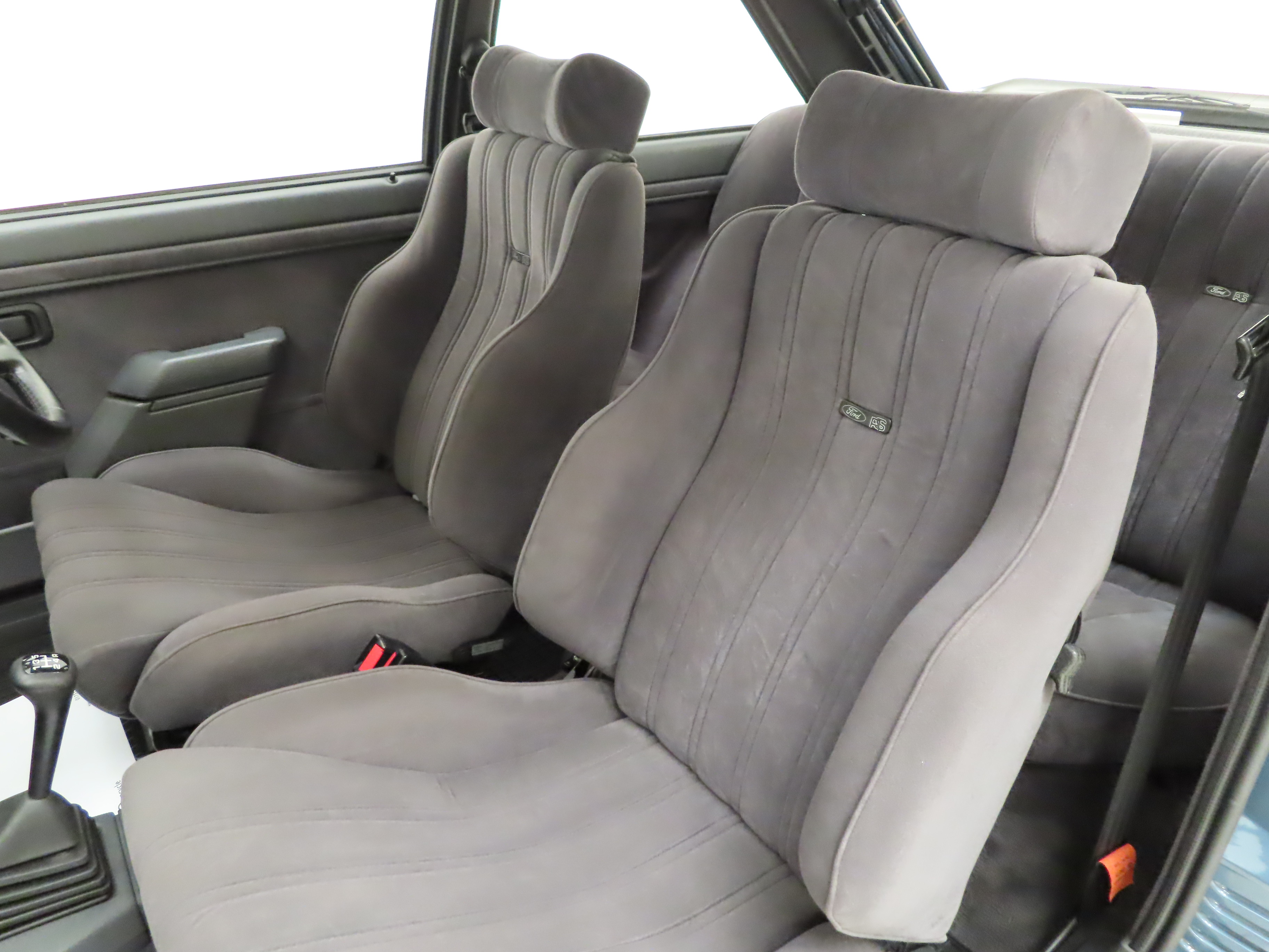 The interior of this RS1600i is in truly immaculate. Finished in Shark Grey Crushed Velour (Code TC), the special RS seats and deep side bolsters have retained perfect structural integrity and the matching door cards and perforated headlining are in pristine condition. The deep grey carpets are spotless and free from undue wear and are protected by four genuine Ford waffle rubber floor mats. The dashboard has no cracks and all interior equipment is functional including the fuel thrust cut-off warning lights. The RS 4-spoke leather trimmed steering wheel and special gearshift gaiter and knob defy their age. Even the gear change hanger is present! The boot area is spotlessly clean including the immaculate rear parcel shelf and the colour code sticker is attached to the back panel. Incredibly the TC Key Number is still inscribed on the boot floor! A Ford that gives you more.