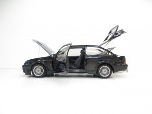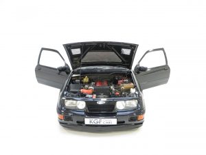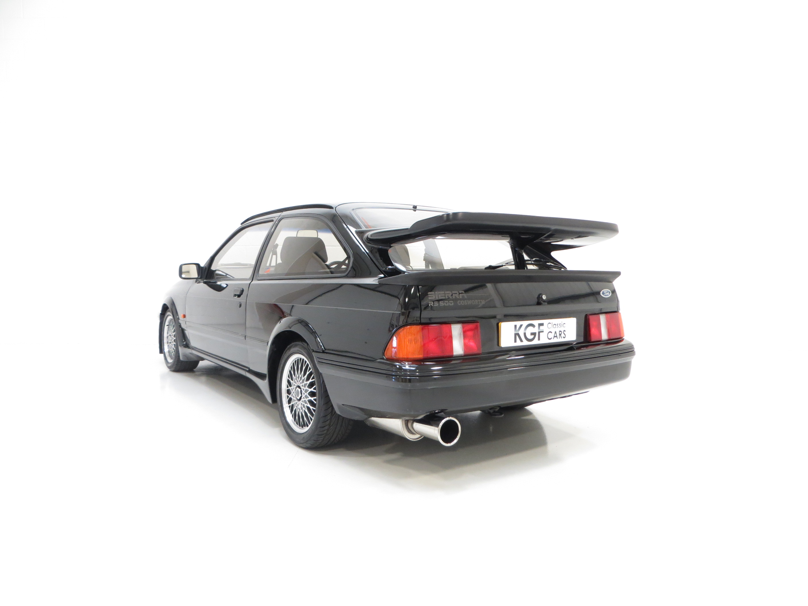 The Sierra RS Cosworth project was defined in the spring of 1983 by the then recently appointed head of Ford Motorsport in Europe. It was established that at the time, Ford was no longer competitive in this area. After receiving full support from Ford Public Relations, the project was underway with the Sierra chosen as the basis for the project. Ford Motorsport in Europe approached the automotive company Cosworth who answered positively, but put up two conditions: The street version of the car had to produce no less than 204 HP, and Ford had to accept no less than 15,000 engines. Few cars have ever been greeted with such enthusiasm as the original Sierra RS Cosworth, perhaps only the exclusive 500 cars that were developed to become an evolution edition, unbeatable on the track. Aston Martin at Tickford were assigned with converting the 500 cars, which in 1987 were to be announced as the RS500. Engineering differences aside, largely the cars were aesthetically similar to the standard Cosworth. The main differences being the additional boot mounted spoiler, discrete badges and the revised front bumper to aid improved cooling. This included the removal of the front fog lamps as standard, but with the dealerships offering reinstatement as an optional extra.