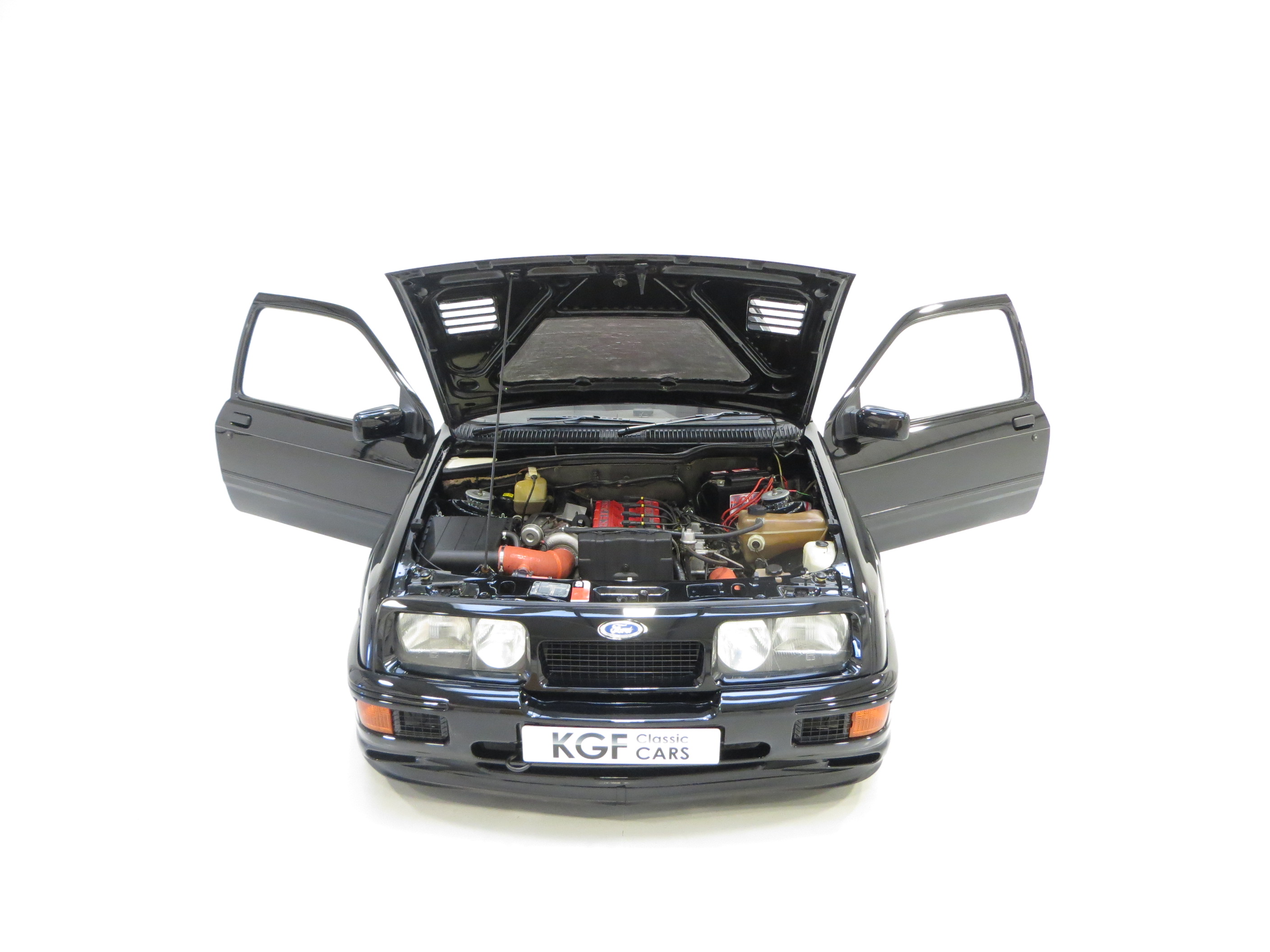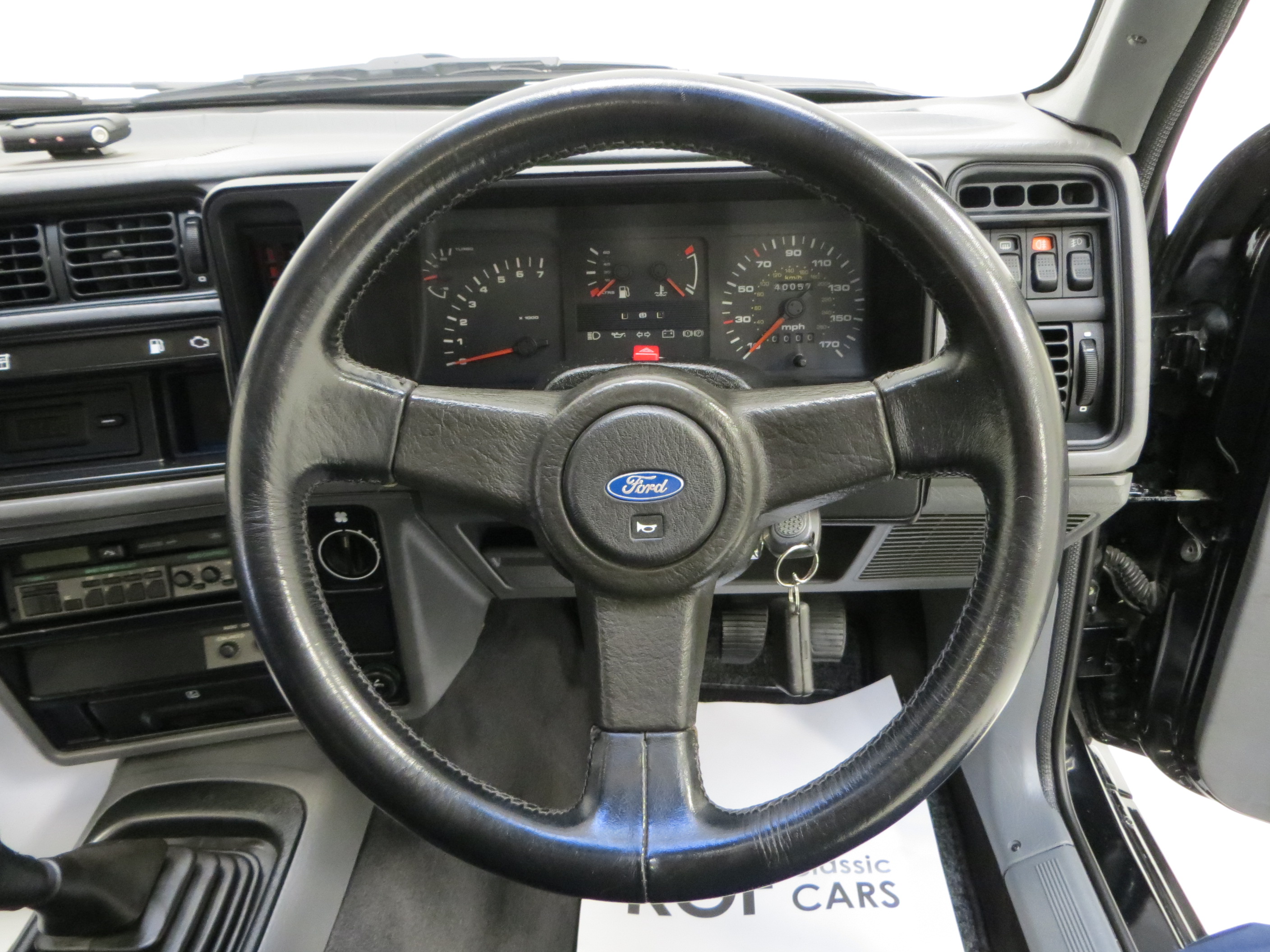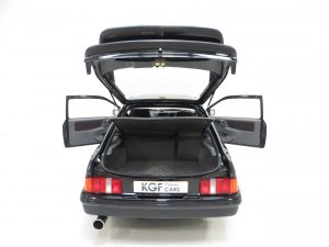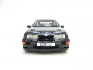 Registered new on the 27th August 1987, build number 284 of 500 has covered just 40,057 miles from new in the hands of one keeper since 1989, Mr Marshall. All-bar the first owner Mr Gray for two years, Mr Marshall and his companies have owned the car which is confirmed in writing by him and by service documentation. There is even a very early Ford Safety Recall letter addressed to his company Marshall Cooke. All handbooks, including the all-important RS500 Cosworth supplement, remain in the history file along with virtually every MOT certificate to verify the mileage. An independent report by renowned valuation experts, Julian Shoolheifer Limited, was carried out on 28th October 2014. KGF Classic Cars have taken the car to respected Mr Harvey Gibbs of Cosworth specialists, Supreme Car Services, for a full service and inspection including cambelt and tensioner as well as a MOT valid until 28th September 2016. One key fits all locks and ignition.