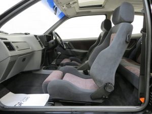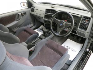 Presented in above average condition, this RS500 Cosworth has remained true to Fords vision finished optional Ford Black (code A6). The paintwork boasts a polished, uniform finish but it is not all factory original. All exterior trim, rubbers and glass are in good order and the imperative RS500 badges and decals are present. A small crack to the plastic front window vent and o/s front indicator lens is visible. The front lower splitter has remained true to shape and the original grilles in place of the fog lamps remain correct to the RS500 build specification. The ‘Go Perrys’ Ford number plates are still fitted front and rear. The ultimate 1980’s performance touring car, very special.