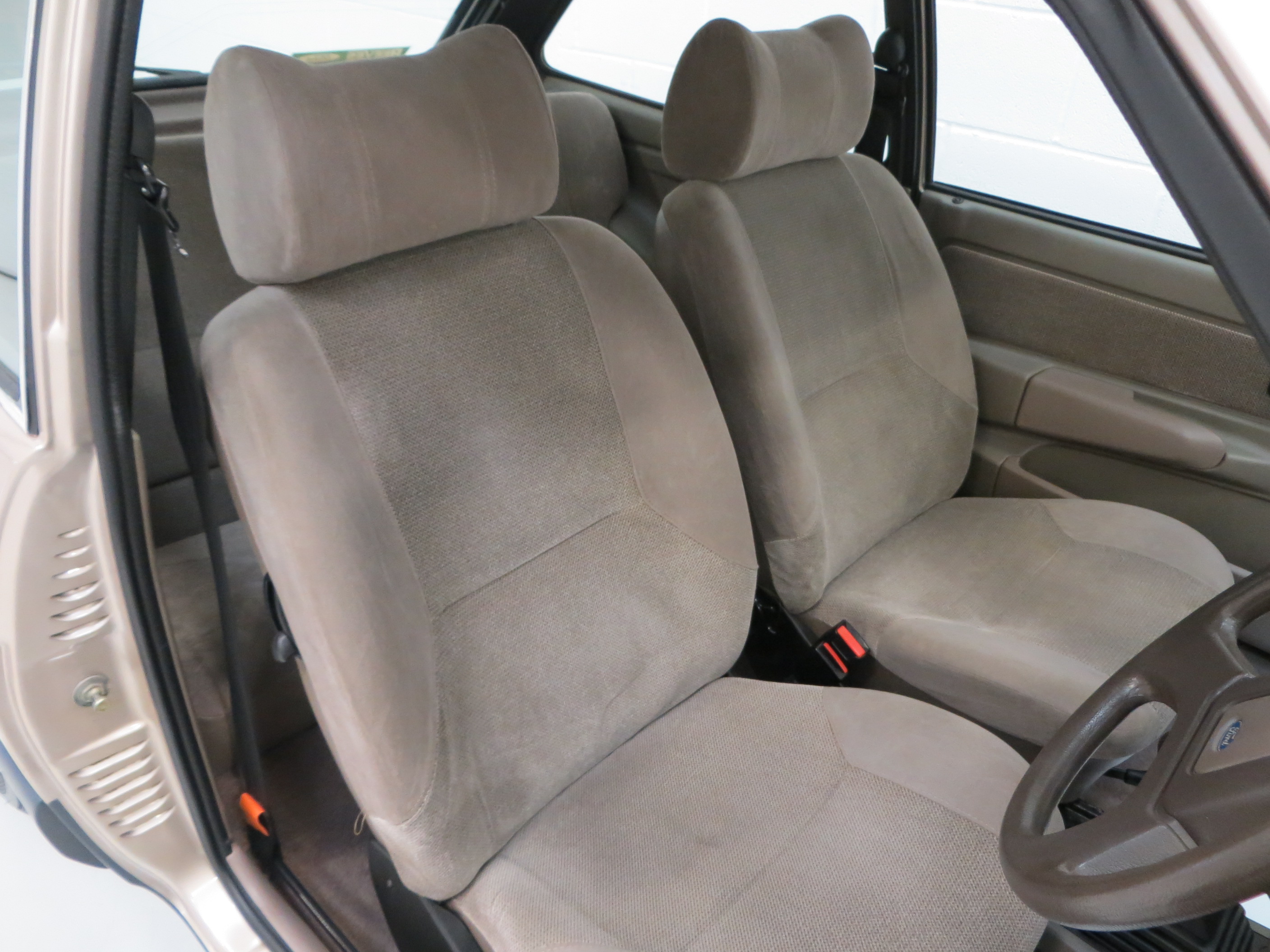 The interior of this remarkable example is in exceptional original condition and exactly as Ford intended. The Savoy fabric trim in Mocha colour scheme (code MR) is beautifully clean and the common vulnerable areas for wear such as the seat bases and bolsters are undamaged. The colour-keyed velour carpet is clean and the perforated neutral tone headlining is flawless. All switchgear is functional and intact, and the soft finish dashboard is perfect. The header mounted digital clock retains the correct green LCD display and the original Ford stereo radio/cassette remains fitted. The hugely difficult to source trimmed parcel shelf is intact, straight and complete with the correct rubber hangers. This luxury Fiesta is the epitome of a cherished modern classic Ford.