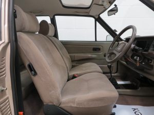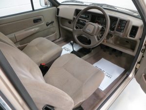 Integral front bumper overriders, wide grey bodyside mouldings with bright insert, remote control driver’s door mirror, halogen headlamps, tinted glass, tilt-or-remove screened glass sunroof, digital header mounted clock, anti-burst door locks, storage compartment under rear-floor, two speed plus intermittent wipe, tailgate wash/wipe, electric tailgate release, heated rear window, stereo joystick balance control, tachometer, trip recorder, cigar lighter, illuminated interior controls. Factory options; metallic paint.