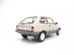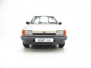 Supplied new by Ford Main Dealer Norman Reeves Motors of Slough on 7th August 1984, the vehicle was purchased at just three weeks old by the only private keeper Mrs Jean Poole who has owned it ever since! The incredible 43,854 miles covered is completely verified in the service booklet fully stamped from new with no less than 30 entries, confirming just how well this example has been cared for and truly cosseted. Ownership of just one keeper and such devoted upkeep represents a provenance that cannot be recreated, and the condition and driving manner of this beautiful example is a testament to Mrs Poole’s love of the car. Reluctantly Mrs Poole gave up driving and sought the services of KGF Classic Cars to find an enthusiast.