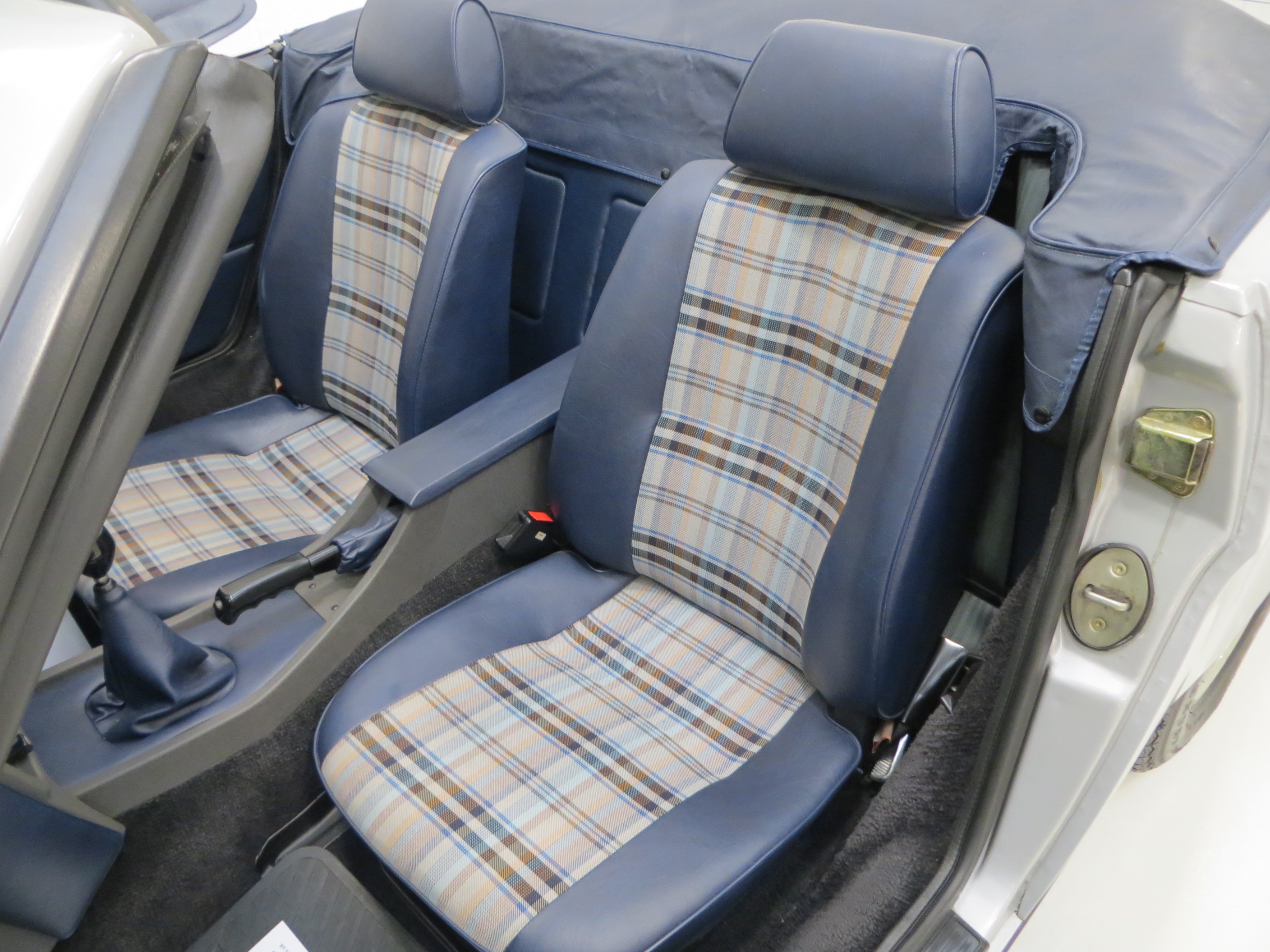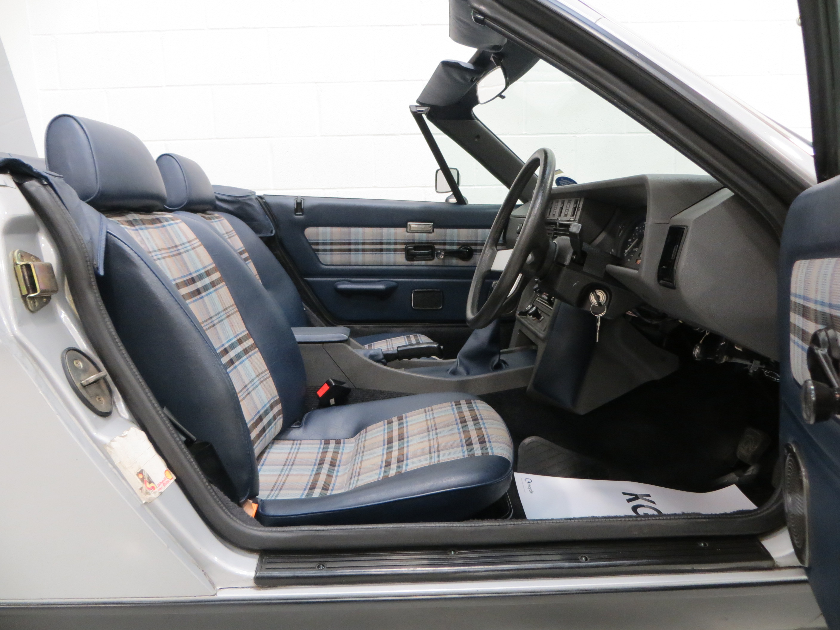 Steel panelled unitary construction, folding soft top with zipped rear window, moulded bumpers, electric windscreen washers, two speed plus flick wipe, twin horns, pop up headlamps, lockable glovebox, cigar lighter, vanity mirror, centre armrest with storage bin, flush-fitting ashtrays, maps lamps in door trim panels, inertia reel seat belts, 3-speed fan, tachometer, clock, water temperature gauge, battery condition indicator, multi-function warning lamps. Dealer options; Metallic paint finish.