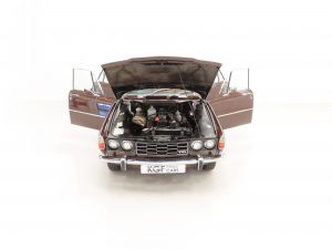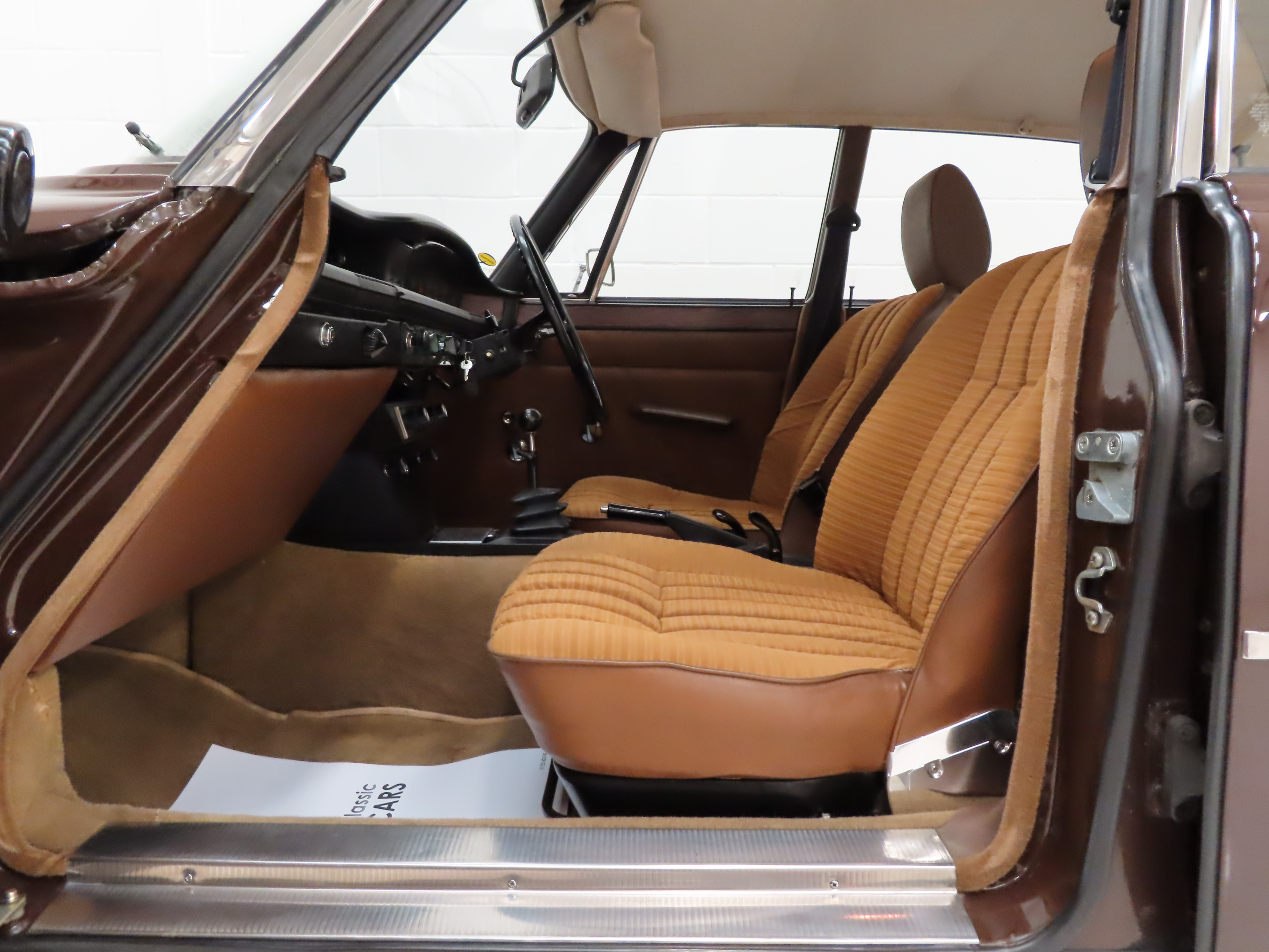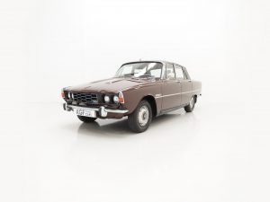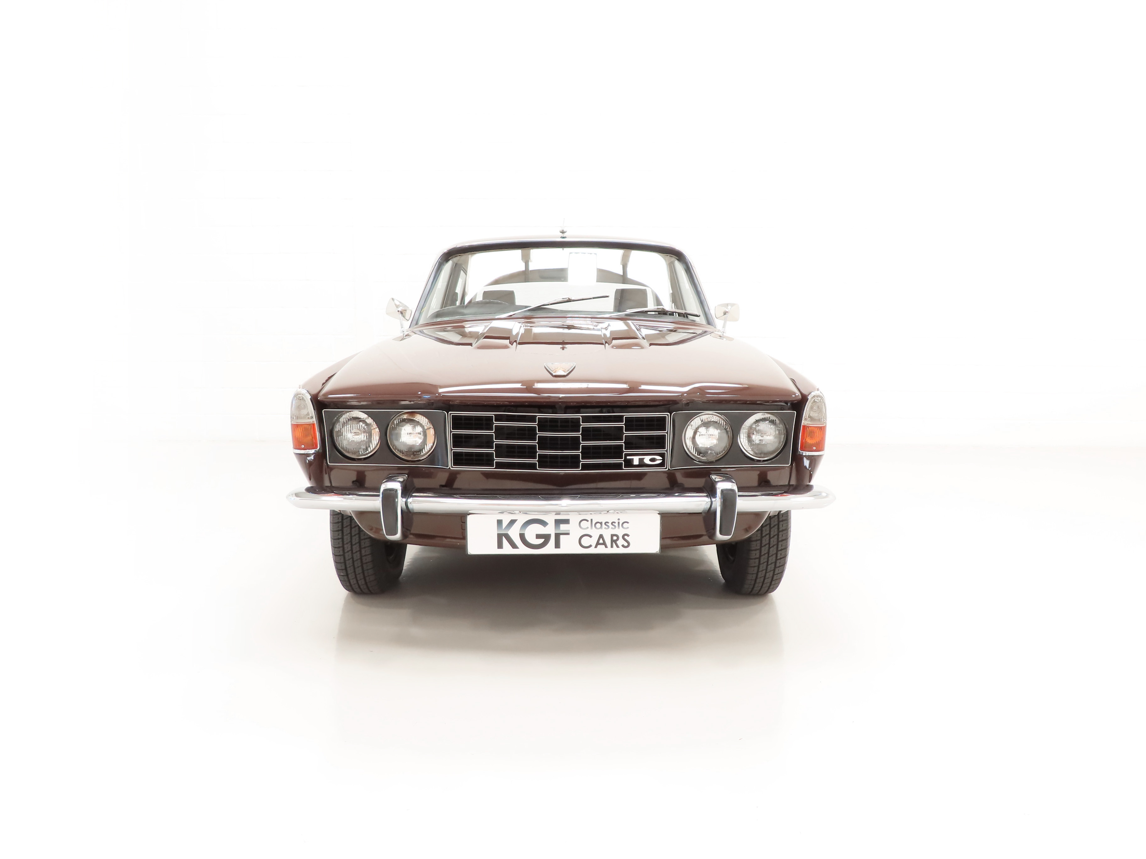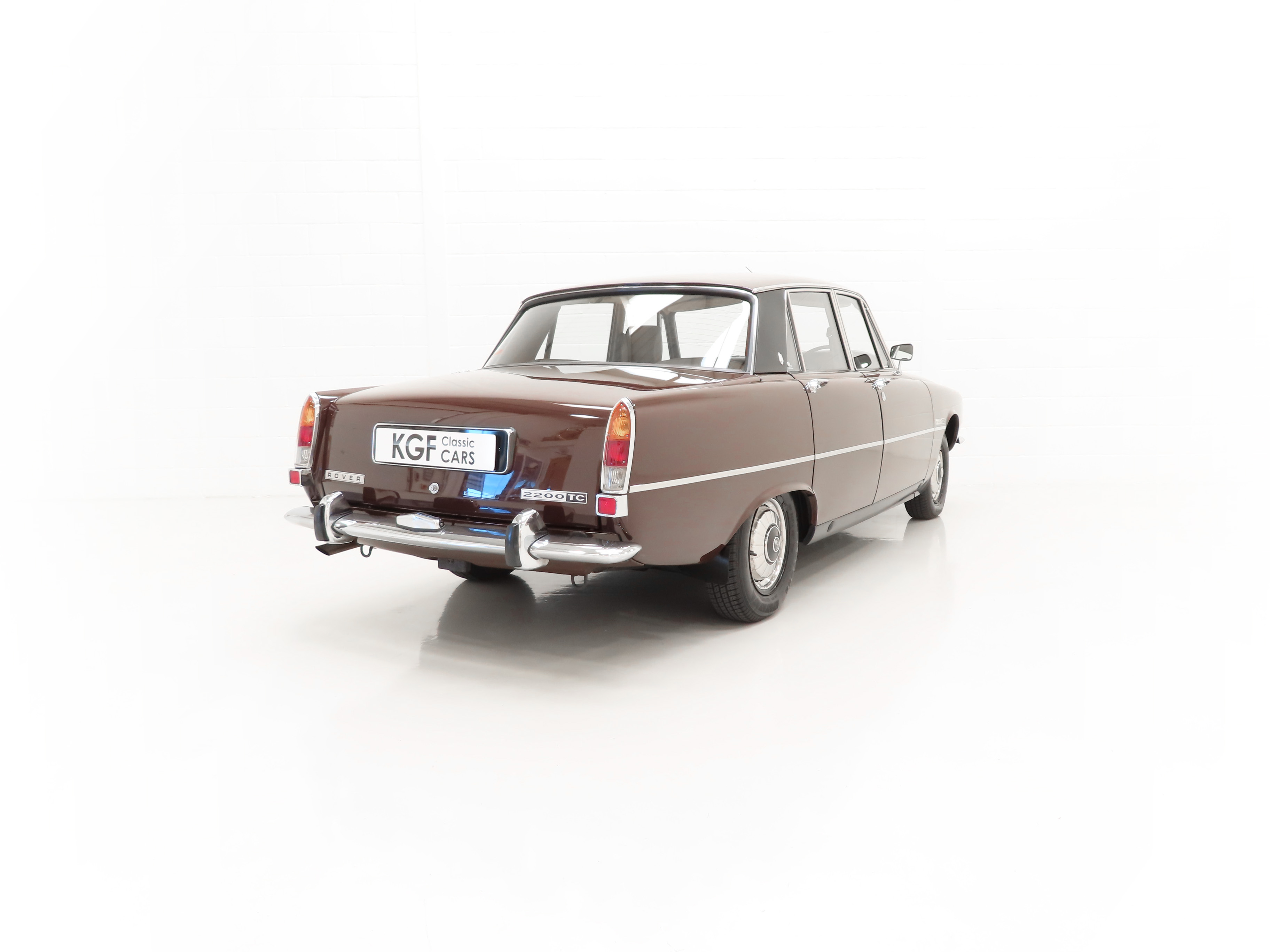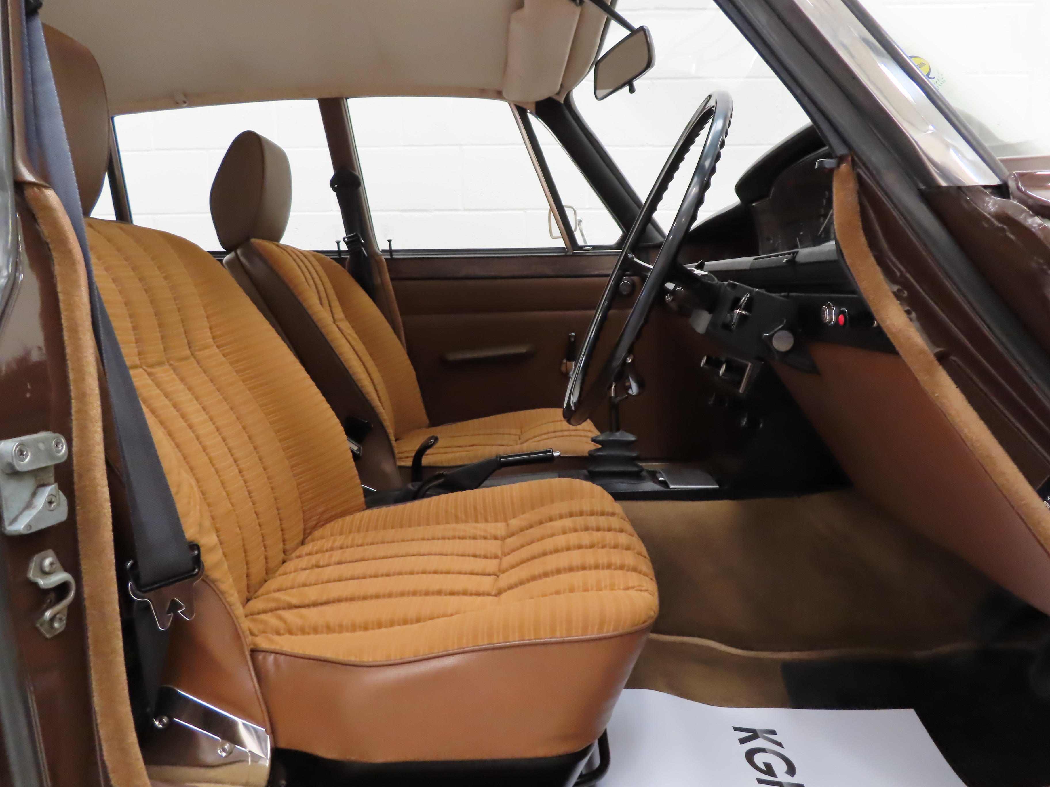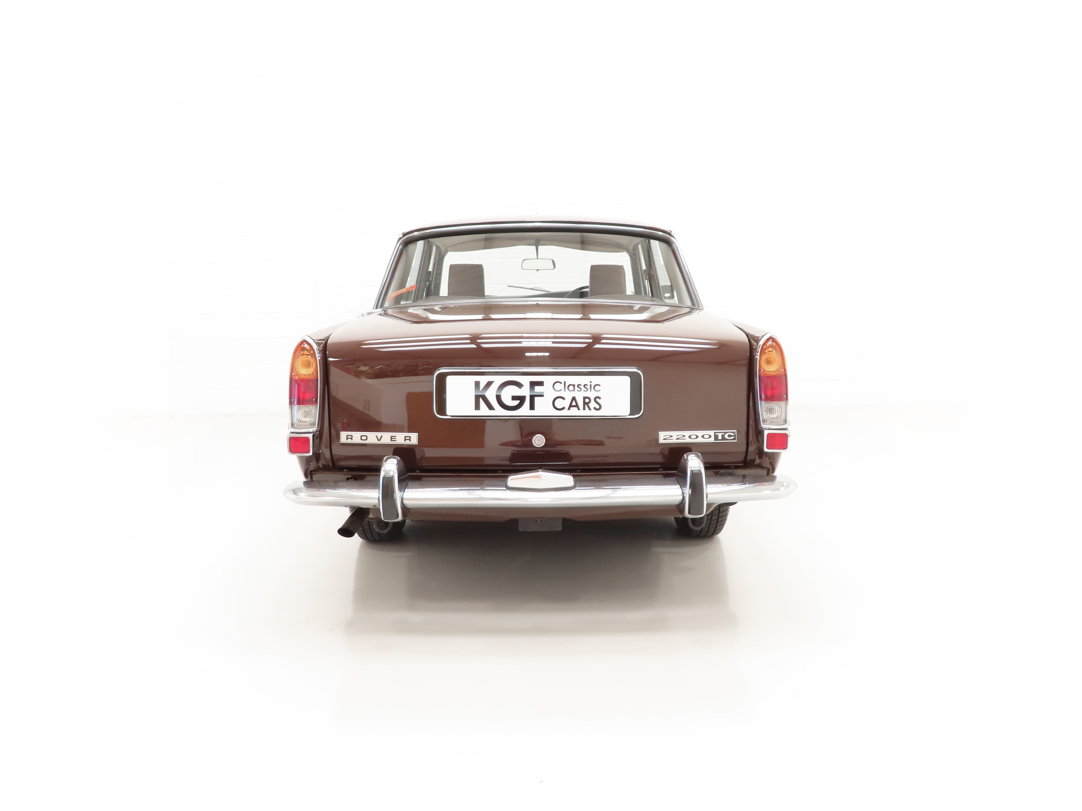 Boasting the accolade of winning the very first European Car of the Year award in 1964, the all new and innovative Rover P6 was a ‘clean sheet’ design and replaced the aging P4. This stunning 2200TC model is finished in the original colour of Mexico Brown, (Code ACC), as denoted on the Factory Record Certificate issued by the British Motor Industry Heritage Trust. The deep lustrous shine to the paintwork looks incredible and boasts a beautiful uniform finish. All panels are in outstanding order with clean seams lines and factory spot welds that positively separate this car from the usual patched up and bodged examples. There is a very light long scratch to the lower rear nearside wing, not very noticeable. The underside is in superb order. All factory chrome has a bright mirror finish with only light aging and the trim sections and rubbers are in excellent order. The boot lid and front wing Rover and 2200TC badges are near perfect but the front Rover emblem is crazed and discoloured. A truly opulent design from the Rover heydays and very difficult to better with this exceptional example.
