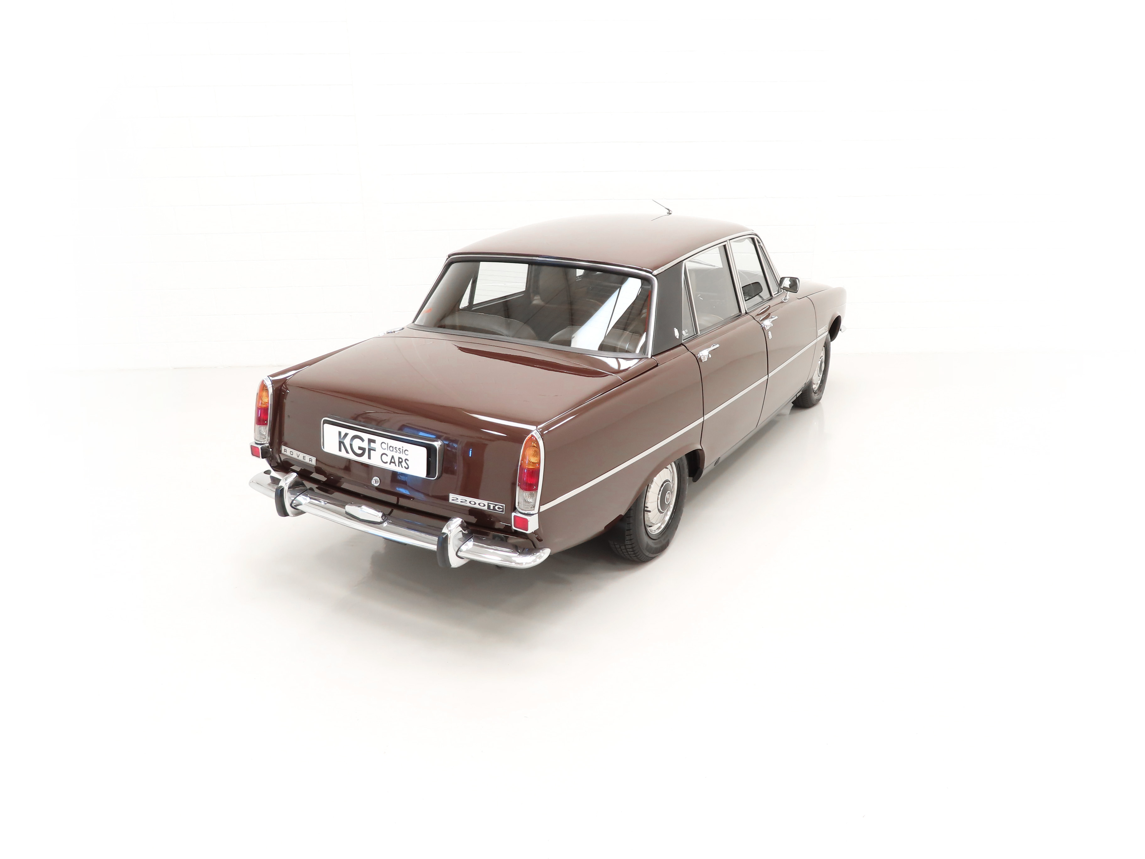 Main body of welded steel construction, aluminium alloy bonnet and boot lid, underbody protection, wax injected body sections, De-Dion tube rear suspension, chrome bumpers with overriders and rubber pushers, chrome trim to light clusters, door frame, drip rail, door handles and door mirrors. Chrome arrow roof antenna, 2200TC wing badges, pendulum cover door locks, front and rear quarter light openers, quad beam headlamps, front side lamp clusters with top prism, dual individual rear seats with wide central armrest, rotary map light, central courtesy light, cigar lighter, rev counter, gauges for engine temperature, oil pressure, ammeter, twin locking glove boxes. Factory options; Front headrests.