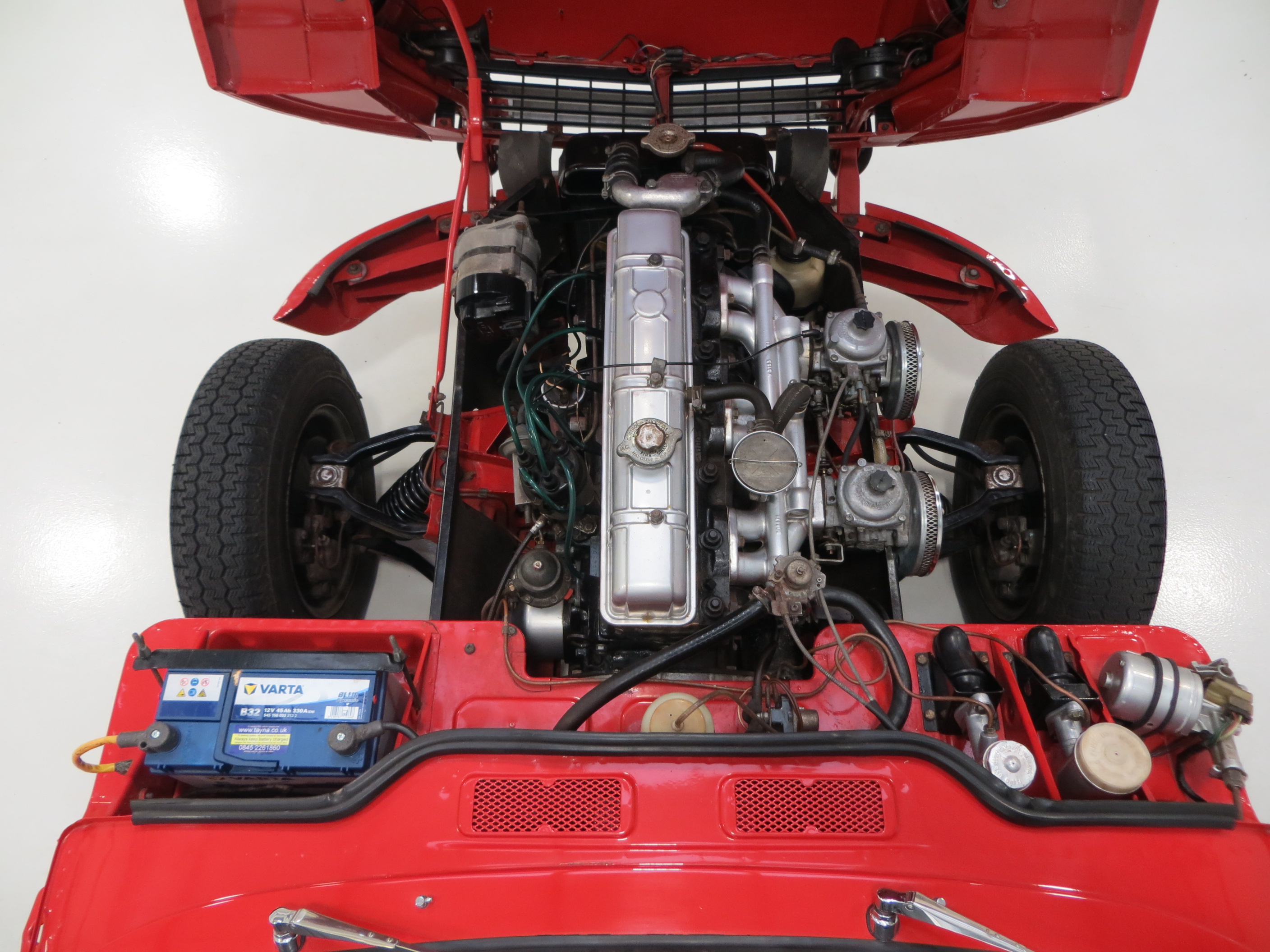 The interior of this remarkable GT6 is unusual in so much that it remains just as it came out of the factory with the all too common modification trend avoided. The original tall backed expanded PVC leathercloth seats and matching door cards are in immaculate condition with no undue wear or damage to the coverings. The factory fitted non-glare veneered fascia panel houses the original switchgear and controls all of which operate perfectly, and the gauges displaying healthy readings. The moulded pile carpets in the cabin space and luggage area are in superb order and the leather covered steering wheel is excellent aside from very faint pitting to the three spokes. It is an absolute delight to be able to appreciate an unmolested and original interior such as this, remaining truly loyal to the manufacturer’s intentions.