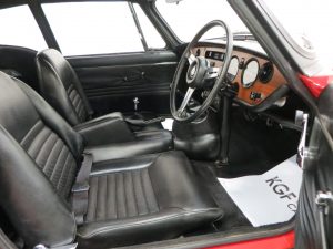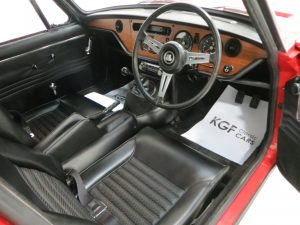 The standard and original factory 1998cc straight six cylinder unit remains fitted with the correct twin side-draught Stromberg carburettors. A spotlessly clean and detailed engine bay is ready for bonnet up exhibiting with beautifully clean and shiny inner wings sections and factory identity plate. A power output of 104bhp allows 0-60 in 10.5 seconds and a top speed of 110mph, credentials which in 1970 were very impressive! The four speed gearbox remains exactly true to Triumph specification and operates well.