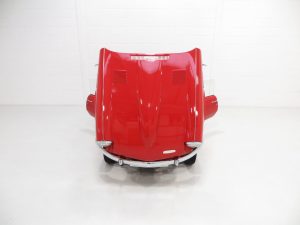 Steel panelled coachwork, grand touring body, up-and-over bonnet, curved glass screen, stainless steel wing beadings, winding windows, opening rear quarter lights, chrome plated bumpers with front overriders, flush fitting sealed beam headlamps, speedometer, tachometer, temperature gauge, fuel gauge, visors, padded passenger grab handle, ash tray, self-parking twin electric wipers, twin wind-tone horns, heated rear screen. Dealer options; Push button radio.