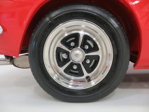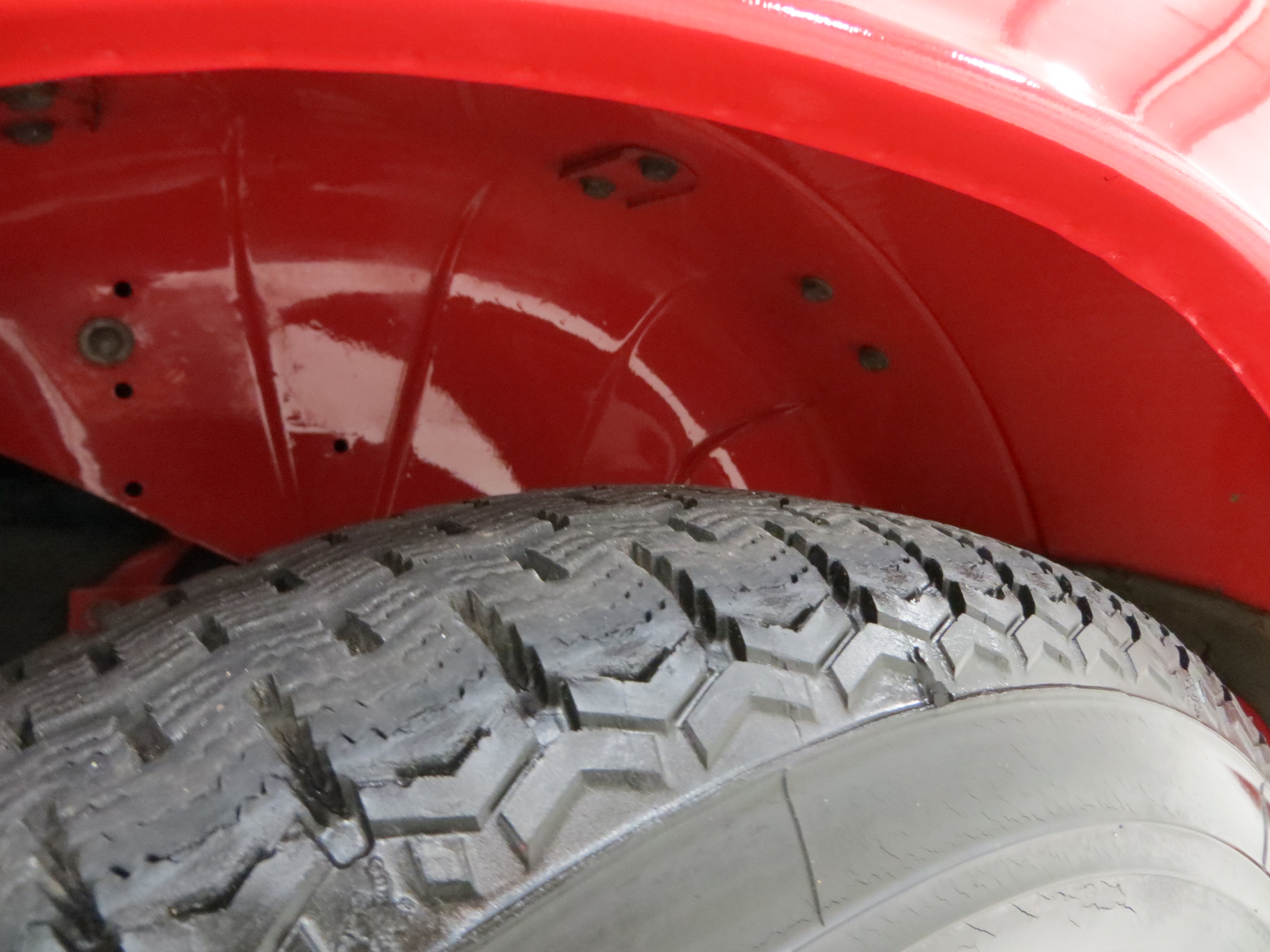 The factory fitted steel wheels with disc type chrome coverings are in excellent order with only faint age related deterioration to the black infills. Quality matching Michelin 155 SR13 tyres have excellent tread remaining on all road wheels and the spare. The braking system incorporates 9.7in discs to the front and 8in drums to the rear and offers ample stopping capability.
