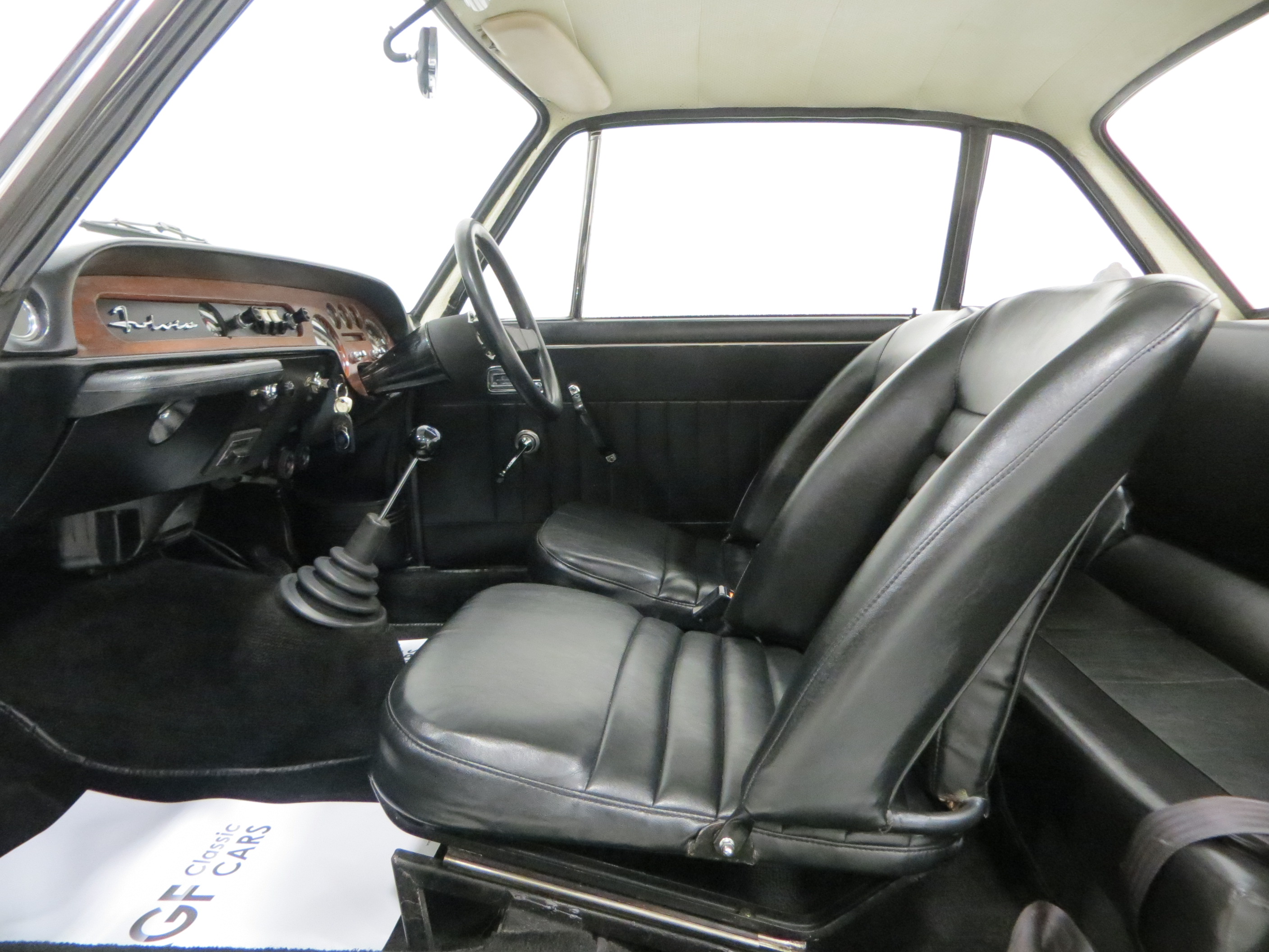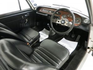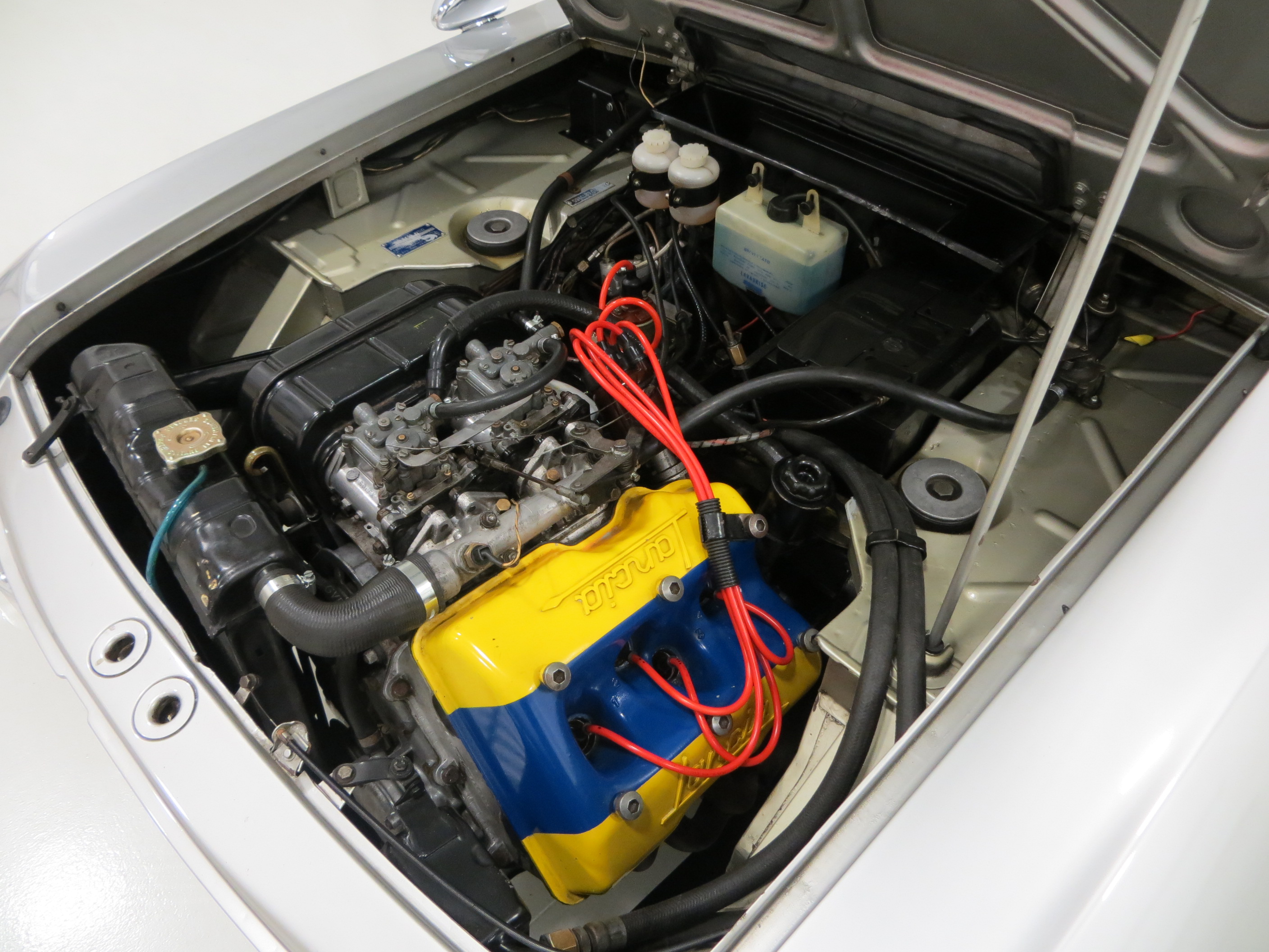 Described by Hemmings Motor News as ‘one of the best-engineered four cylinder engines of all time’ this very narrow angle 1584cc engine produces 115bhp being fuel fed by the correct twin 42DDHF Solex carburettors. Engine number 818-540-1282 is the factory correct unit with the lighter flywheel and the 818-540 stampings are visible. The evocative yellow and blue cam cover remains a visual cue. The correct ‘piggy-back’ five speed gearbox once warm slices through the gears and has a well-bred tool-room quality feel.