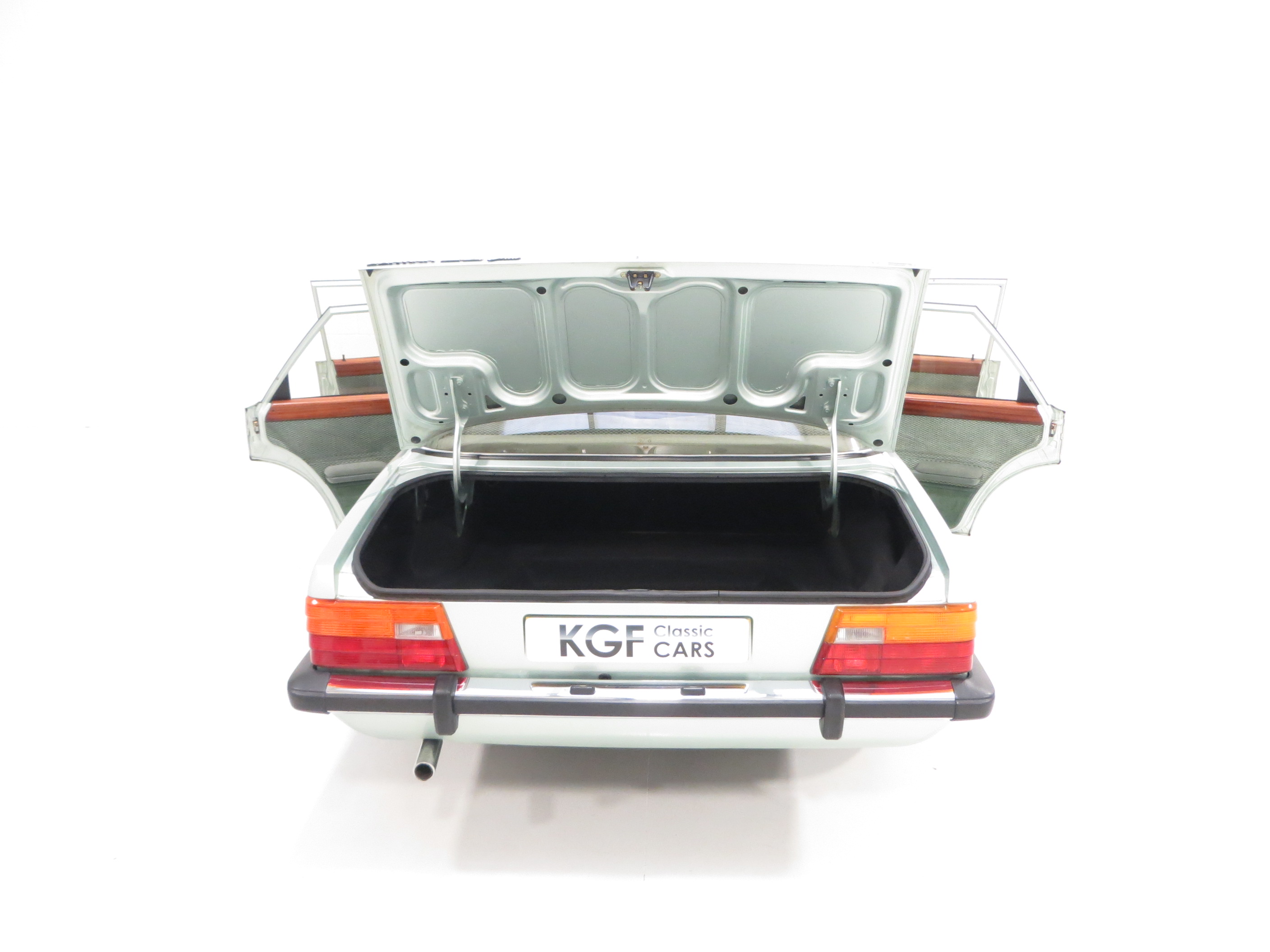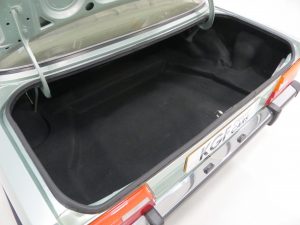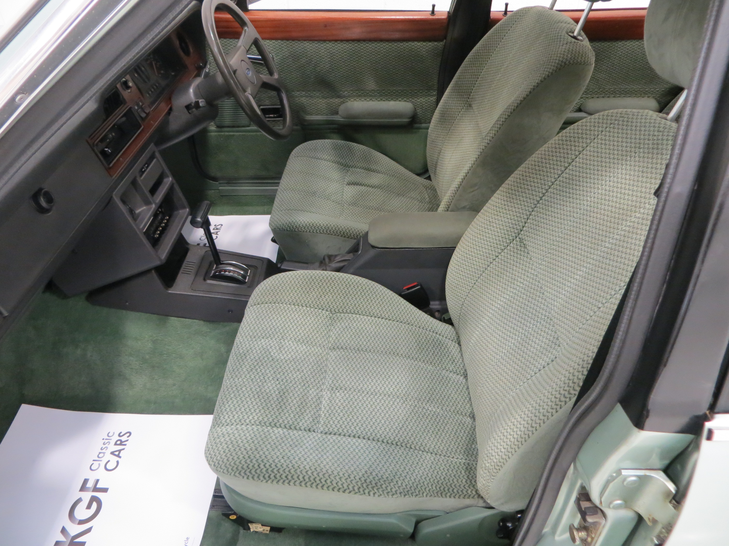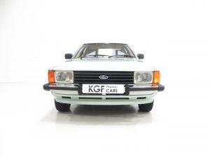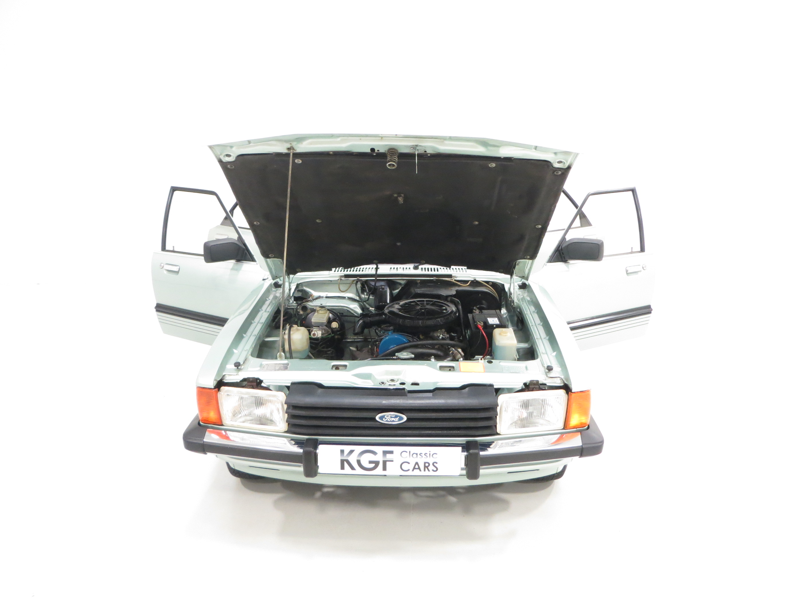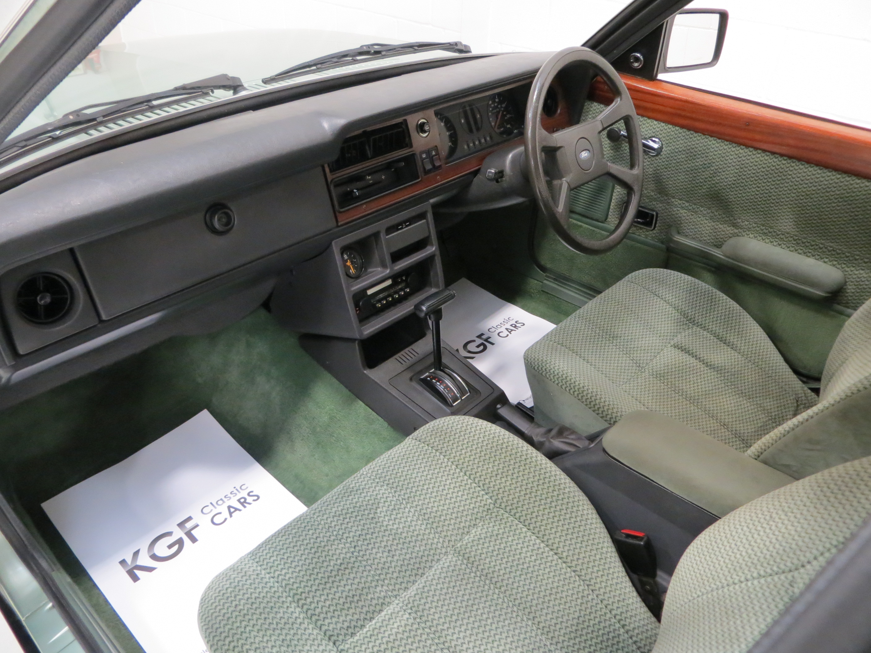 A beautifully clean and preserved 1980’s Ford interior to instantly take you back in time and a true delight to any ‘blue oval’ enthusiast. The immensely comfortable Green Chatsworth and Crushed Velour (code W6) fabric seats are free from wear or damage. The spotlessly clean colour keyed cut pile carpets, matching door cards and perforated headlining are in excellent order aside from a tiny burn mark in the drivers foot well. All switchgear and functions operate exactly as intended including the RST21P radio cassette and electric aerial. The perfect dashboard has suffered no cracks or distortion. A well appointed and refined interior with the usual Ghia indulgence to enjoy!