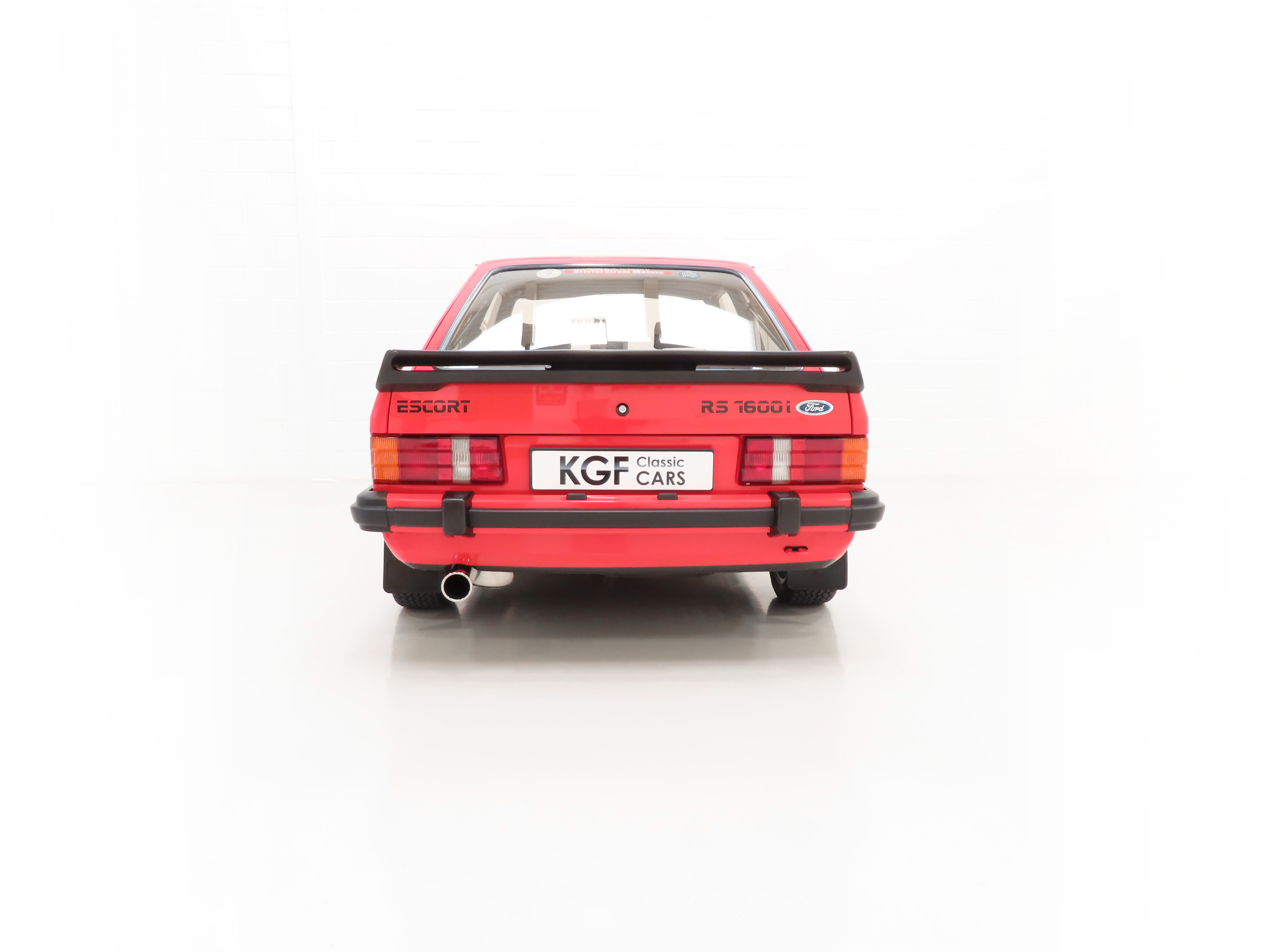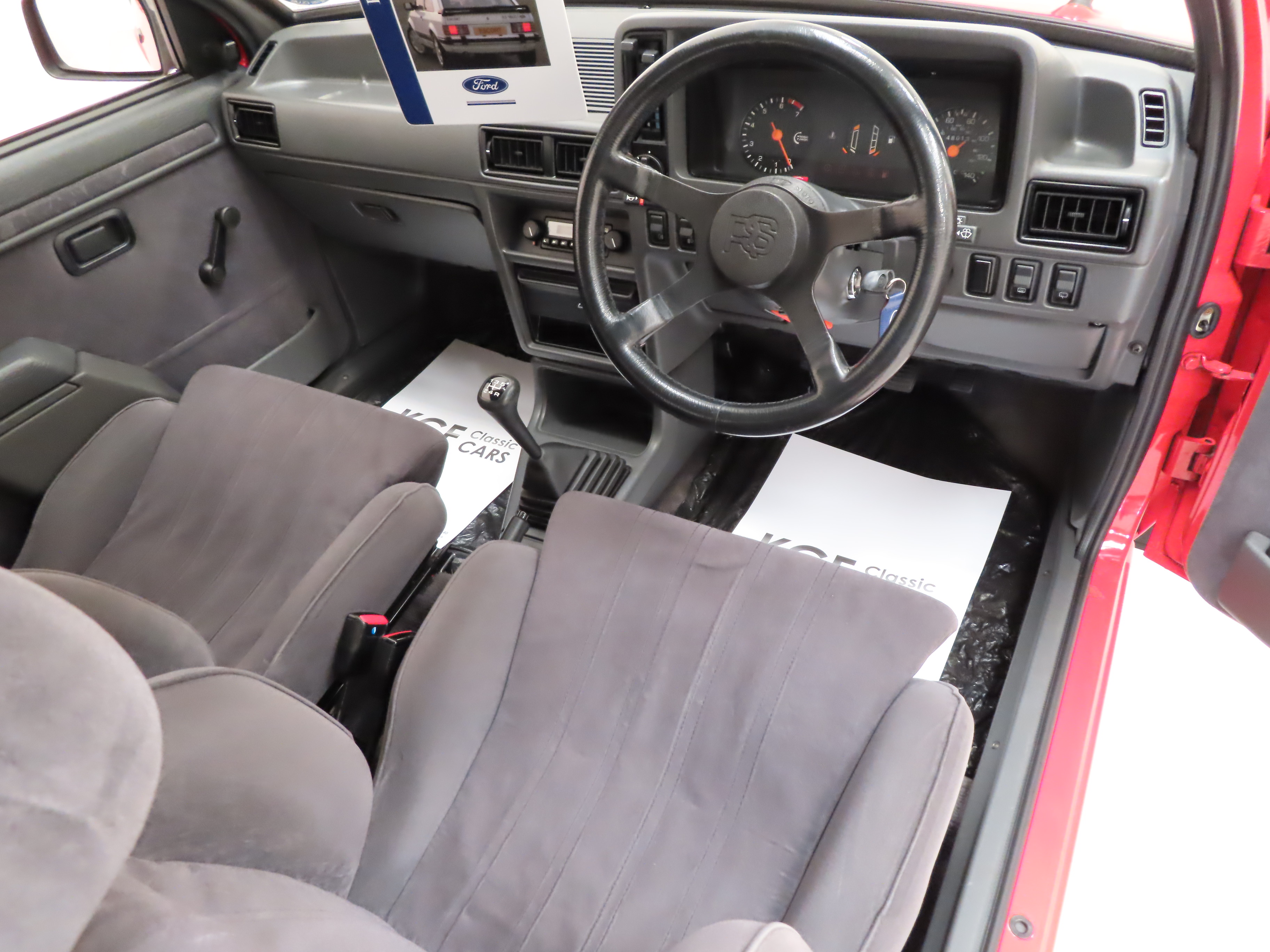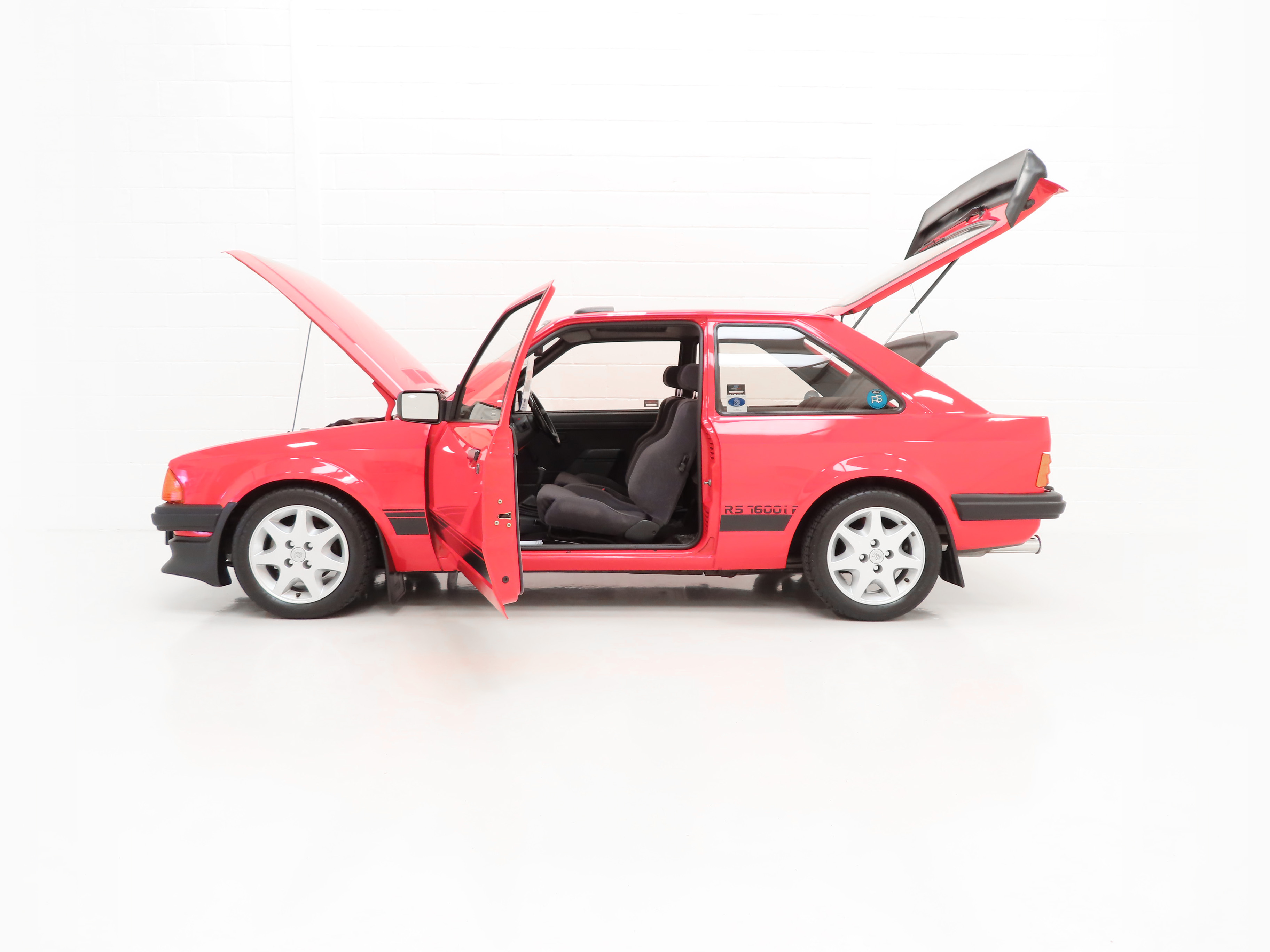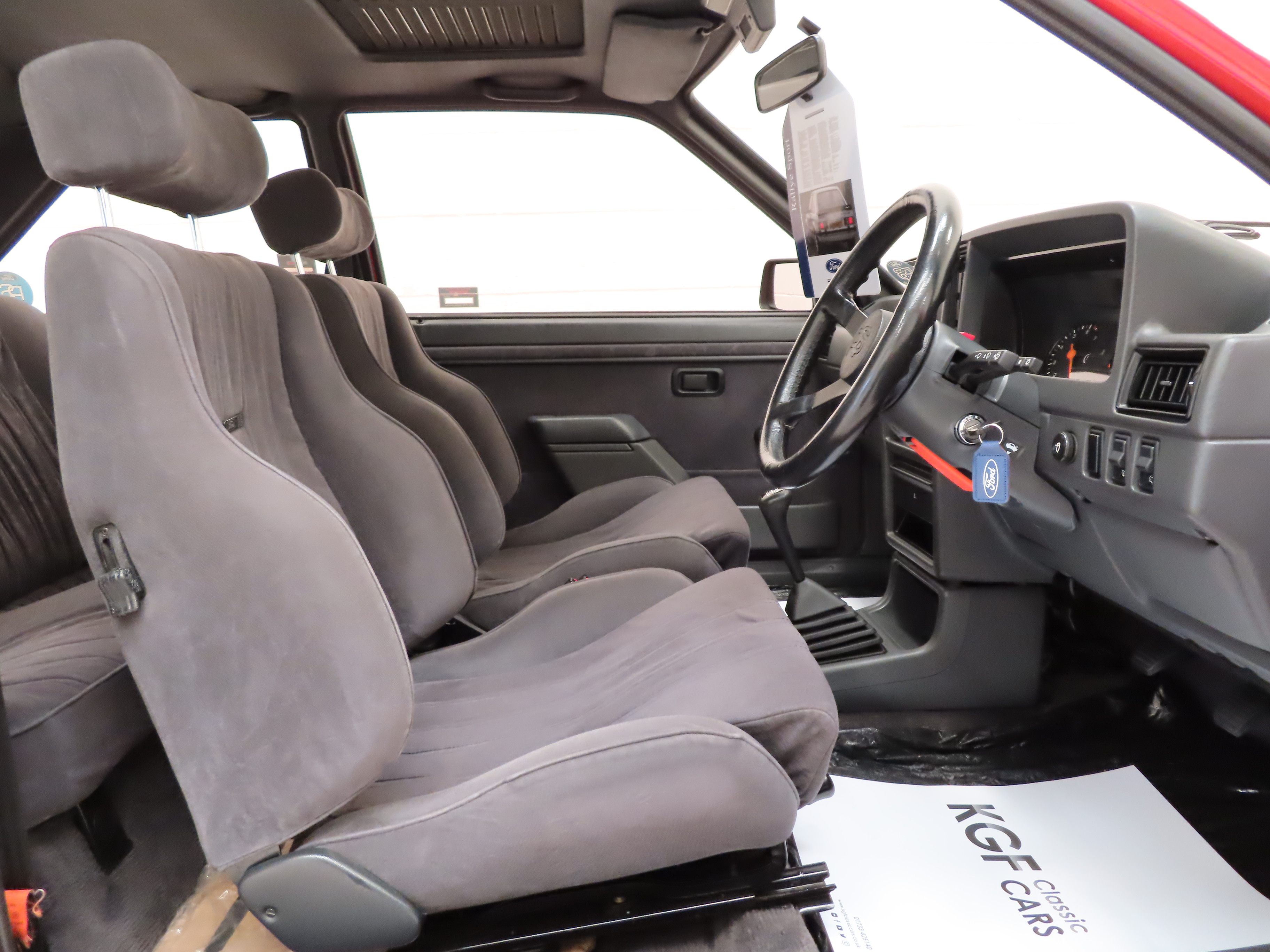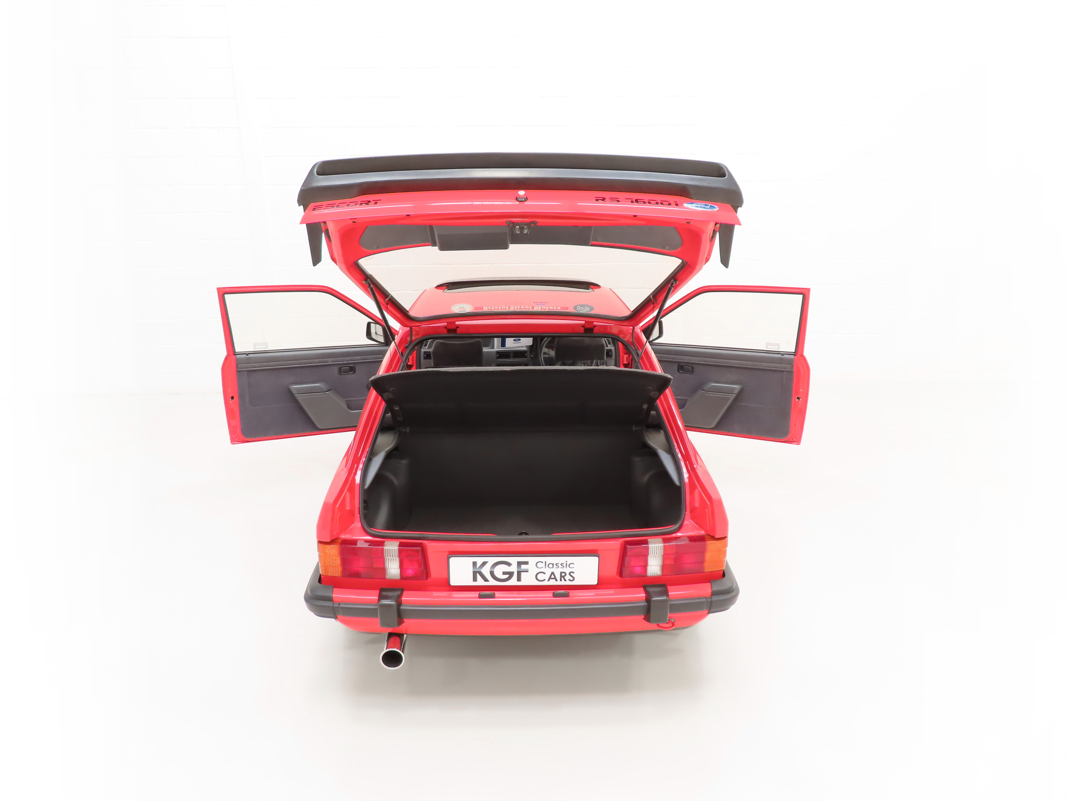 This show winning RS1600i is finished in stunning Sun Burst Red, (Code P 1), and has a perfect uniform shine across every factory fitted and date stamped panel. The paint has the desired orange peel, only found on first paint Fords and all decals are original fitment. A small number of touched in chips are barely noticeable. Polyglycoat was applied when new by the supplying Ford dealer as stipulated by the long-term first fastidious owner and the care bestowed on this cars appearance has never waned. Testament of this is evidenced with numerous concours wins and trophies awarded on the competitive RS show circuit. The underside has the Britax seal application as applied when new with corresponding certificate still preserving the factory components. The optional tinted glass has Identicar number plate etching carried out by the supplying dealer. A proven car found in factory perfect condition in all respects.