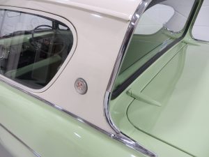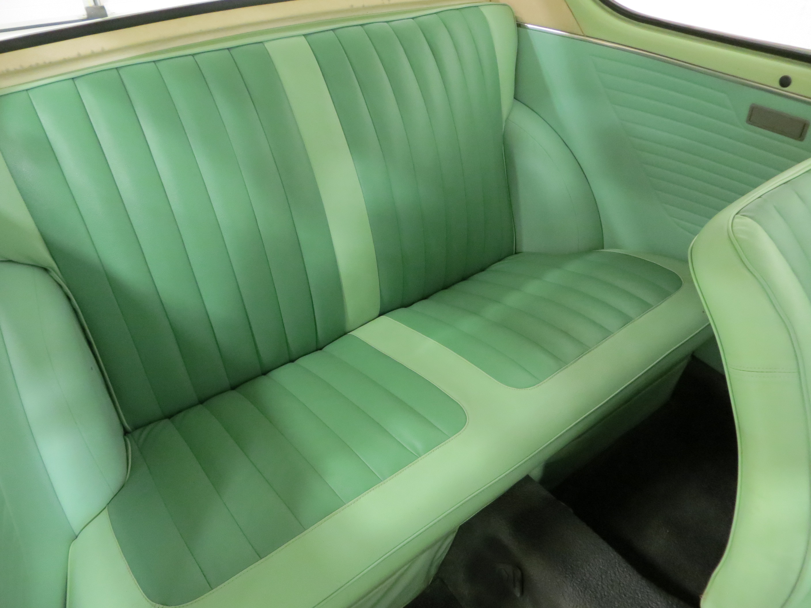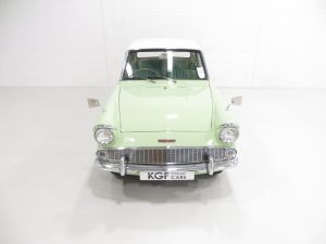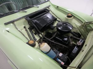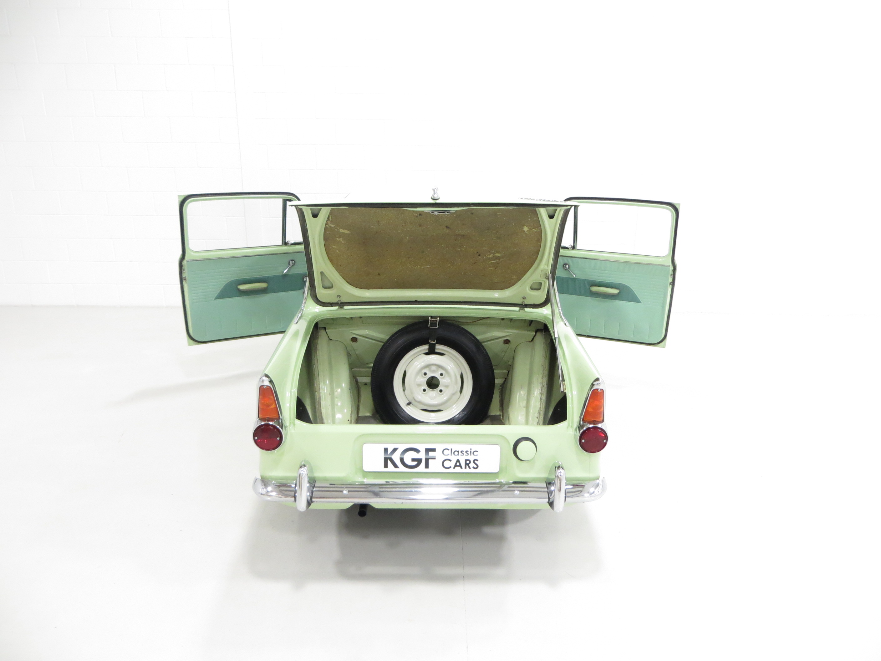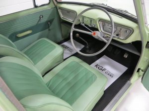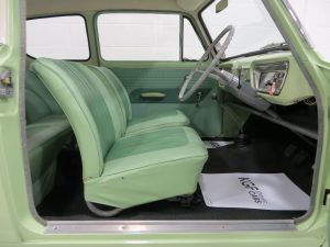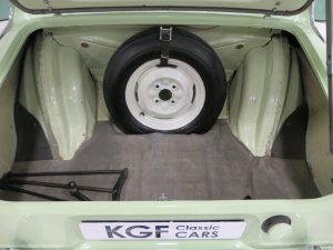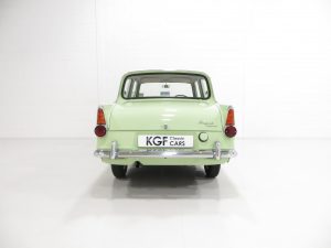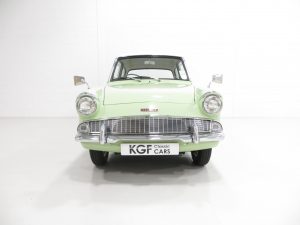 The spacious interior of this remarkable Ford Anglia is a collectors dream. The two-tone PVC seat trim complements the exterior beautifully in light and dark green. The door cards, washable plastic headlining and ornamental metal dash is pristine and only the driver’s seat shows slight aging. Deluxe features all remain fitted such as the two rear ashtrays, demister shrouds in bright metal and a virtually unworn flecked coloured rubber floor covering. All controls, gauges and switches function perfectly. The boot area still houses the correct protective floor covering and rubber spare wheel strap with factory jack. Simply divine.