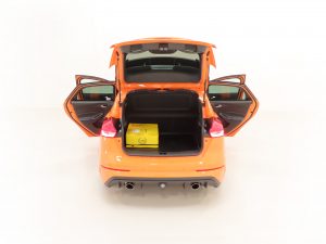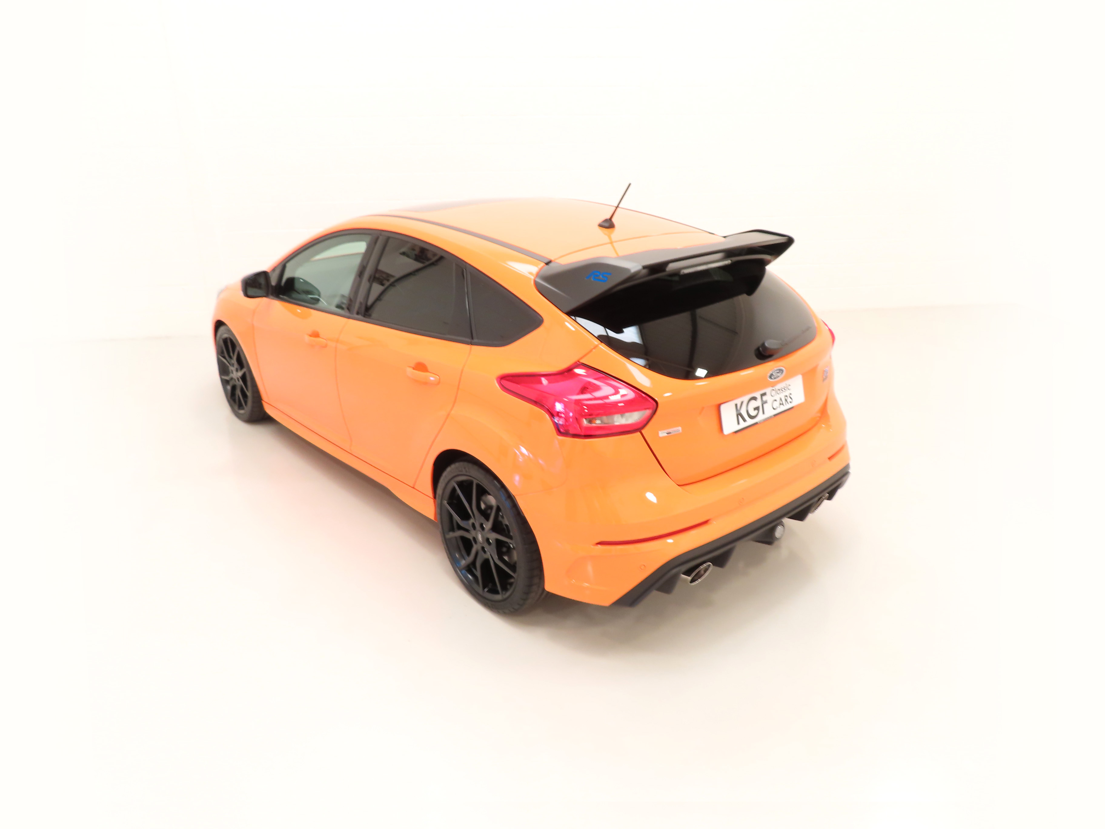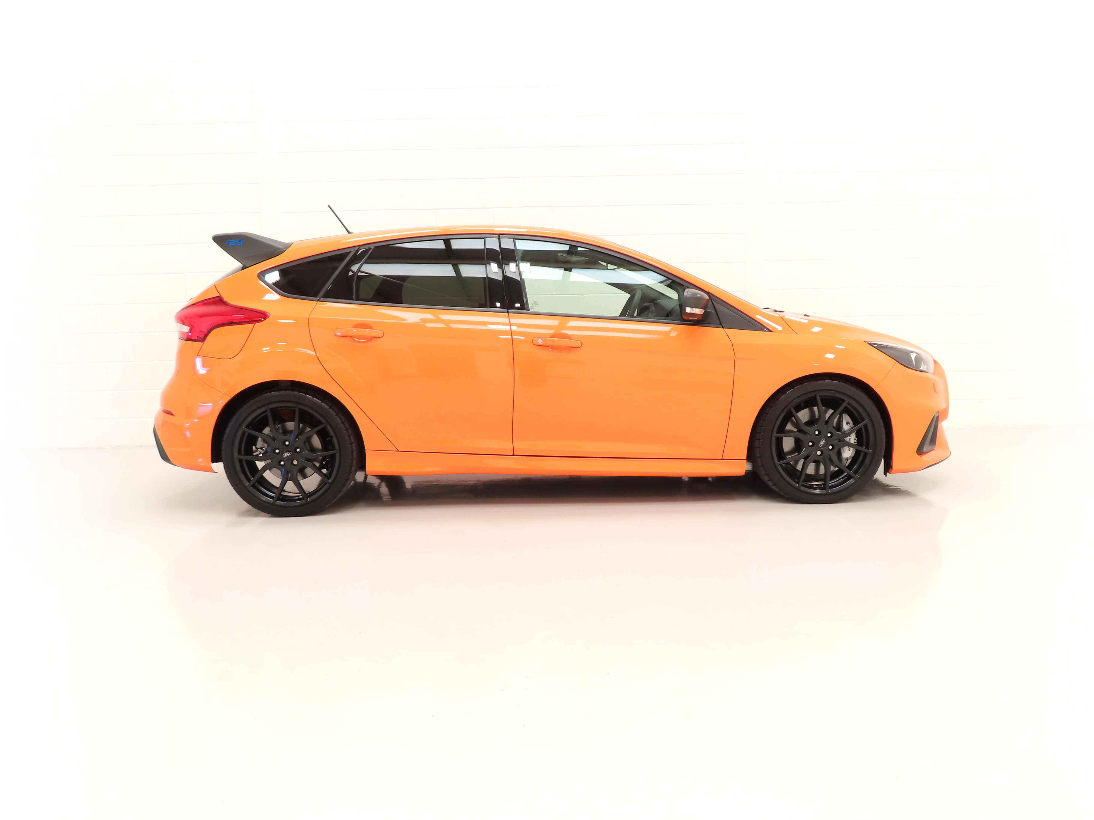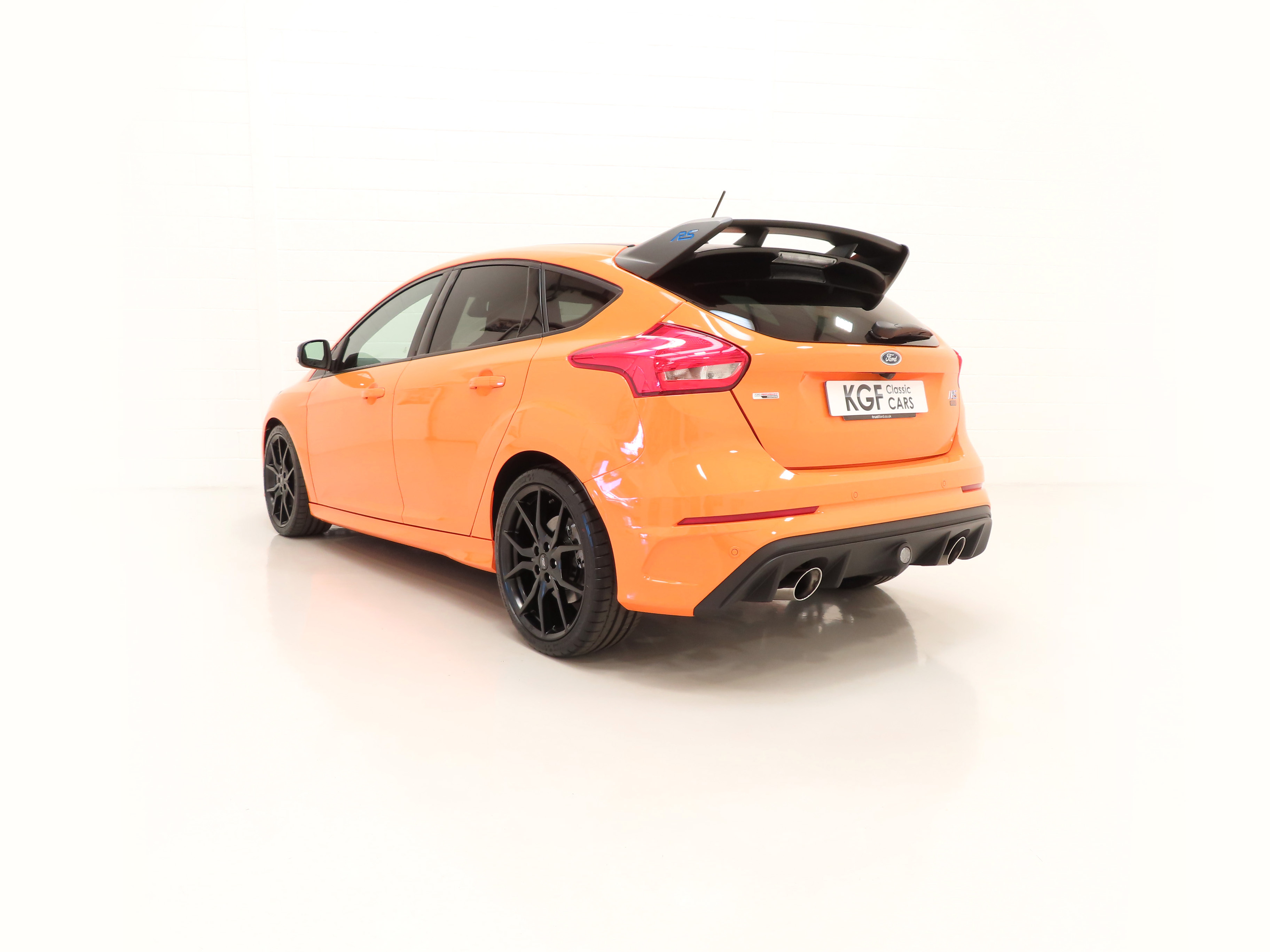 All-Wheel Drive with Dynamic Torque Vectoring, four selectable drive modes, SYNC3 8” touchscreen DAB audio nav system, Bi-Xenon HID headlamps, Ford Power Starter button, Tyre-Pressure Monitoring System, Performance gear-shift light. RS Heritage Special Equipment; Tief Orange paintwork, black forged alloy wheels, grey-finish brake callipers, contrasting black door mirrors and rear spoiler, privacy glass, sunroof, rear parking sensors, partial leather Recaro Race moulded seats, carbon fibre trim, power-fold door mirrors, cruise control/speed limiter, heated steering wheel, mechanical Quaife limited-slip differential, FPM375 Mountune power upgrade. Dealer accessories; Ford tailored carpet mats, RS dashboard protector.