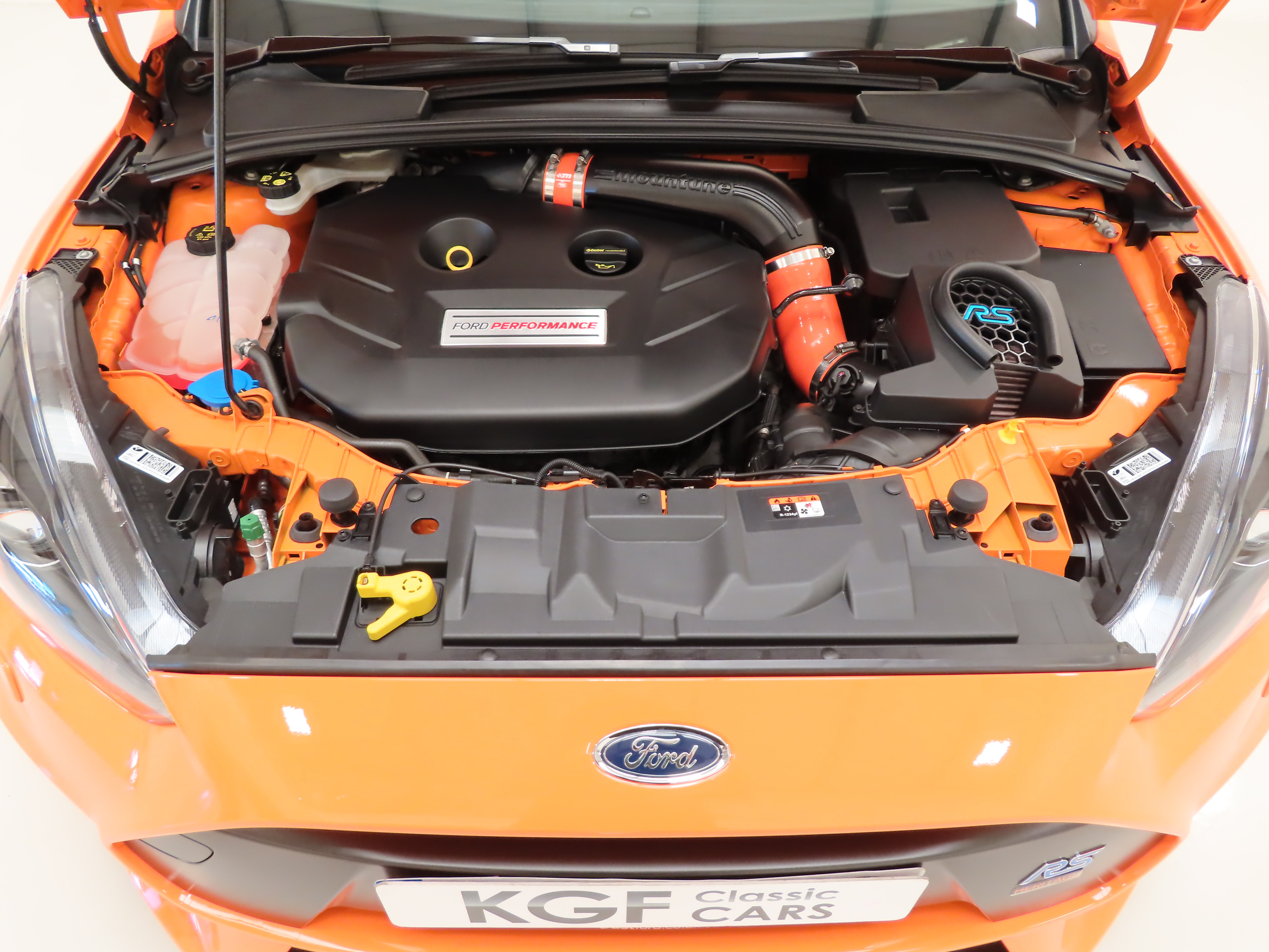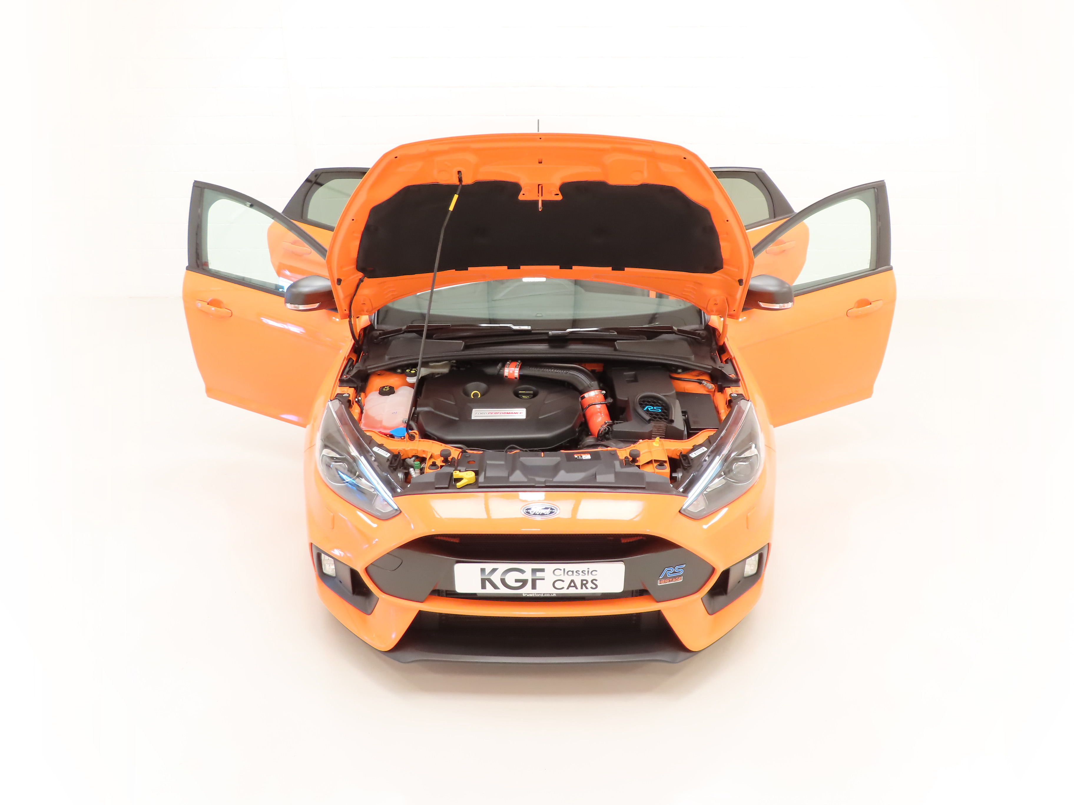 Specially designed for high performance, Ford’s 2.3 litre Ecoboost engine in the heritage Edition gained the dealer fitted FPM375 Mountune upgrade which increased overboost power from 350bhp to 370bhp and torque from 470Nm to 510Nm over the standard RS, good for a 0-62mph in just 4.7 seconds and a 165mph top speed! In addition to this, the Heritage was fitted with a mechanical Quiafe limited-slip front differential to limit torque delivered a wheel that has reduced traction and redistribute torque to the wheel with more traction in order to counteract the stability and acceleration detriments of a wheelspin. The engine bay is as new and just as it left the dealership with huge Ford Performance badge, Deep Orange Mountune hoses and RS air box casing as well as all stickers, labels and PDI markings present. With the Quiafe ATB fitted to the front axle of the all-wheel-drive system and 6-speed manual gearbox, this sure-footed RS is a formidable performance machine.