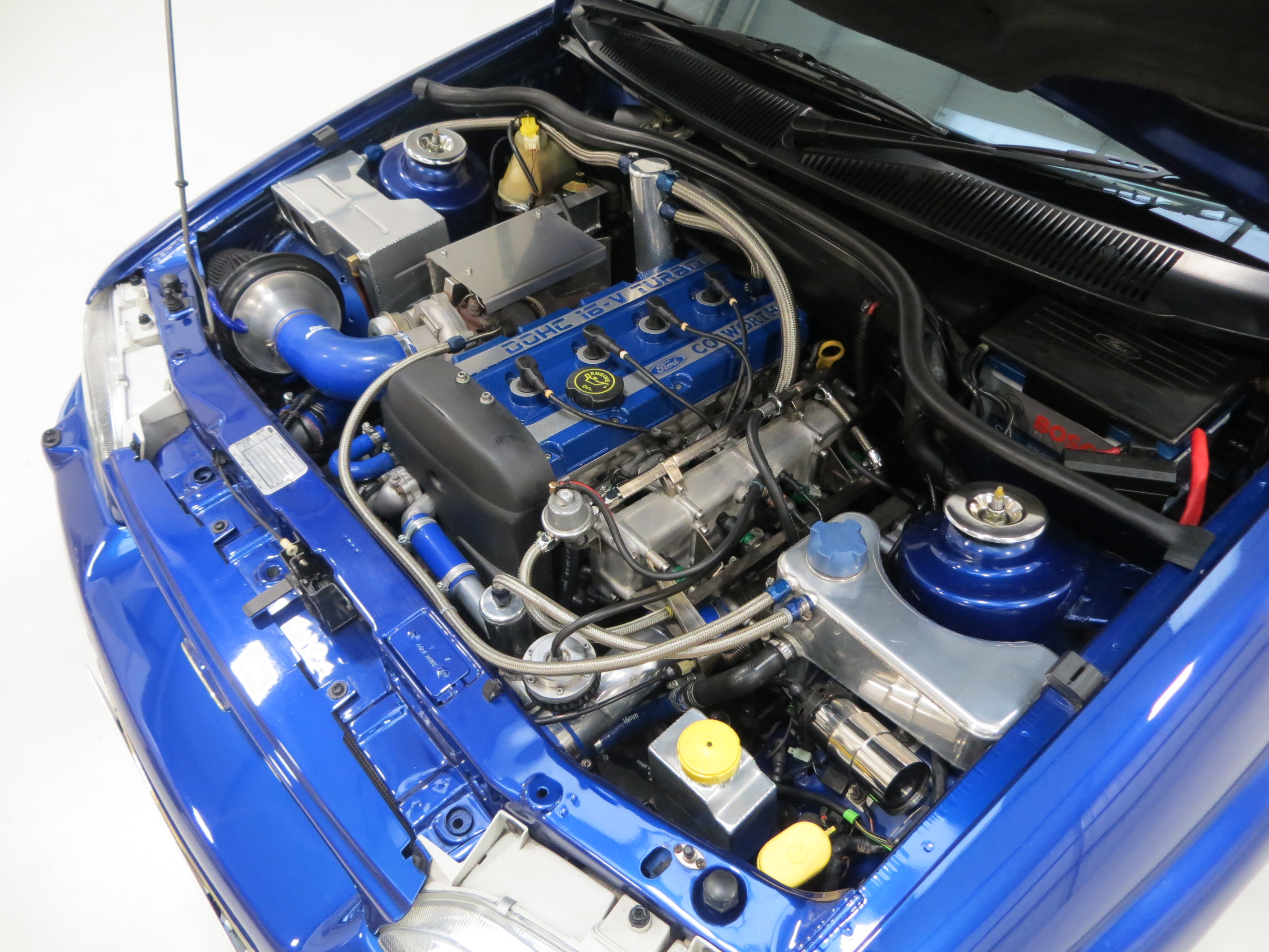 The Cosworth YBT engine warrants little introduction. Fitted with the Garrett AiResarch T3 turbo charger the motorsport pedigree of this car is unmistakable. Worked on by the likes of Graham Goode Racing with invoices totalling thousands to prove the standard output of 227HP is surpassed allowing the car accelerate rapidly through 0-60 in 5.7 seconds and reach a top speed of 140mph. Modifications include a RS500 inlet manifold, Radtec alloy large core intercooler and the eight hose finisher kit. A turbo waste gate actuator has also been installed. The permanent Ferguson four wheel drive system with 34/66% front/rear power split mated to a MT 75 5-speed gearbox is a delight.