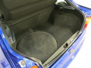 The interior of this Escort Cosworth is a very special place to be. The Recaro seats are finished in optional Raven Leather (code LW) showing slight wear to the drivers bolster. The cut-pile carpets are perfect along with all the other interior trim items. The comprehensive and sophisticated instrumentation has beautiful dials with black detail on a white background. The vehicle is fitted with the optional and very rare air conditioning and Ford 2040 CD player so with the Luxury package, represents full specification. An additional boost gauge is fitted along with a Clifford alarm. The boot area is pristine and houses the factory fitted space-saver spare wheel and correct jack.