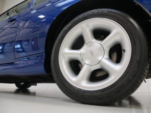 Genuine Ford RS 8 X 16” five-spoke alloy wheels are shod in Nexen 225/45 ZR16 tyres with masses of tread remaining. Tiny markings to three alloys are just visible. Electrically-controlled ABS anti-lock system with two microprocessors and ventilated front and rear discs offer immense stopping power.