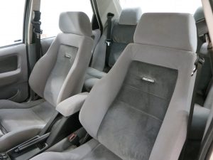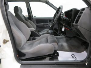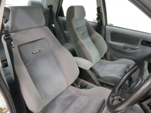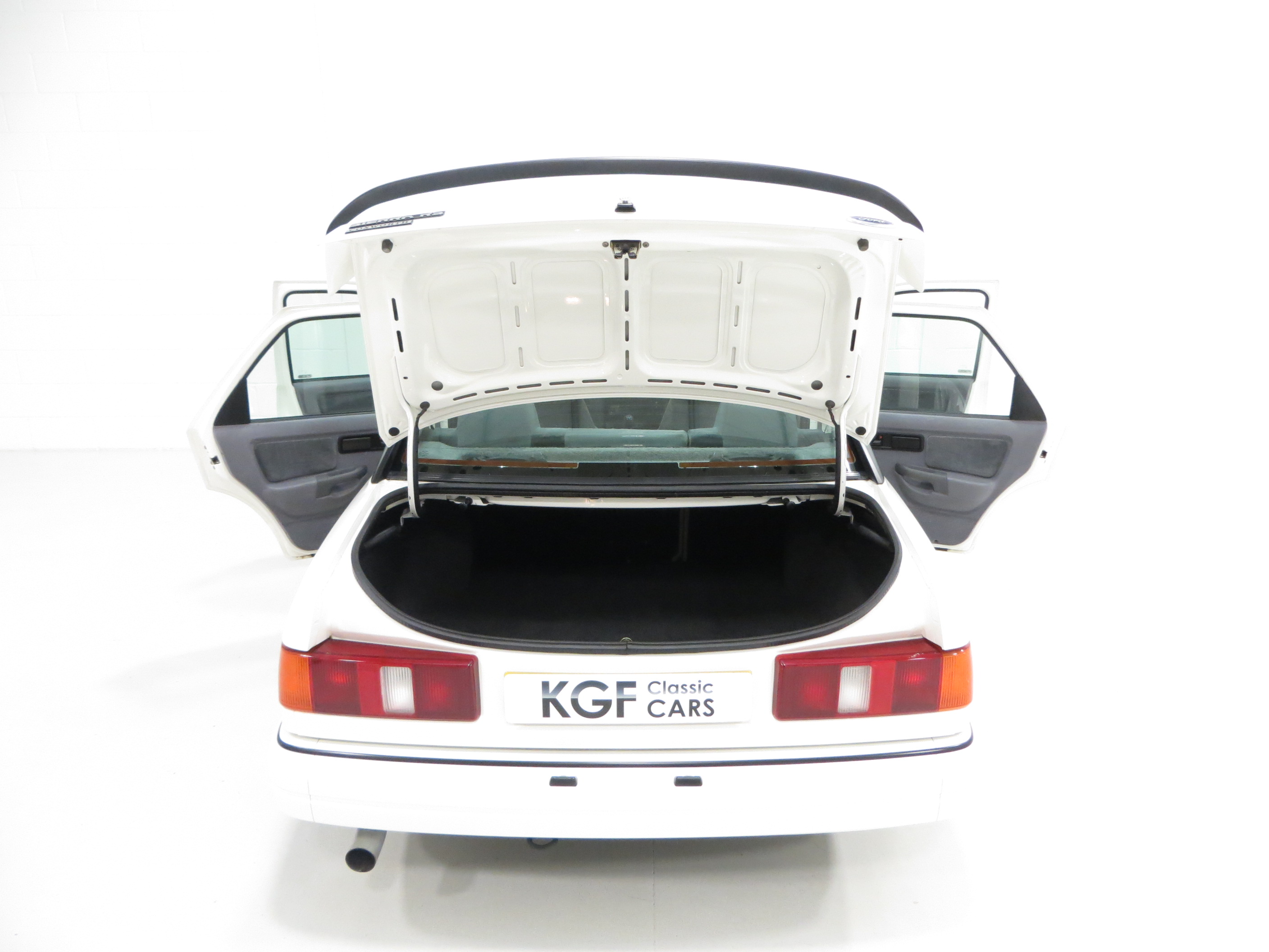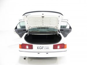 The beautiful exterior of this RS Sapphire Cosworth is finished in original Ford Diamond White (code B3). The paintwork has an impeccable pure gloss shine and boasts a remarkably clean finish. There is no rust or corrosion whatsoever and all panels are straight and damage free. All exterior trim sections, manufacturer correct badges and decals remain in excellent order, and the homofocal headlamps are the original Carello fitment. A tiny hairline crack to both the offside rear and nearside front indicator lens is barely noticeable. A truly exceptional example of Ford’s original ‘Executive Express’.