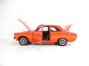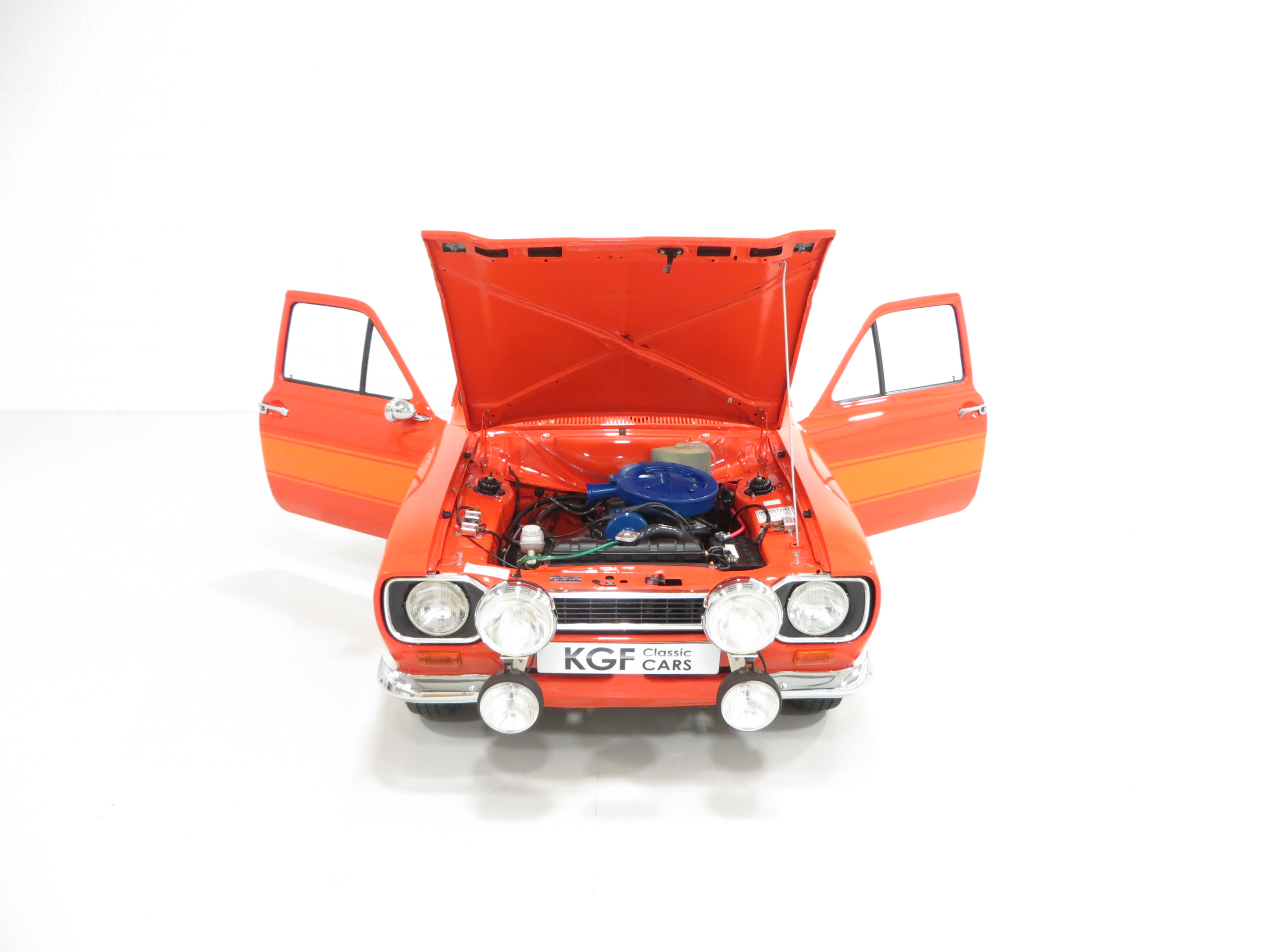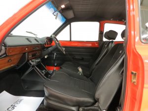 Finished in classic vibrant RS Sebring Red, (Code N) this genuine RS2000 is truly outstanding with an incredible polished glossy finish throughout. Amazing detailing throughout extending to the engine bay and underside will please the most critical of owners and onlookers. Excellent panel gaps with easy closing doors affirm just how straight this example is. AVO workmanship is laid bare for all to see with all correct body shell anomalies from a standard Escort visible upon inspection. Period functioning quad Cibie spot lamps are fitted and the headlamps remain the original Cibie items. The chrome, rubbers, and badges are in immaculate order with the distinctive wide decals adding the perfect RS look as delivered by the Ford RS Dealer in 1974. A very special classic Ford and an all time hero.