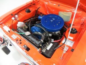 A wonderfully clean engine bay will please those enjoying the show scene with correct metal identification plates still attached to the slam panel. The original blue pan air filter remains fitted but the extension tube is missing. The 2.0 Ford ‘Pinto’ unit offers ample performance thanks to a downdraught compound twin-choke Weber carburettor and a free-flow exhaust manifold, so 100bhp and 0-60mph in 9.0 seconds with a top speed of 108mph is possible. The single selector rail shift four speed synchromesh gearbox offers snappy gear changes and has recently been replaced but is a little noisy in the first three ratios when cold.