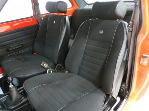 Largely true to a standard Ford RS2000 interior with incredible attention to detail. The brushed nylon RS sports seats with optional headrests match a very clean unworn loop pile carpet throughout and unmarked door cards. The rare Kienzle clock housed within the optional RS centre console is functioning and joins the varnished wood dealer fit trim which is in fair order. All the other sports instrumentation providing at a glance concise information and the soft dash top is perfectly replaced. A quality remote central locking and alarm system has been installed in place of the conventional door locks. The boot area continues the showroom experience with detailed presentation and an impossible to source genuine boot mat. One for the RS connoisseur wanting to enjoy this motoring legend.