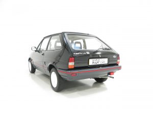 This incredible rare surviving and almost forgotten 1.4S model was second only to the XR2 in the sporting stakes, however far fewer of this model now remain. The paintwork finished in optional Ford Black (code A7) has a glossy mirror shine with a uniform polished finish, and only slight imperfections can be seen upon close inspection. Structurally superb, the underside and panels are damage free and there is no sign of the all too common sub-standard repairs. The standard trim sections, bumpers and decals remain correct and in immaculate order. A very special sporting classic Fiesta preserved just as Ford intended.