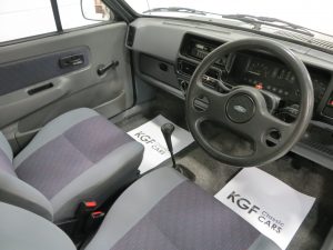 Sporty and unique pearl white full wheel covers are standard specification on the 1.4S and all four are in pristine undamaged condition. Matching Michelin 165/65 R13 have masses of tread remaining and the spare wheel is correctly housed below the boot floor where factory stickers remain displayed. The dual line servo assisted brakes with front discs and self-adjusting 7.0” rear drums offer ample stopping power.