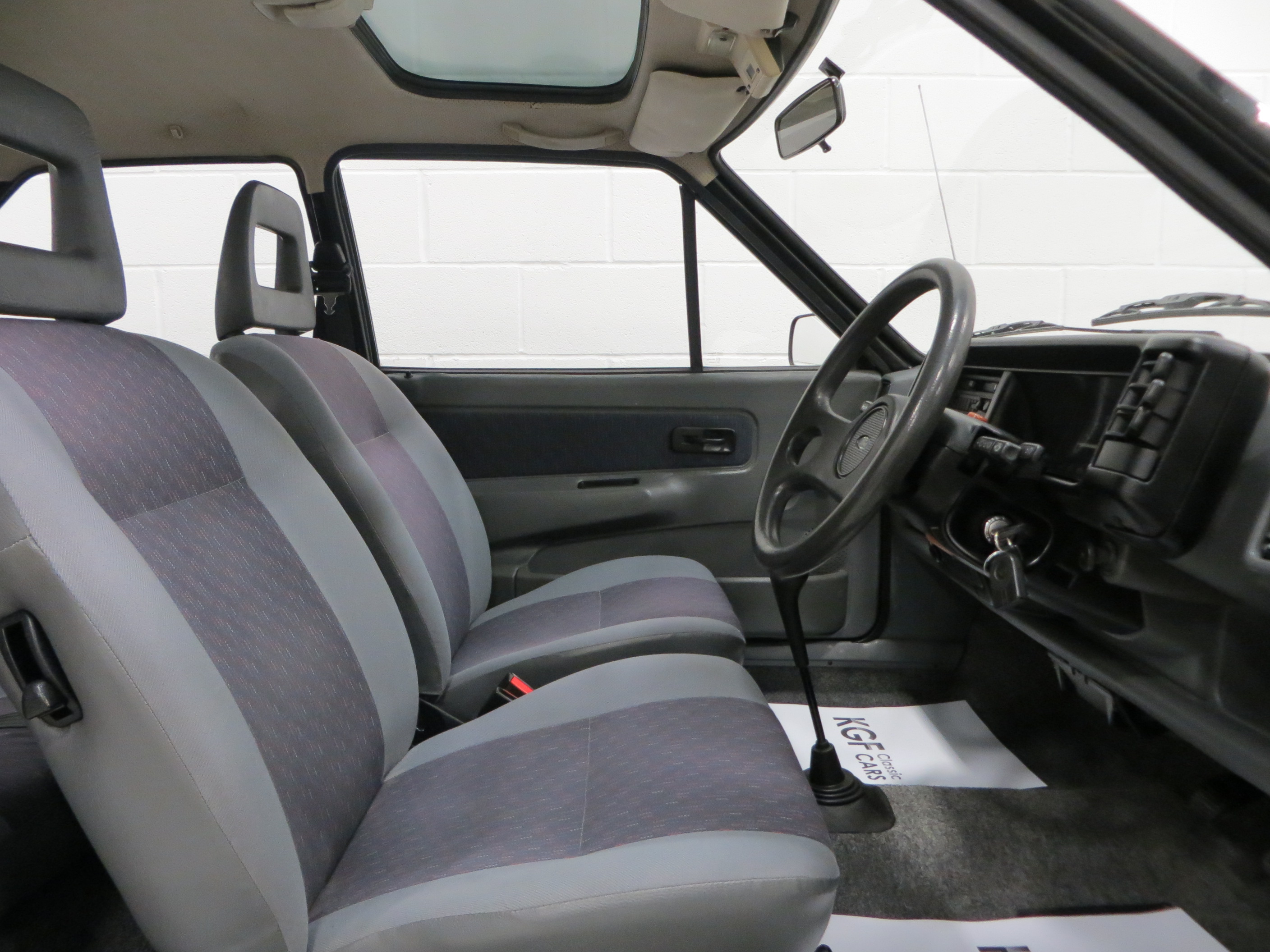 Bumpers and wide bodyside mouldings with red inserts, over-riders, two-tone paint scheme, halogen headlamps, long range driving lamps, digital header mounted clock, anti-burst door locks, storage compartment under rear-floor, two speed plus intermittent wipe, tailgate wash/wipe, heated rear window, tachometer, trip recorder, sports type steering wheel, cigar lighter, Self-Seek ESRT 32 PS stereo cassette, joystick speaker balance control, illuminated interior controls. Factory Options; Black paint, tilt-or-remove screened glass sunroof.
