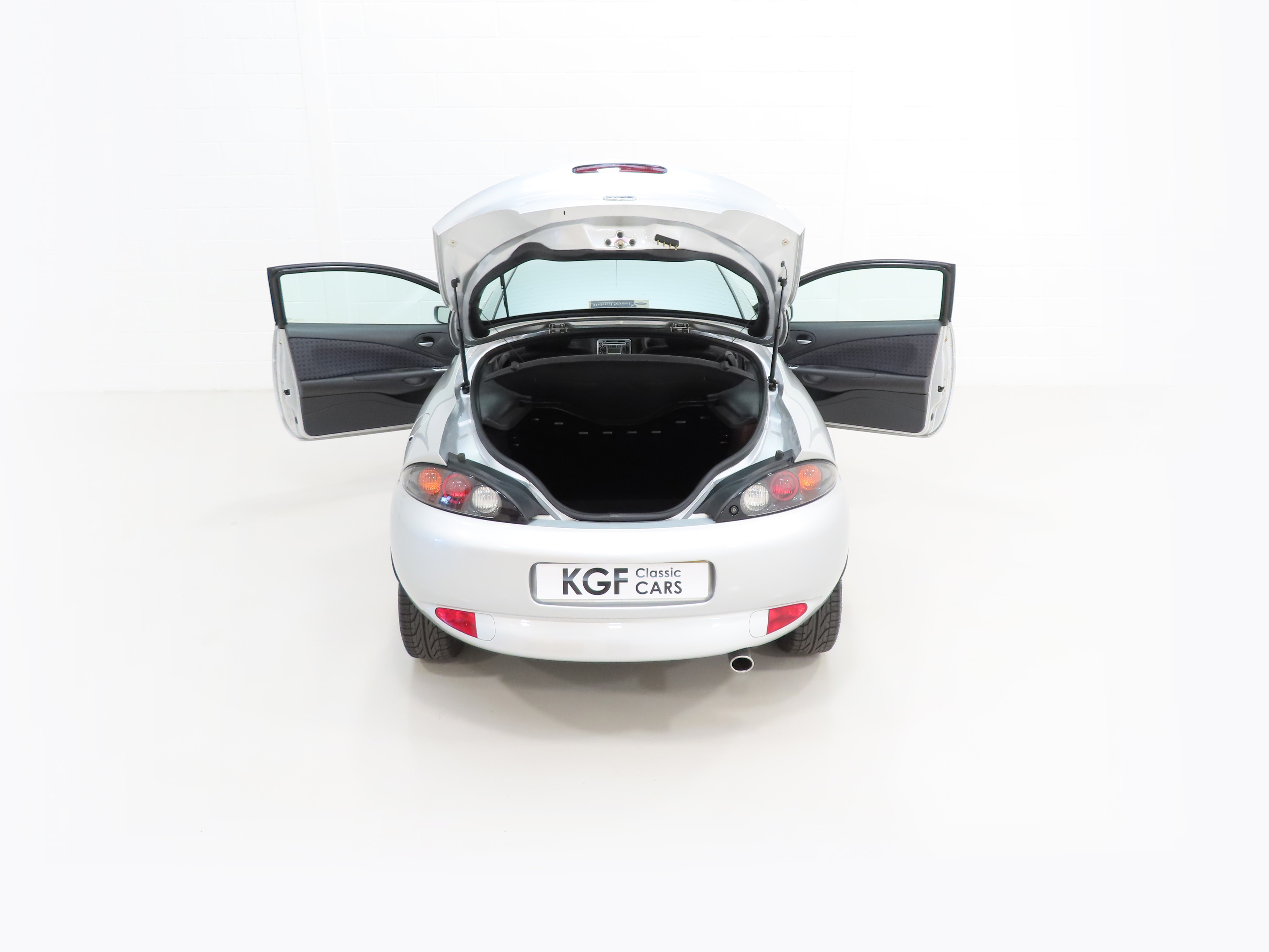 This late 2002 model is finished in the factory optional launch colour of Moondust Silver, (Code 61), the same colour as the car used in the iconic and award-winning Steve McQueen Bullitt recreation TV advert. The stunning Ford ‘New Edge’ lines of the Puma seem to defy their age and the factory original paintwork boasts a stunning bright polished shine and uniform finish with a condition commensurate with the exceptionally low 7,799 miles. The often-troublesome rear arches and sills are as new and the underside is very clean and still displays factory labels and PDI dabs, long lost on most examples. A miniscule scratch to the nearside door mirror and one to the bumper are virtually indetectable and the only noteworthy imperfections. The original supplying dealer number plates, rear screen sticker and tax disc holder remain fitted. All trim sections and badges are excellent and the styled lighting units are crystal clear. Virtually impossible to find in such an incredible preserved condition.