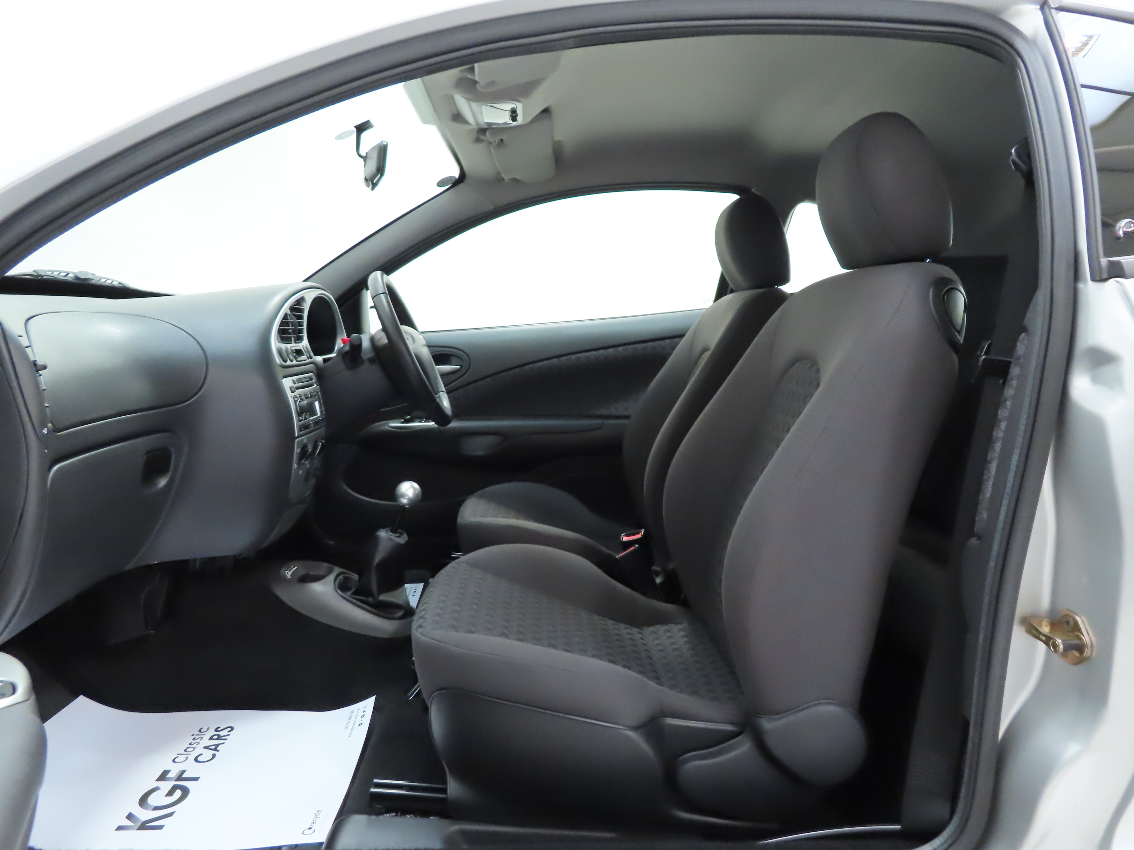 The sporty feel of the Ford Puma certainly continues once inside the snug cockpit which somehow manages to offer space and comfort for front seat occupants whilst not losing the sports car sensation. The original Chrome/Twill trim, (Code OC), is perfect in every respect with the seats having no markings or signs of wear. The super-low mileage credentials are clear to see in the preserved carpets protected from new with tailored Puma carpet mats and the steering wheel leather is as new. The controls and switchgear are factory fresh and all functions operate perfectly, including the optional air conditioning and Ford 6006E RDS stereo system with 6CD changer. The immaculate luggage area displays factory marker scribes to the boot floor and both the parcel shelf and carpet are spotless. An interior condition commensurate with a 2002 showroom car complete with the new Ford smell!
