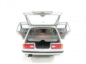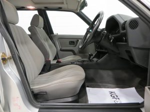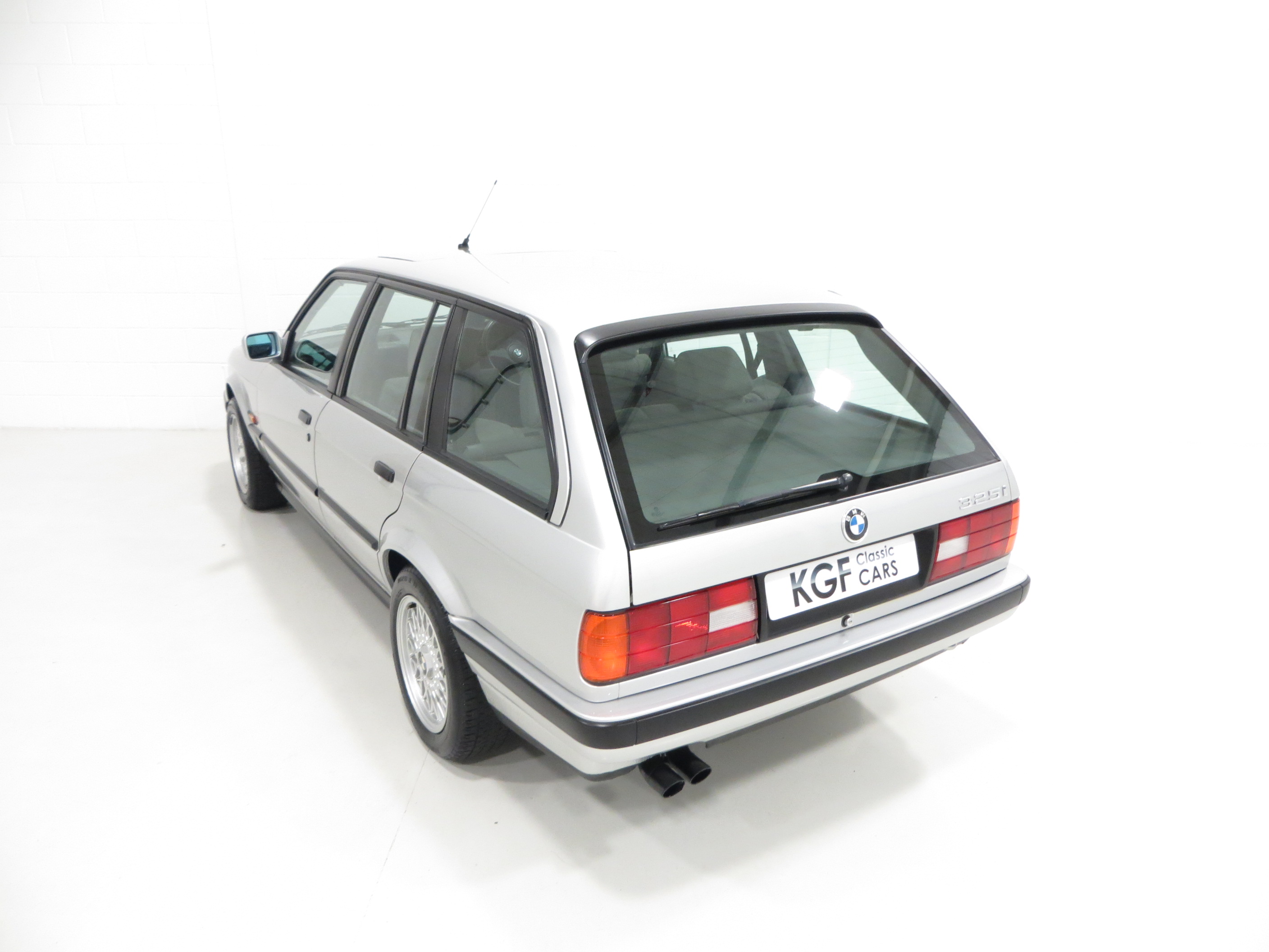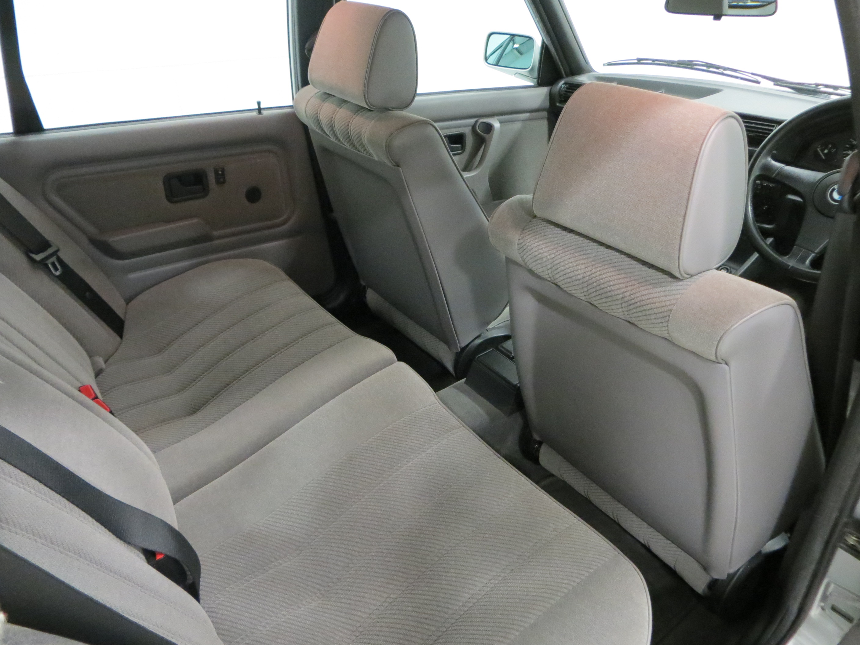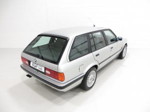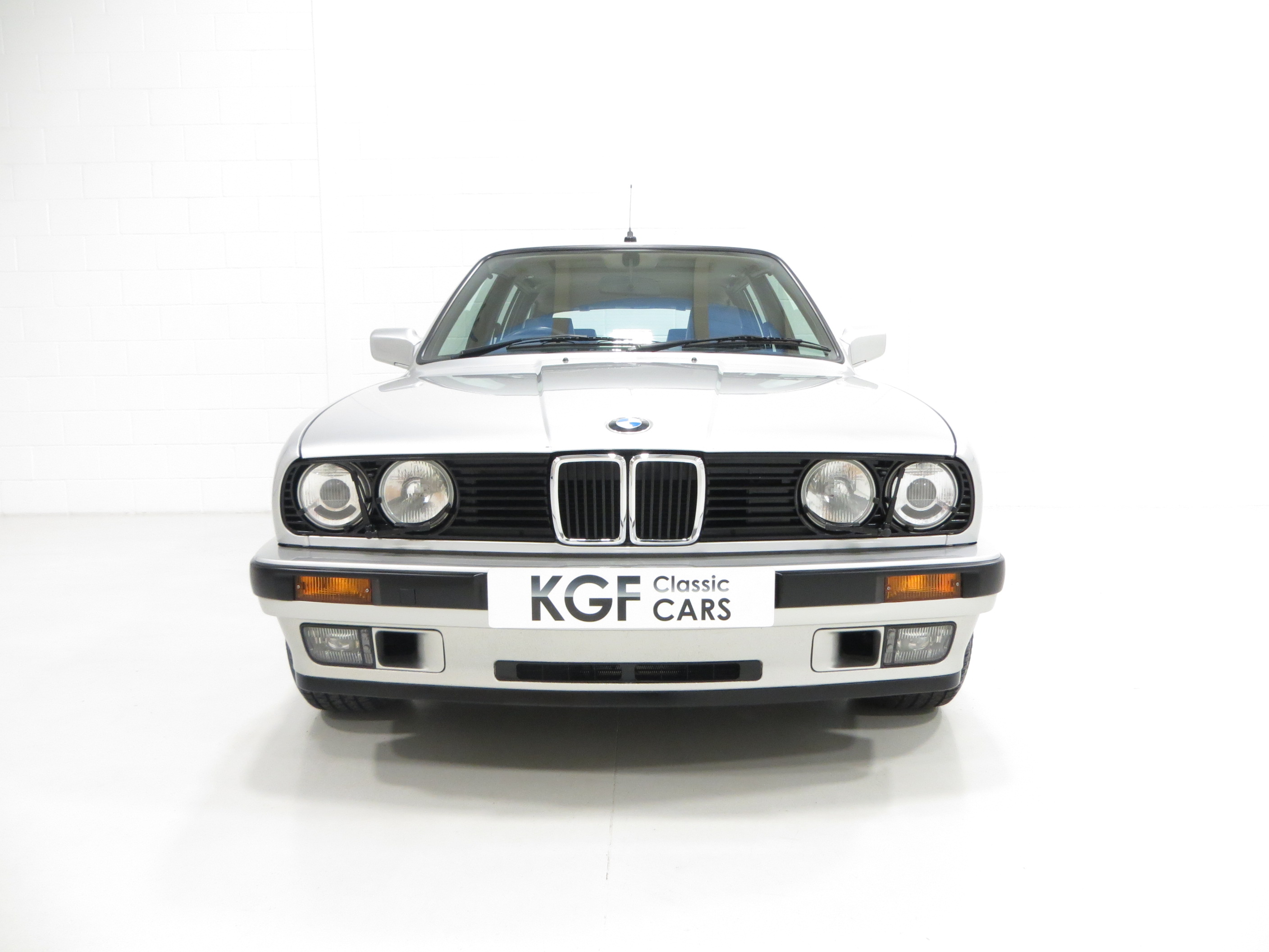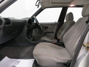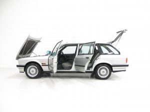 The sporty dynamic styling lines of a BMW E30 Touring emanates a unique flair and especially so when finished in Sterling Silver, (Code 244). The paint boosts a brilliant deep shine and glossy appearance from a pampered low mileage indoor existence. Show goers and onlookers will gaze in amazement on how clean this example is. All the trim, bumper rubbers and lenses are immaculate. A handful of tiny marks to the bonnet can be seen under close scrutiny and the nearside bumper indicator lens has a hairline fracture. All glass is original fitment and even the running-in sticker remains on the front screen. Manufacturer museum quality and quite possibly the best BMW E30 325i Touring.
