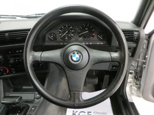 The cockpit of this 3 Series is typical BMW design arched in a concave arrangement around the driver offering a whole range of working exemplary functions. The body contour seats are finished in Anthracite Cloth, (Code 269), and along with the symmetrically contoured rear seats, are unmarked and practically as new in appearance and feel. Carpeting has been protected by four genuine BMW velour mats and the versatile boot area is pristine. An unused tool roll, warning triangle and optional first aid kit still wrapped in the clear cellophane wrapper is correctly housed. Door shuts and bottoms are spotlessly clean and all factory stickers remain in place. The term ‘time-warp’ on this rare occasion is justified.