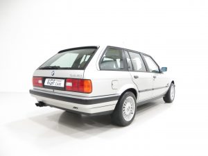 Manufactured in December 1989 and registered on the 16th January 1990 by BMW Main Agents, Hungerford Garages Ltd this car has covered a genuine 9,896 miles from new. What follows is an explanation from the actual owner: ‘I bought the BMW 325i Touring in January 1990 for my father to use. It was bought by my company so it was registered in my name. He was the Company Secretary. He used it for two years and then we became aware that he was no longer himself. In December 1955, he had been the unrestrained front seat passenger in a car accident. My mother realised at the time that the man who came back from the hospital several weeks later was not the same man who had left for work that morning. A brain scan in 1995 revealed serious and long-standing brain damage so we hid his car keys. The car remained unused from that moment. Only now, more than 10 years after his death, do I feel I can simply let the car go.’ The vehicle is supplied with all keys and supplying dealer key fobs, handbooks and sales literature. A factory standard showpiece worthy of the BMW Museum in Munich.