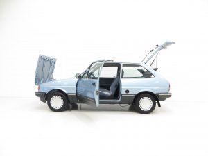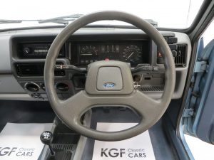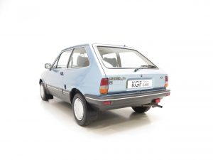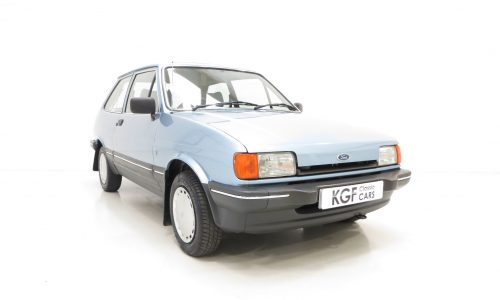 This fantastic little Ford Fiesta Ghia has been beautifully preserved and cherished within the same family from brand new! The paintwork finished in Ford Glacier Blue (code 53) has a fantastic bright shine and polished uniform finish. Incredibly only minor stone chips to the front can be detected on an otherwise remarkable paint finish and the chrome insert around the windscreen is slightly tarnished. All original panels are straight, free from corrosion and display linear gaps including the original factory date stamp front wings. The unmolested appeal of this special vehicle is accentuated by standard trim sections, bumpers and wide body-side mouldings, correct and in immaculate order. All glass is number plate etched and the original Kiney headlamps remain fitted. A truly impeccable example of Ford’s luxury supermini.