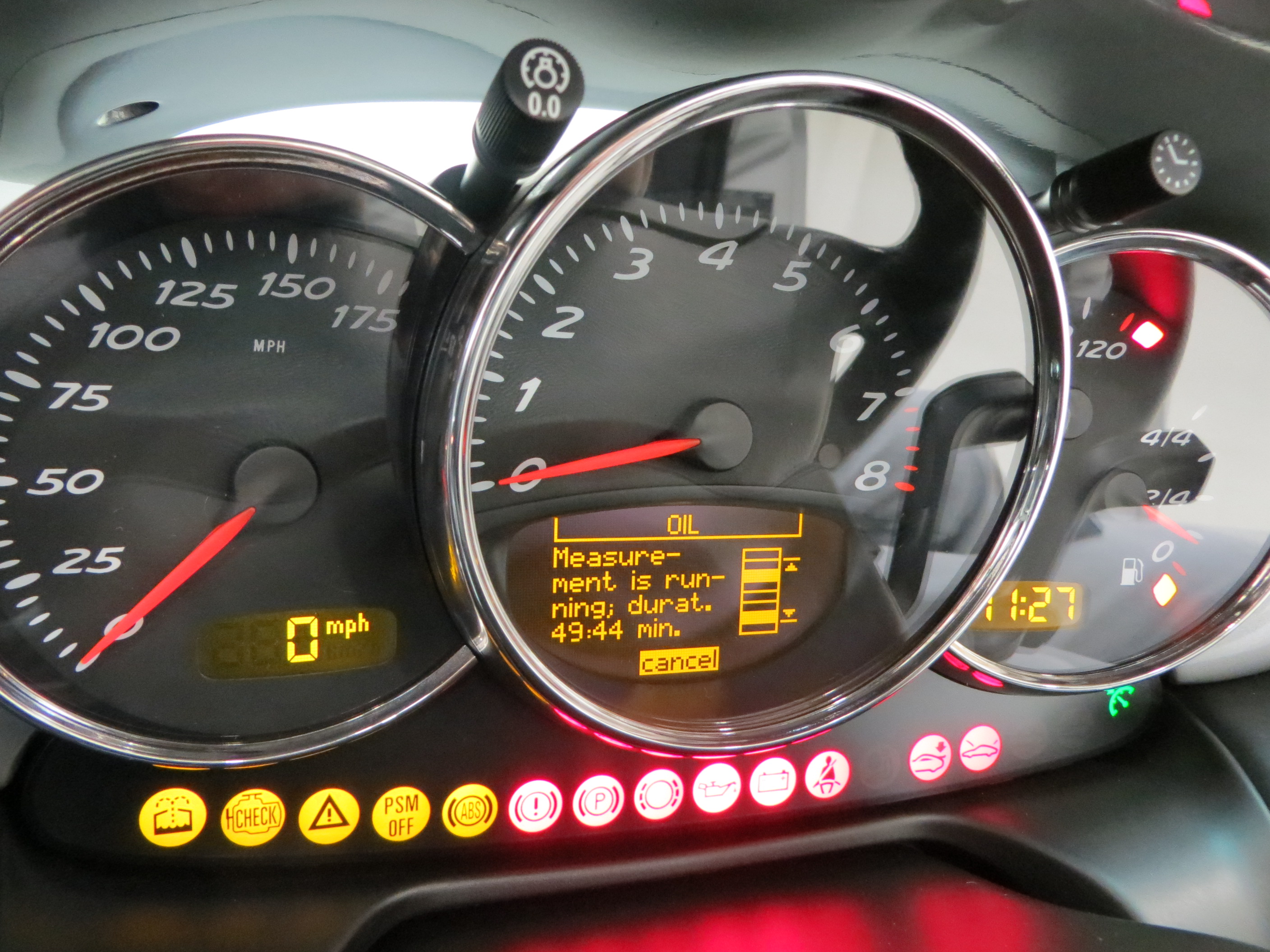 Exemplary craftsmanship and race inspired hallmarks in the form of the sculptured sports seats shrouded in Dark Grey rich natural leather (code U2), the upholstery is exceptional as to be expected from such minimal usage. This well-appointed cabin space was specified with every conceivable factory option with the exclusion only of the Tiptronic transmission, the original owner preferring to opt for the manual set up. The original carpeting has been perfectly protected by dealer fitted over mats from new. The leather surface dashboard and incorporated switchgear are in flawless condition, with all functions operating as intended. The supplying dealer tax disc holder remains affixed to the front screen. Exceptionally good in every respect.