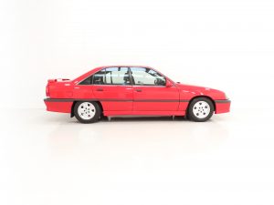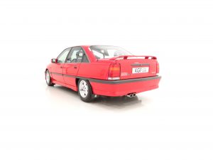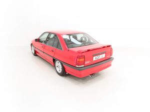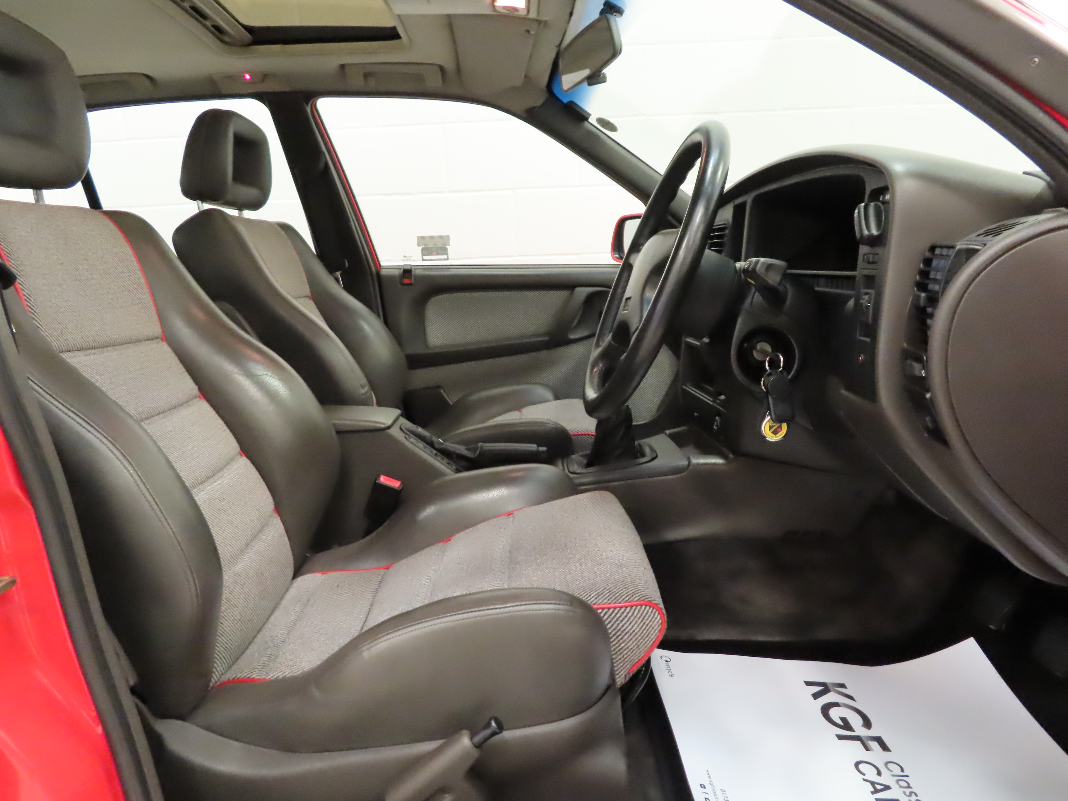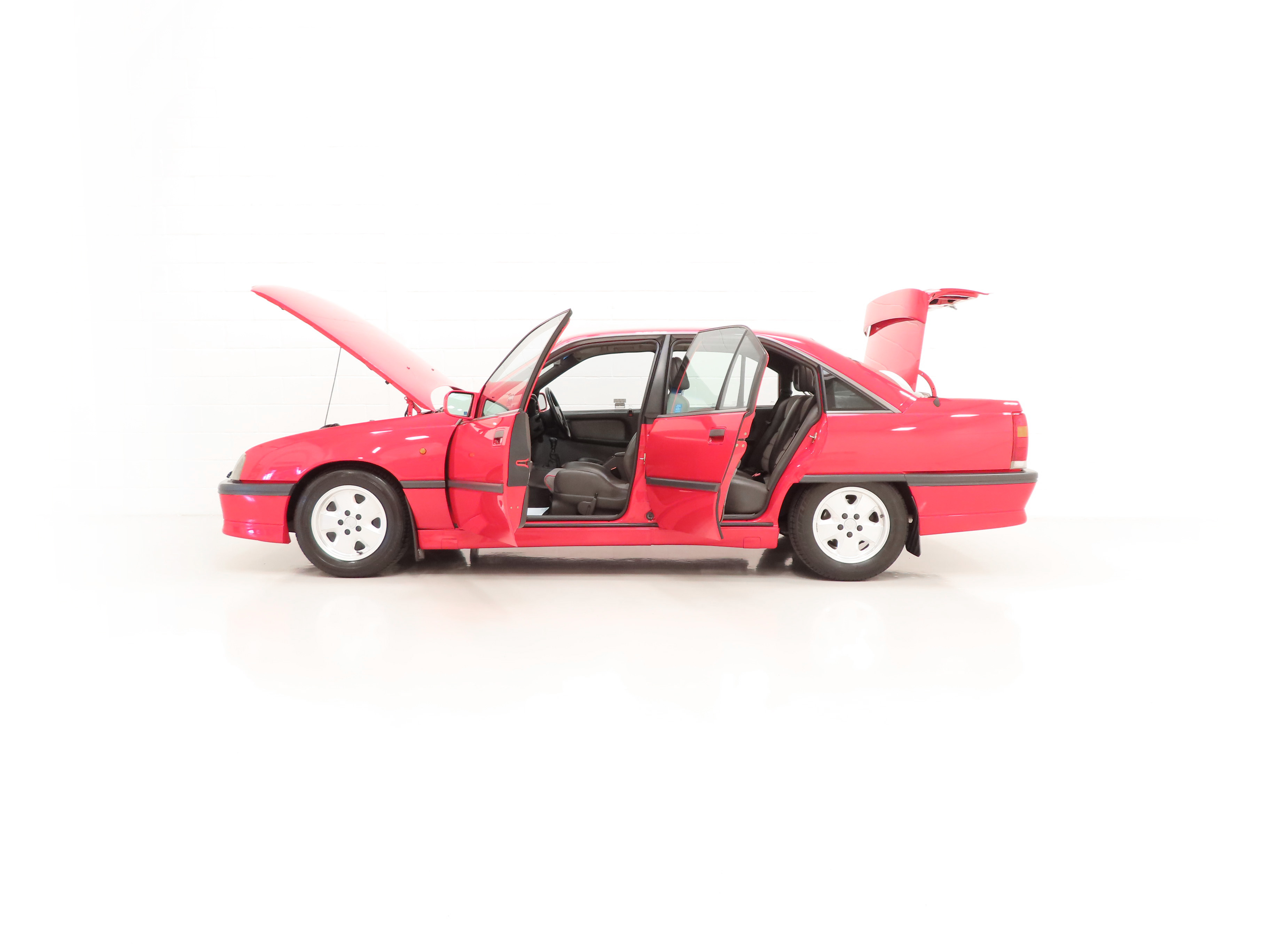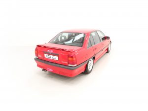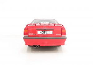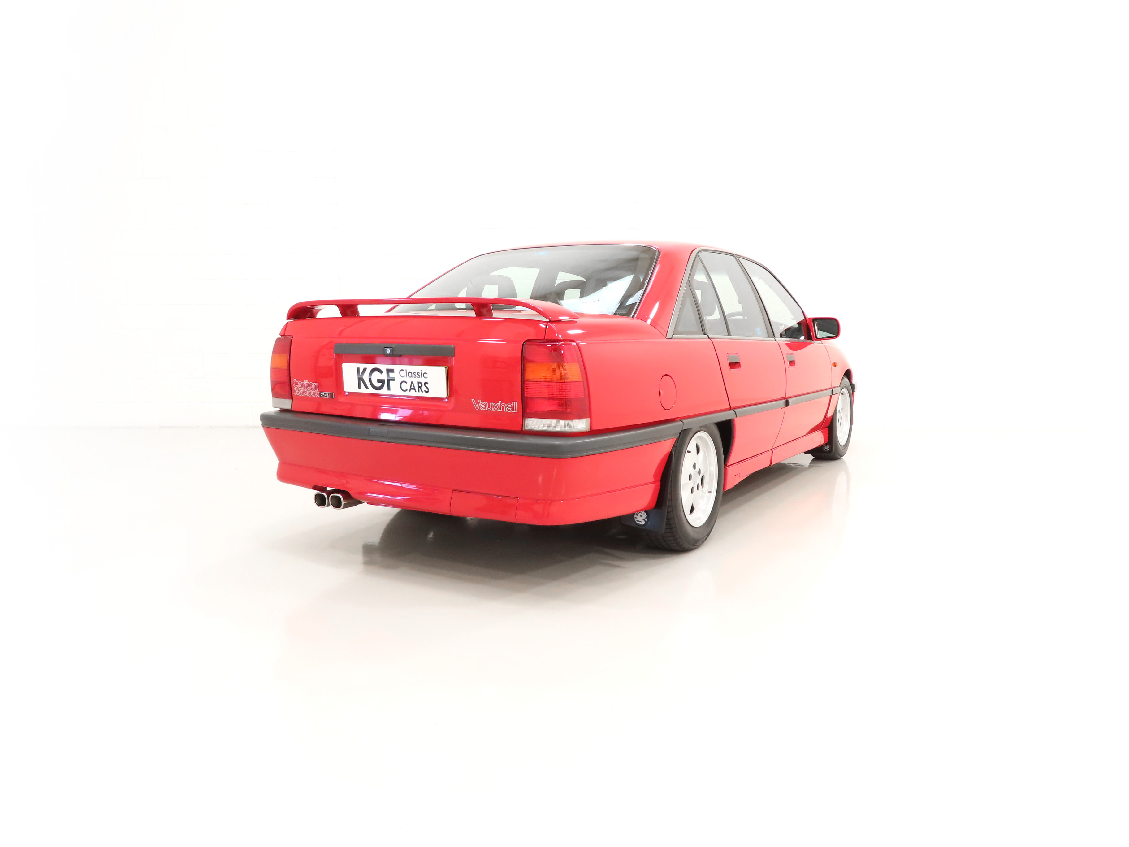 This imposing and rare Vauxhall Carlton is the most desirable 24v model with manual transmission and furthermore has enjoyed single fastidious ownership since it was just two years old. Finished in original solid Carmine Red, (Code E 547), the paintwork gleams thanks to its pampered existence which even extends to garaged storage within a dehumidifying air-chamber! A deep polished shine to the pin-straight factory panels is difficult to fault and the common troublesome areas such as the rear inner wheel arches are perfect. Some carefully treated frontal stone chips and a touched in scratch to the nearside front wing is visible and the underside is carefully protected without the unnecessary application of crude heavy underseal. The unique body trim pieces and aerofoils are in superb condition and free from distortion. Originality seekers will be delighted to see all glass panes security etched, including the graduated tint windscreen, still with factory labels as well as original light clusters and Cibie headlamps. A stunningly preserved and very rare Vauxhall.