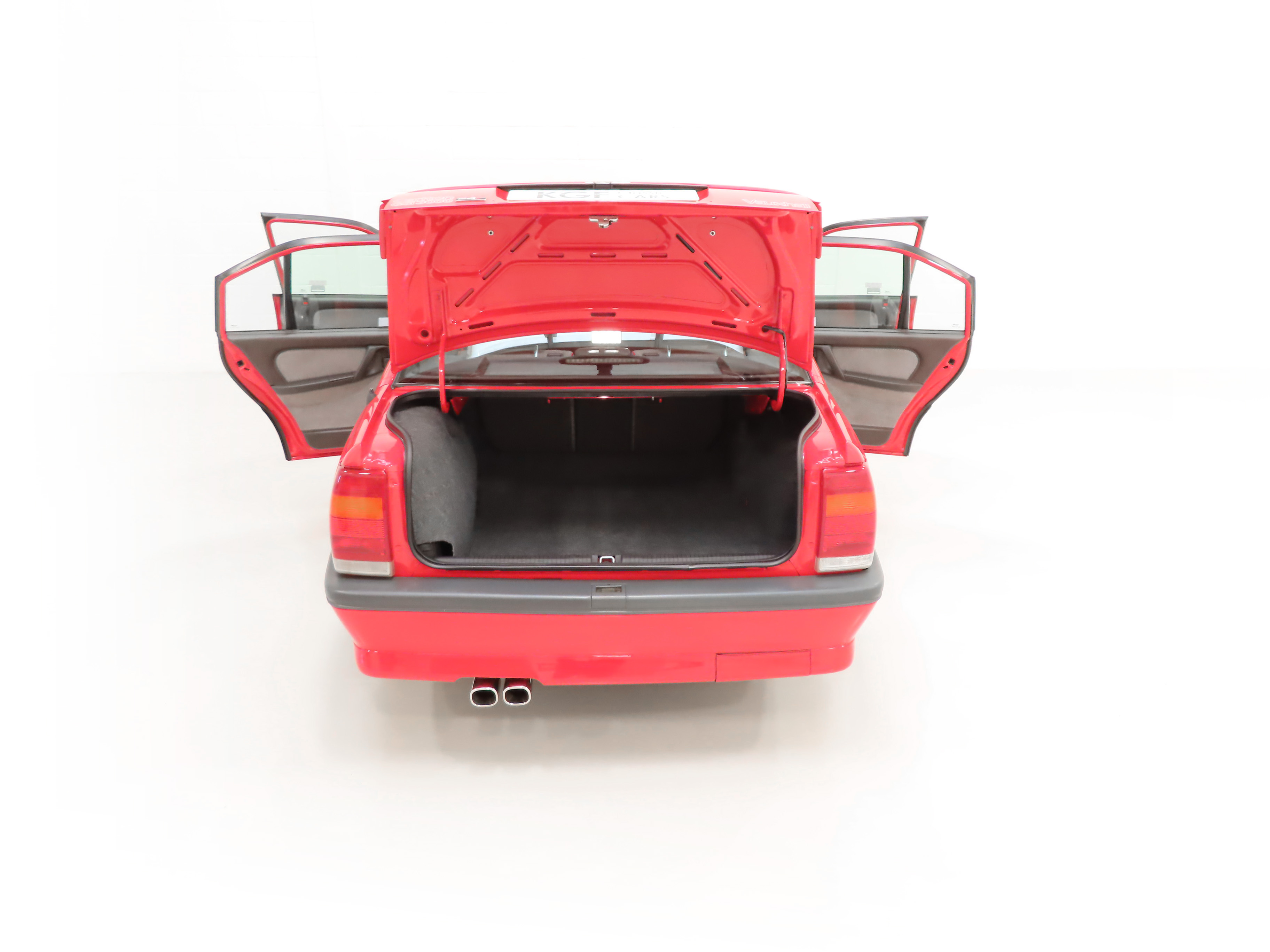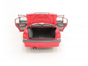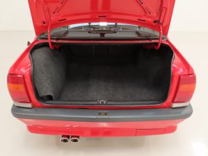A truly spectacular interior with the Athena velour/leather sports seats finished in Grey, (Code 595), with contrasting red piping. The seats and matching trimmed door cards are in amazing condition with firm bolsters retaining correct shape. Only very light hairline creases to the driver’s seat outer bolster can be seen and the red piping remains very bright thanks to a careful entry and exit routine by the long-term owner. The headlining and carpets are in immaculate condition and the deliciously retro fascia is simply perfect! A lumber adjustment knob to the passenger seat is missing. All controls and functions operate seamlessly including the iconic LCD digital instruments with healthy readings. The LCD multi-function computer, cruise control and original Philips Vauxhall stereo cassette are present and fully working. The leather steering wheel proudly wears the Carlton GSi 3000 emblem and the leather to the gear knob is slightly worn. The huge immaculate luggage area contains the original jack and toolkit and even the boot floor has factory scribe markings! A delightfully retro performance executive interior.