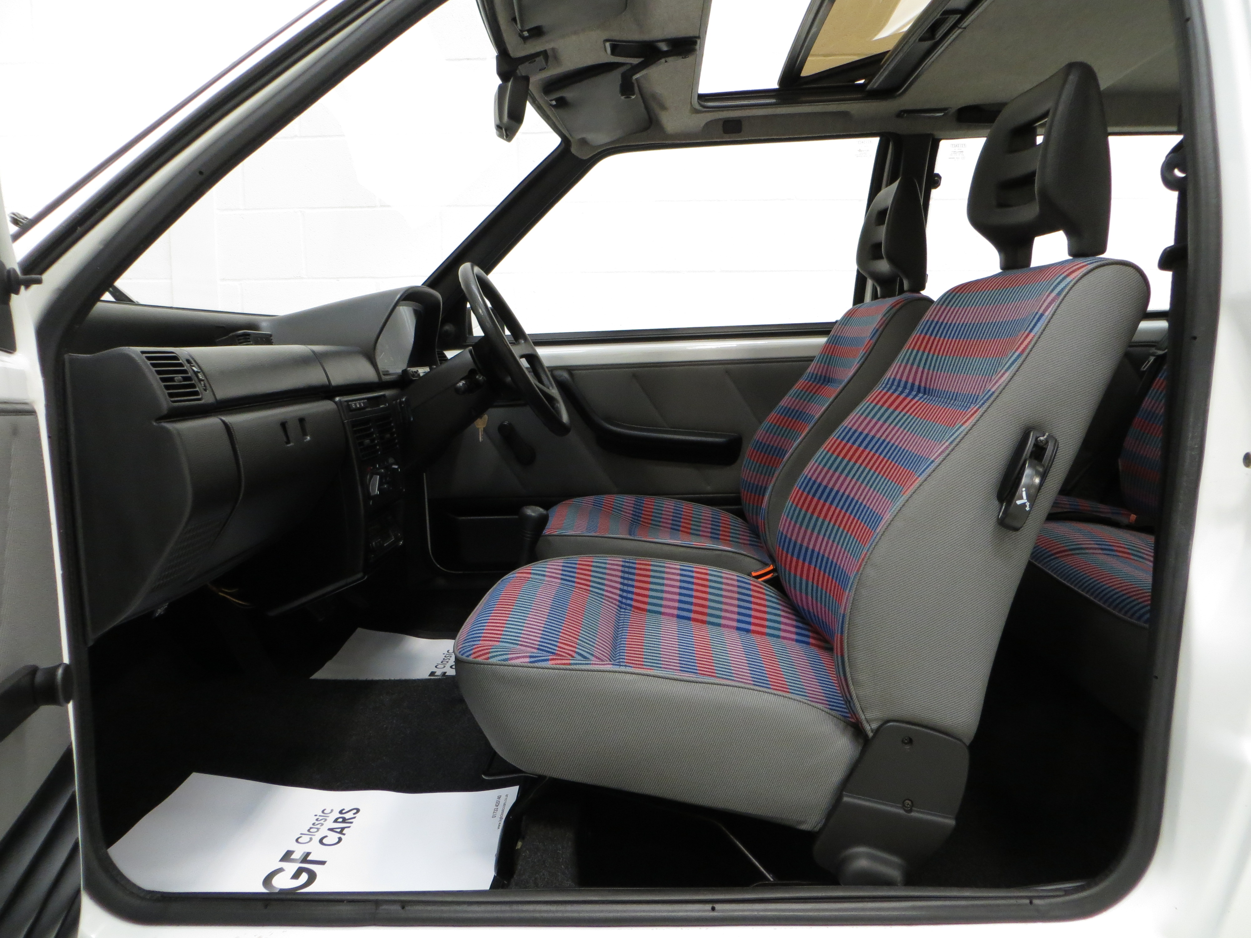 PVC underbody protection, plastic front wheel arch liners, remote adjust twin door mirrors, rear fog/reversing lights, sunroof, heated rear window, opening rear side windows, water temperature gauge, reclining front seats, front head restraints, folding rear seat, height adjustable front seat belts, inertia reel front and rear seat belts, driver and passenger door bins, glovebox, rear parcel shelf, protective boot matting.