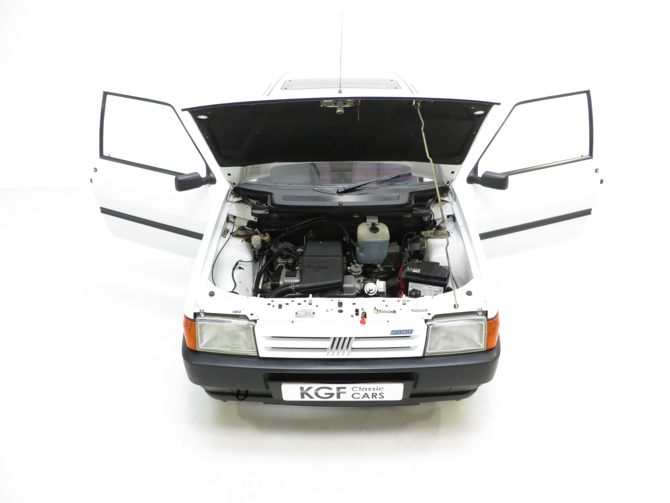 This ultra-chic classic Fiat Uno 45 is the limited-edition ‘Spark’ model, featuring factory fitted sunroof, full wheel covers and exclusive check interior as standard over the base 45. This superb example finished in Fiat Bianco, (Code 210), has a bright uniform finish to the paintwork. The underside is in amazing order and all panels are completely free from corrosion, including all common Uno areas such as doors, boot floor and scuttle. There is a cosmetic paintwork repair evident to the offside front wing, and two small dings to the bonnet. All trim sections are fully intact, and the supplying Fiat Dealer number plates remain fitted. Special edition Italian cars of the 1990’s held a certain undeniable charm, and this Uno Designed by Giorgetto Giugiaro’s ItalDesign company is no exception.