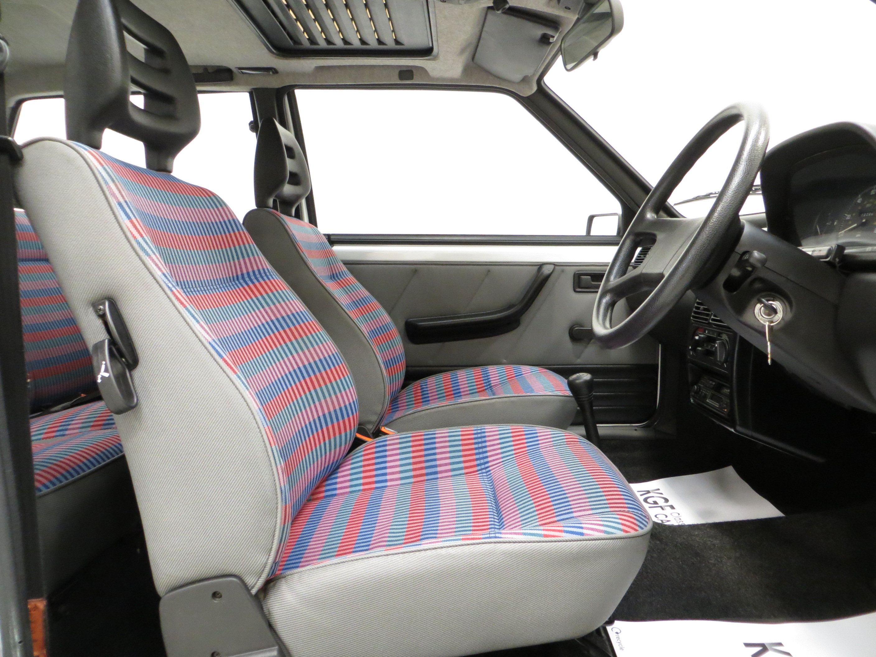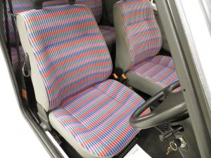 The bright, vivacious interior of this Uno 45 Spark is exclusive to this limited-edition example and remains in pristine condition. The Fashionable Check seats are as new having been protected throughout by fitted seat covers, allowing the colours to remain bold and free from fading. The seats are surprisingly comfortable and remain firm and supportive, and the grey door cards matching the seat backs are perfect. The steering wheel and gear knob display prominent natural veins only found on such low mileage examples. All functions and controls operate exactly as intended including the original Pioneer Radio Cassette, a Sparkrite alarm sensor has been fitted. The parcel shelf remains straight and uncut and fully intact with hangers. A fun, simple interior, reminiscent of a simpler motoring era and in wonderful condition.