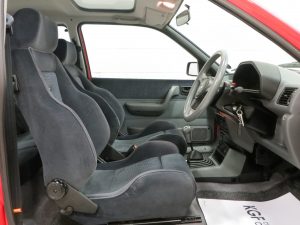 This rare example of Ford’s first RS Fiesta was supplied by Ford Main Dealers Tate Ford Manchester Ltd on the 25th April 1991 to a Mr J Tomlinson. A substantial history file contains Ford Main dealer service invoices and previous MOT certificates, which along with the original stamped service booklet, support the amazingly low 24,039 miles covered. A major service and cambelt change was carried out at Ford Main Agent Paynes of Hinckley in August 2015 at 23,868 miles with supporting invoice and service stamp. All six former keepers have been enthusiasts and include prominent club members such as the Dorset RSOC Chairman, Mr Green.
