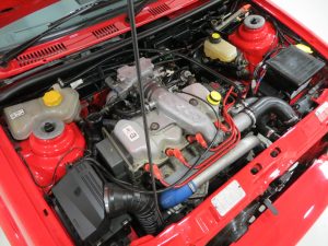 The 1.6 OHC fuel injected engine with Garrett AiResearch T2 turbo charger and intercooler produces 131bhp and 183Nm of torque. Figures quoted at 7.7 seconds to 60mph and a top speed of 127mph make this a true ‘hot hatch’. The engine bay is simply incredible with all the Ford labels, stickers and Ford stamps on the hoses. The often misplaced plastic battery cover remains fitted and the blue strut top factory markings are clearly visible. Even the dealership breakdown sticker remains attached to the bonnet underside! The 5-speed transmission works seamlessly with a progressive clutch action and short shift.